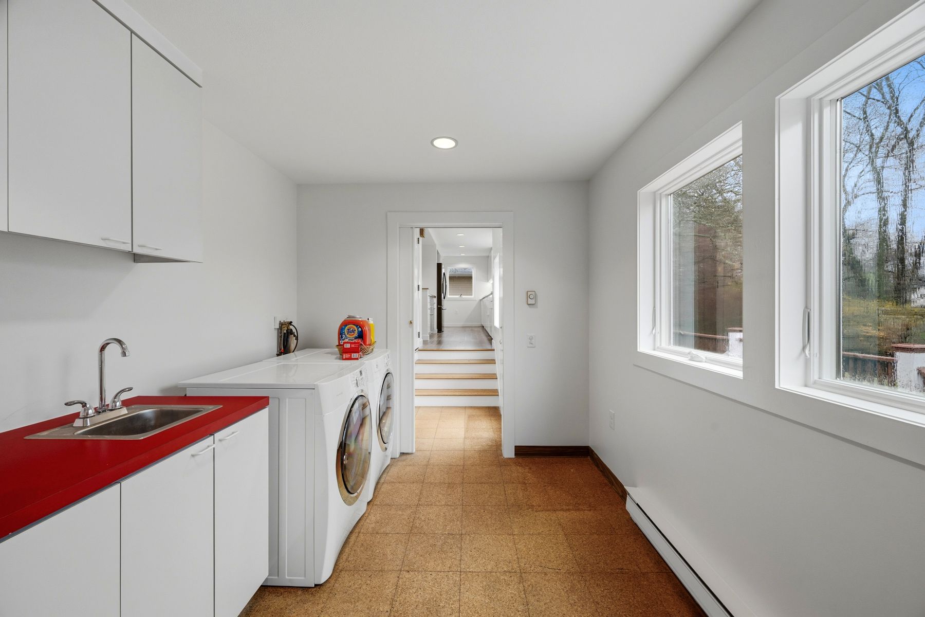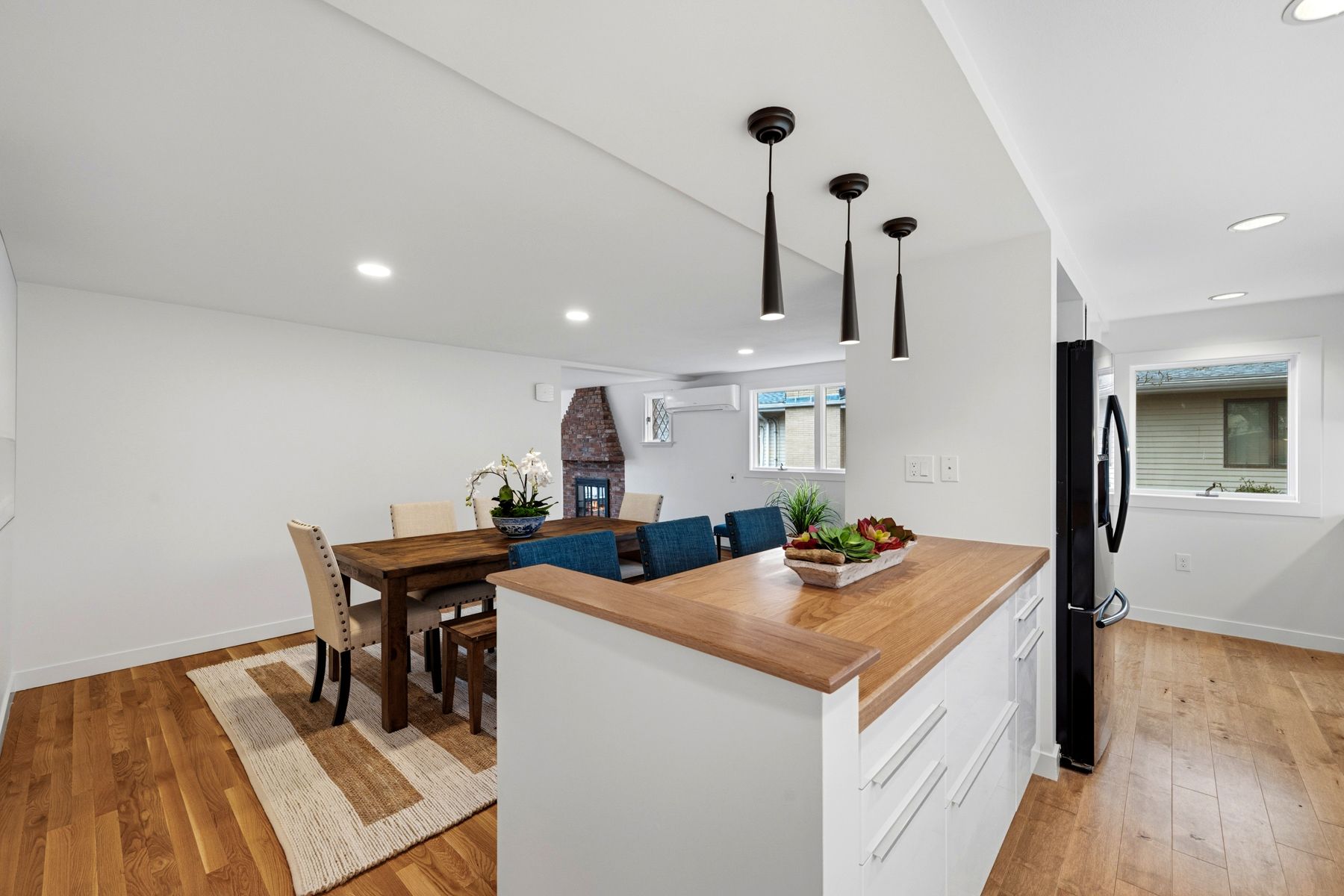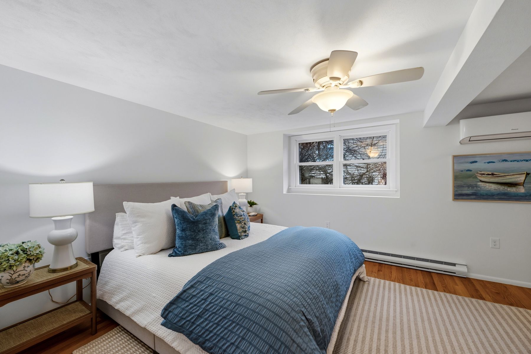 Beautifully maintained home in a quiet neighborhood moments from the water. Freshly painted throughout with newly refinished hardwood floors, this home features bright sunlit spaces and a clean white kitchen with Scandinavian-inspired simplicity, featuring a wall of windows overlooking a private fenced yard and open to the dining area. A versatile butler’s pantry with laundry adds functionality. The living room includes a brick fireplace, while a separate family room provides a second flexible space for gathering. Upstairs offers 3 bedrooms and a full bath. A fourth bedroom and full bath on the main level add a private option for guests or office use. The home is equipped with air conditioning via mini-split systems, which also function as efficient heat pumps, in addition to gas heating for year-round comfort. Outside features a fenced yard with mature perennials, magnolia tree, deck, and shed. Turn-key and move-in ready, near beaches, harbor, and West Shore Drive for easy commuting.