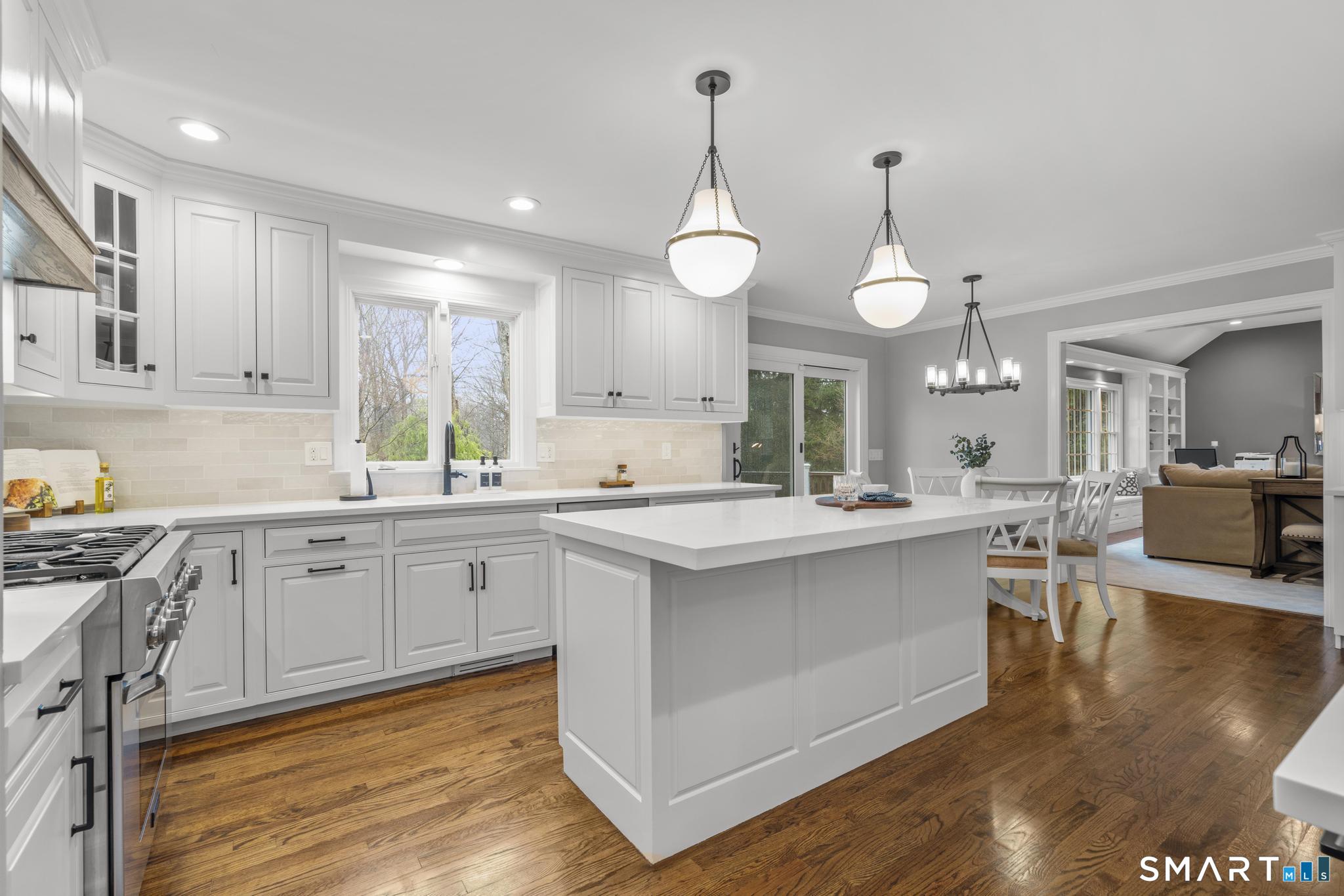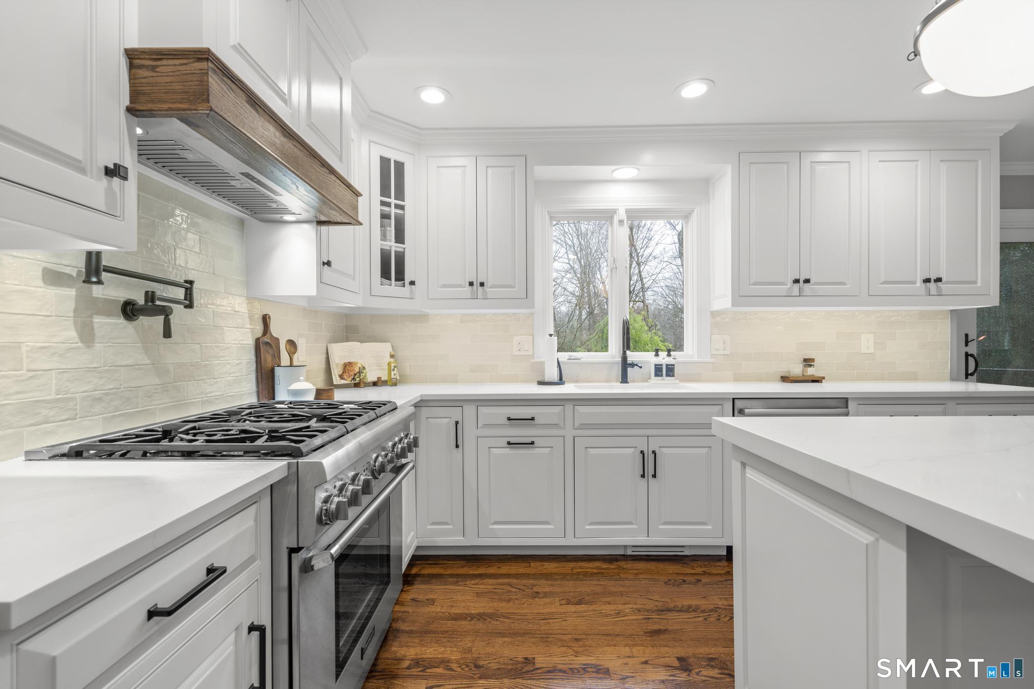 Beautifully situated within the coveted Silver Spring community on the former Firestone estate thoroughbred racetrack, this sophisticated Colonial offers modern luxury and prime location on a private road. Great curb appeal and lush landscaping welcome you to this updated, meticulous move-in ready home adorned with custom millwork, gleaming hardwood floors and functional flow. Dreamy NEW white chef's kitchen boasts quartz counters, Subzero, Thermador gas range and large center island & opens to the fabulous Family Rm accented w/ built-ins, vaulted ceiling and fireplace framed by a magazine-worthy mantle. Formal Dining Rm and Living Rm invite family and guests, while a private Study offers quiet work-from-home space. Easy entertaining on the spacious Trex deck overlooking the level backyard. Upstairs, retire to the Primary Ste with elegant marble bathroom, double sinks and two walk-in closets. Three light & bright BRs and spacious hall bath complete the upper floor. Ready to exercise or relax? Head to the fully finished LL with tons of space and amazing mudroom w/ walk-out access to level back yard for all sorts of recreation in this private neighborhood - perfect for walking, bicycling & enjoying nature. Whole house generator, irrigation and security systems provide additional comfort. Enjoy Wilton's top-rated schools, lively town center, Ambler Farm & Weir Farm Nat'l Park and the close-by downtown of Ridgefield's main street. Your dream home awaits at 106 Silver Spring Road!