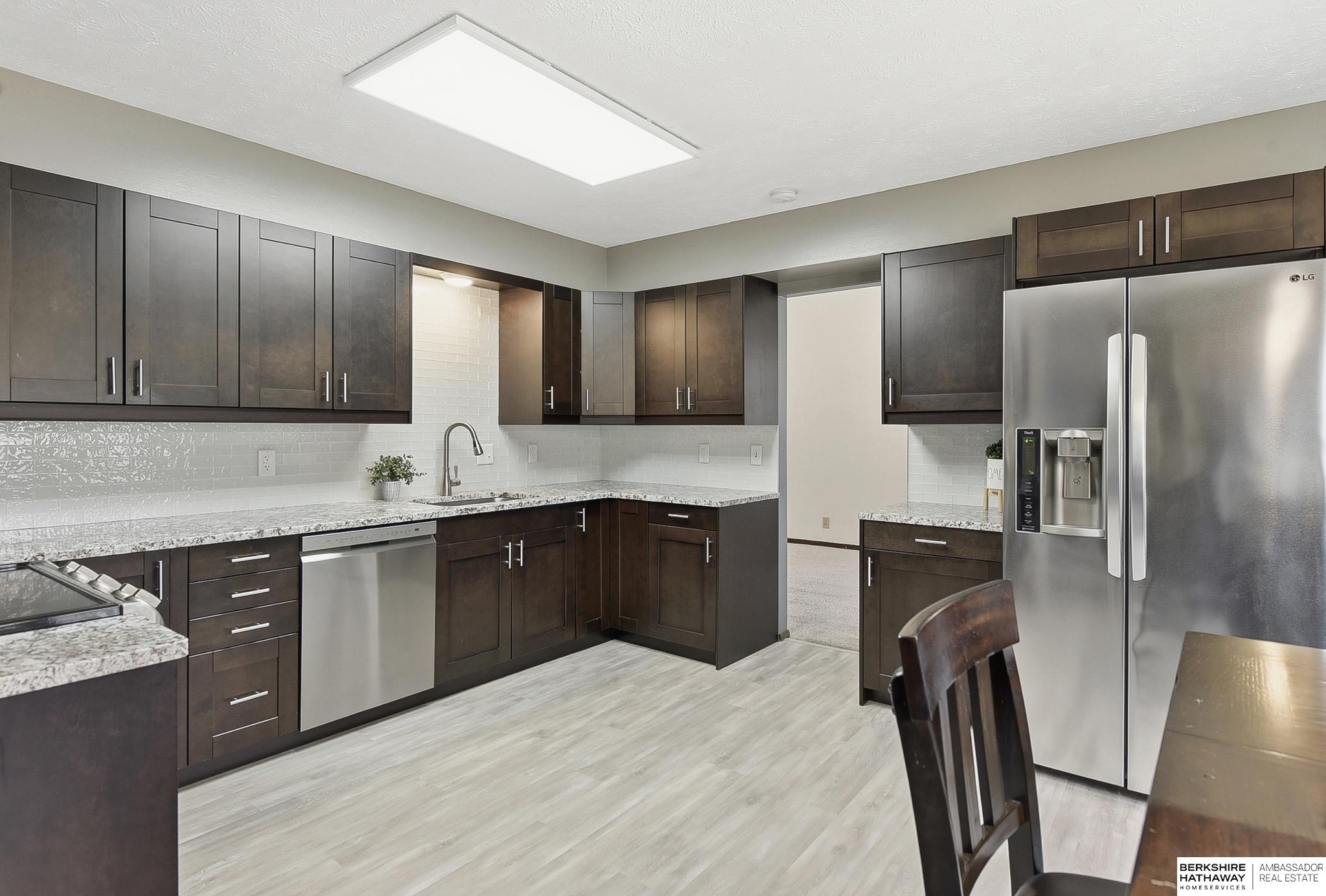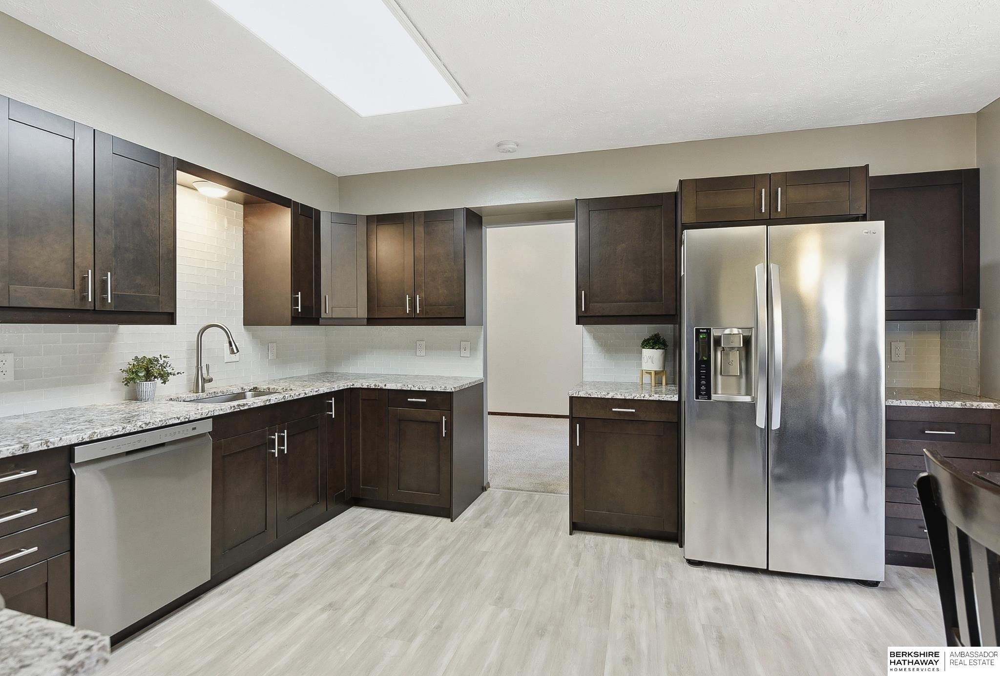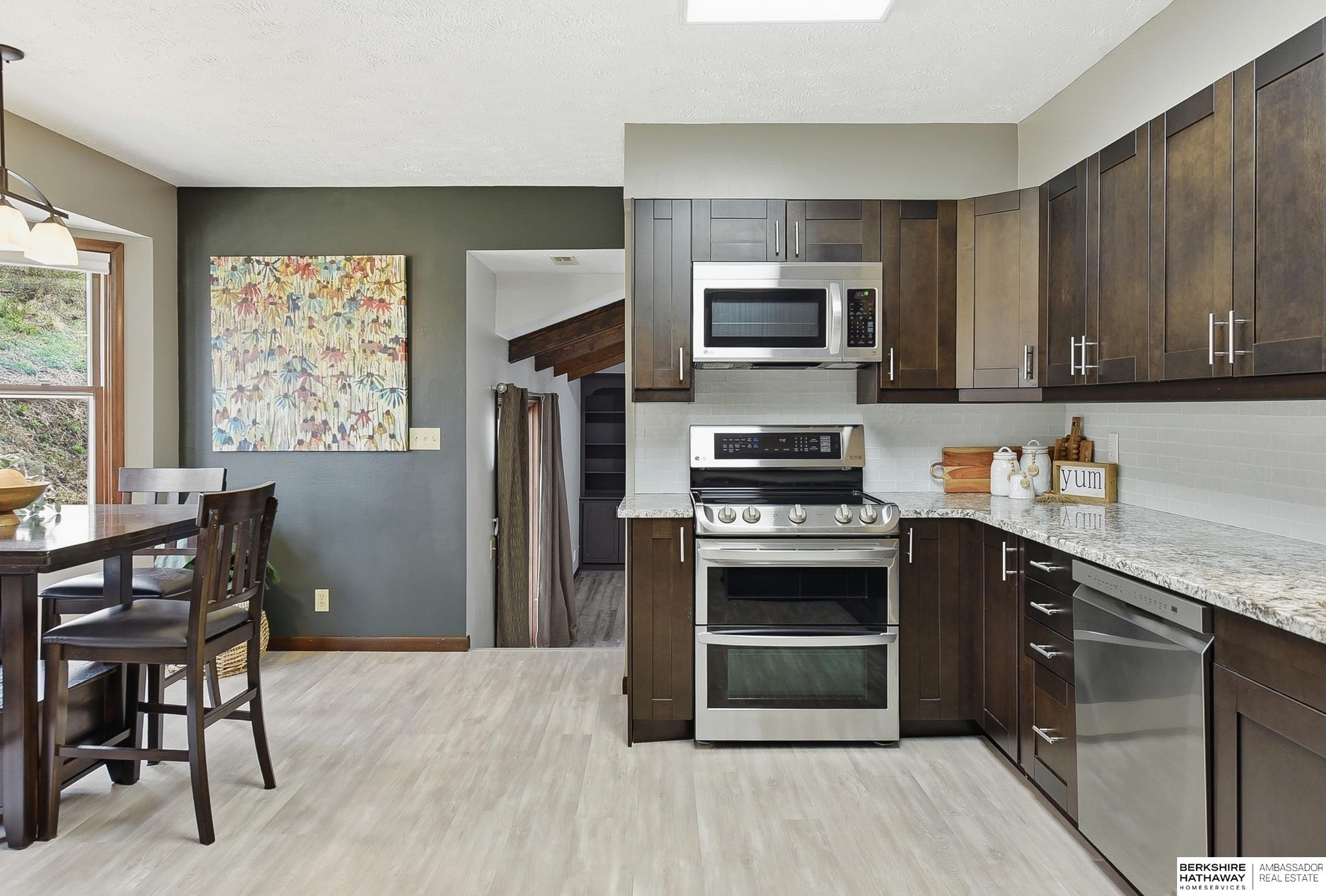 This meticulous gem has been loved & cared for, ready for the next lucky buyer to do the same! Located & nestled on a quiet cul-de-sac with oversized lot & Fontenelle forest back yard vibe & trails! A unique tri-level for a growing family, 4 bed, 3 bath with some fresh paint throughout too! The tasteful & updated open kitchen concept sports newer SS appliances, granite countertops, double oven, modern floors & nat'l sunlight throughout. Do you like to entertain? Make your way to the family room, cozy up to a gorgeous fireplace, built-in bar or office nook area! Yearning for more privacy, another bonus family room with laundry on main & washer/dryer stays! 4 bedrooms upper level, with updated spa feel baths & check out the oversized primary bedroom! Make your way to basement for tons of storage & opportunity to add your own TLC for more living space. Easy access to schools, parks, restaurants, shopping & interstate...just when you think it can't get any better, check out the price! AMA