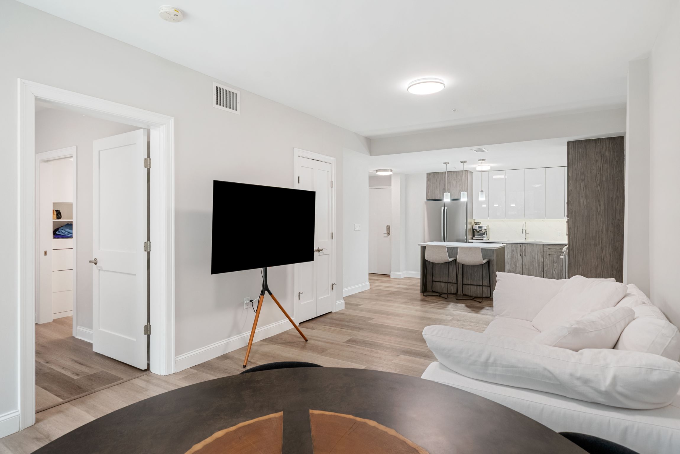Welcome to The Cosmopolitan! A boutique luxury building in highly desired South End! This oversized one bedroom unit features a large kitchen with an abundance of storage, open concept living/dining, a half bath for guests, and a primary suite with walk in closet and luxurious bathroom. Unit also features central air, laundry in-unit, and private balcony. Also featured is floor to ceiling windows! Residents enjoy an impressive suite of amenities, including a lounge, fitness center, bike storage, pet washing station, courtyard, and a modern lobby with 24/7 concierge service. First Open House, Sunday April 12th from 1pm - 3pm.