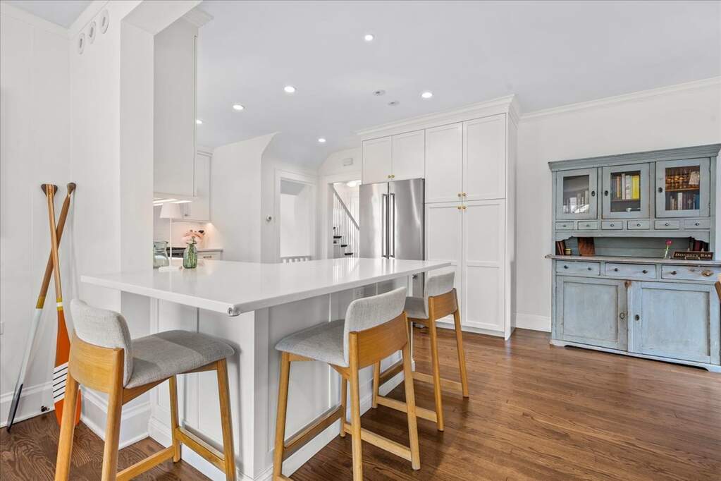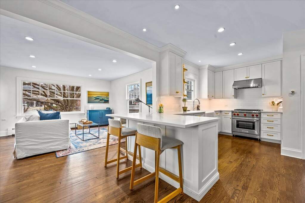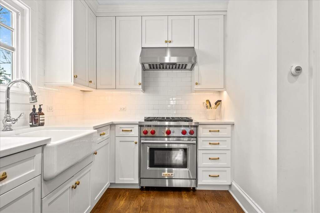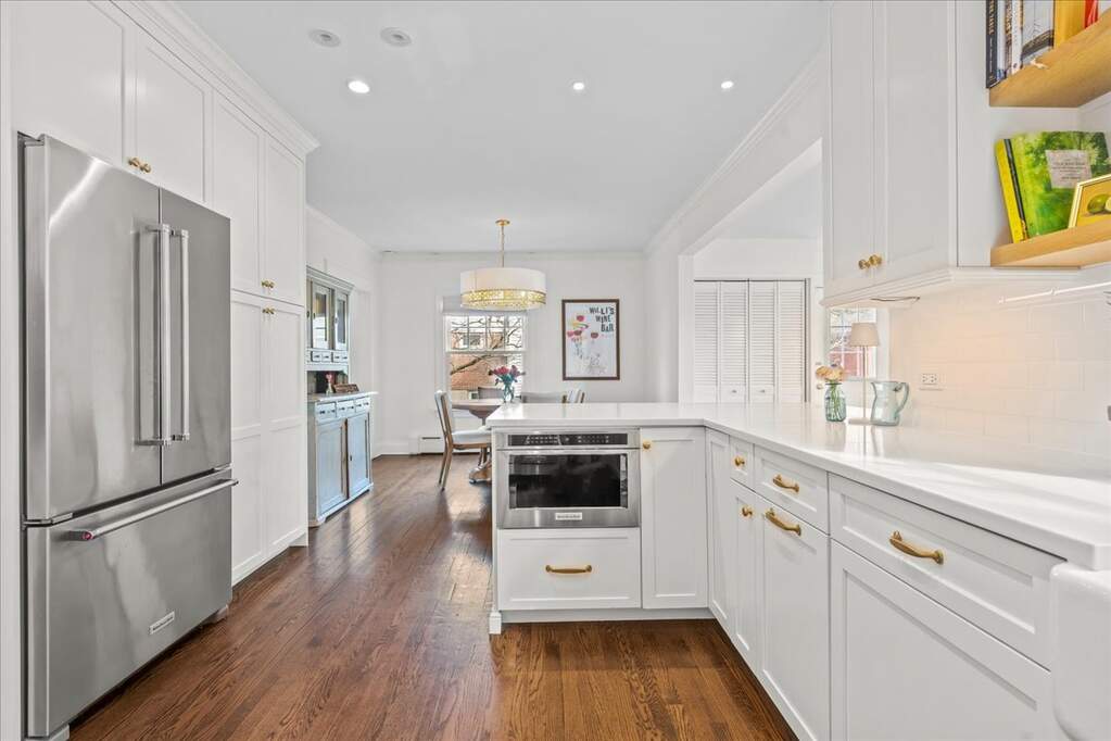 Picture-perfect Kenilworth Gardens Colonial with timeless curb appeal-crisp white siding, navy shutters, and a coastal blue front door evoking the charm of a Hamptons-inspired home. A beautiful bluestone walkway leads to the welcoming front entrance, setting the tone for this classic yet refreshed home. Inside, the home feels bright, white, and beautifully refreshed, anchored by a charming living room with bay window and fireplace that creates a warm and inviting gathering space. The 2019 kitchen renovation blends classic style with modern function and features a Wolf range, white farmhouse sink, brushed gold hardware, and island seating. The kitchen flows seamlessly into the dining area and opens to a cozy family room with vertical shiplap walls, overlooking the backyard and two-car garage. The second floor offers a primary bedroom, a spacious hall bath with double sinks, and two additional bedrooms, all filled with natural light and classic character. The finished lower level provides flexible living space with a rec room, office area, and laundry. Outside, enjoy a manicured fenced backyard with brick patio, perfect for relaxing or entertaining plus a 2 car garage. Recent improvements include all new Marvin windows, updated doors and hardware, a high-efficiency Bosch heat pump HVAC system with Unico air handler (2022), and a fully restored chimney system with new liner, flue resurfacing, and top damper (2021)-significant upgrades already completed for the next owner. Convenient walk-up attic allows for storage. All of this in a prime Kenilworth Gardens location close to schools, parks, the Metra train, and downtown Wilmette shops and restaurants. Showings will be 4/11 and 4/12 make showing in showingtime. Possession will be given June 15th.
