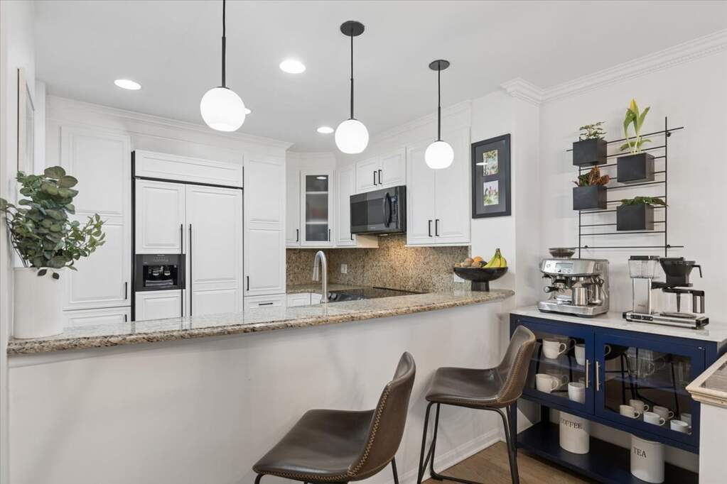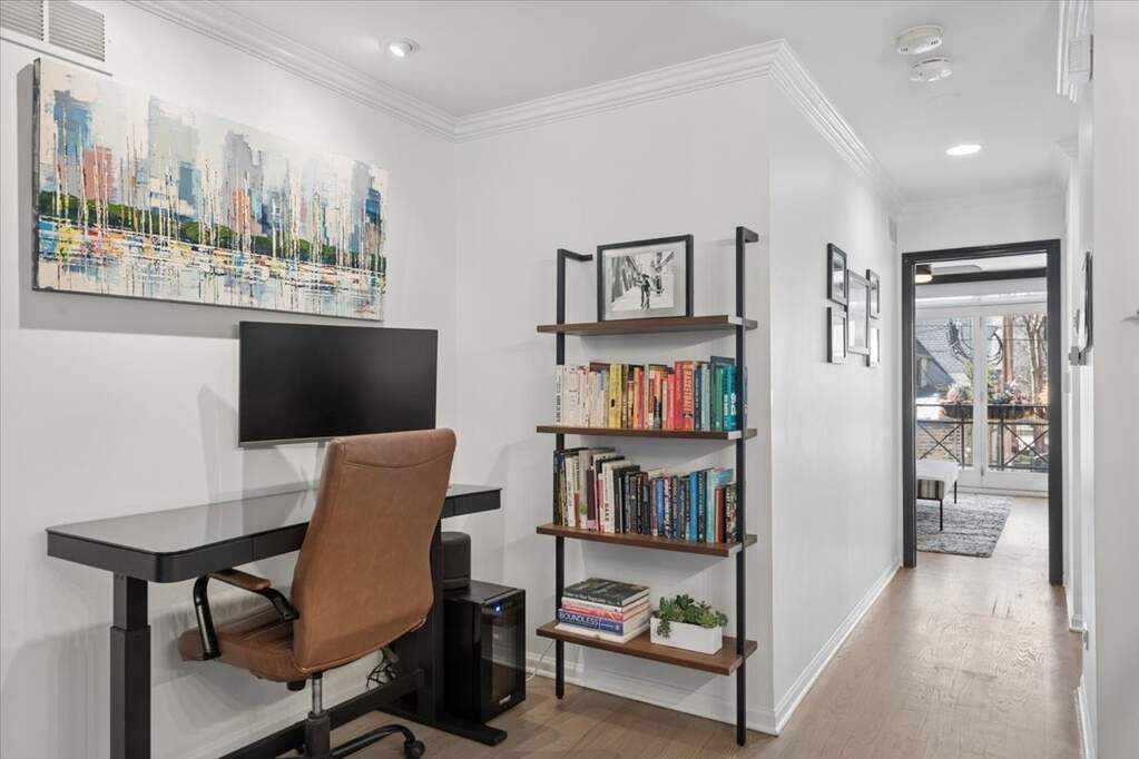 Experience Gold Coast living at its best in this rarely available townhome/duplex down condo at the gated Oak Club. Tucked within a quiet, landscaped courtyard just steps from the neighborhood's top dining and shopping, this 2-bedroom, 2.5-bath duplex offers a unique blend of space, privacy, and convenience. The main level welcomes you with an abundance of natural light, soaring 9-foot ceilings, rich hardwood flooring, elegant crown molding, and a cozy gas fireplace. The seamless flow between the living, dining, and kitchen spaces makes entertaining effortless. The kitchen is outfitted with granite countertops and a full-height backsplash, custom cabinetry and stainless-steel appliances. This level also includes a dedicated work-from-home area, a stylish powder room, and an impressive primary suite featuring two custom walk-in closets, a charming Juliet balcony, and a luxurious bath complete with heated floors, dual vanities, a separate soaking tub, and an oversized walk-in shower. Downstairs, you'll find an expansive second bedroom, a full bath with tub, side-by-side full-size laundry, and the rare convenience of an attached garage with additional storage. Located within the sought-after Ogden School District and offering lower monthly assessments which includes cable and internet. This home delivers both comfort and convenience. Improvements include refinished floors, fresh paint throughout, newer lower-level carpeting, updated lighting, ceiling fans, and motorized shades in the living room and primary bedroom. Additional upgrades include a newer dryer (2022), washer (2025), range and microwave (2024), refreshed primary bath fixtures (2024), and a new stair railing (2025). Enjoy close proximity to Washington Square Park, Oak Street Beach, world-class shopping, renowned dining destinations, fitness centers, grocery options, and easy public transit.