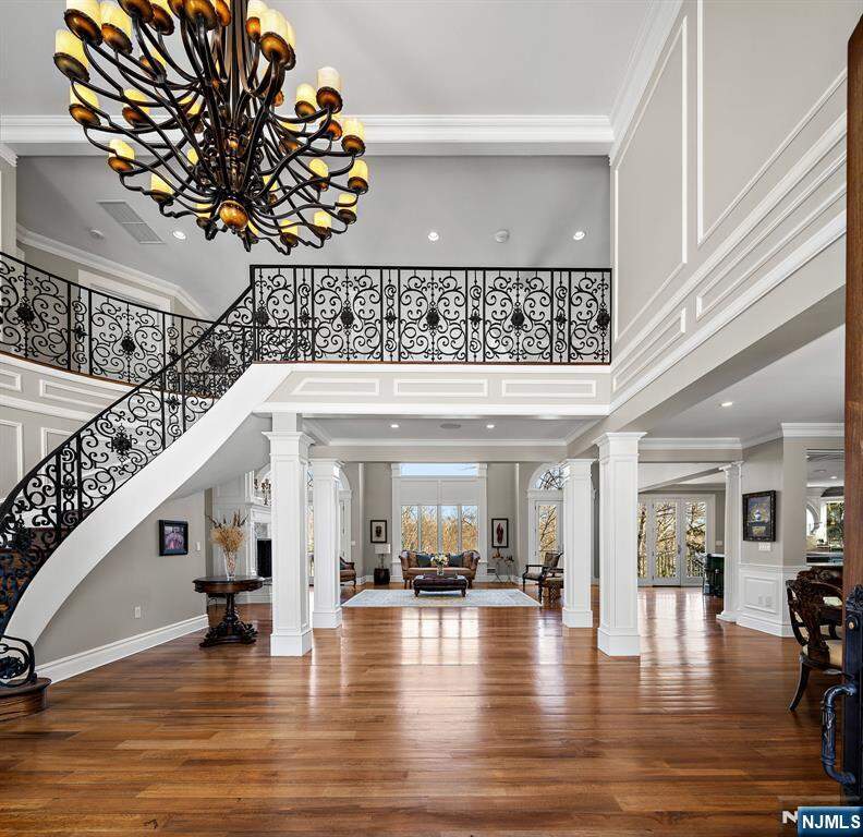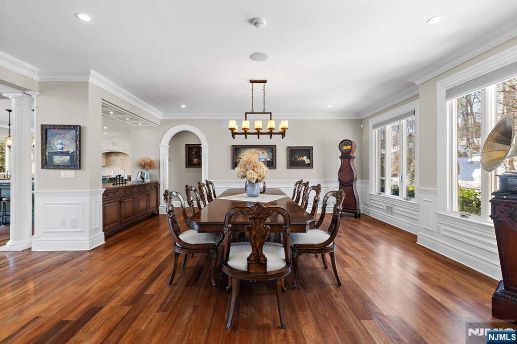 Welcome to this exceptional custom-built estate, completed in 2014 and set on over an acre of meticulously manicured private grounds in one of MontvaleaEURs most desirable settings. A grand circular driveway and impressive three-car attached garage create a striking first impression, while the home offers over 7,600 sq ft of beautifully finished living space across all levels. This remarkable residence features 5 spacious bedrooms and 6 full bathrooms, including rare primary suites on both the main and second levels. Generous bedrooms offer walk-in closets and multiple en-suite baths. A dramatic two-story foyer and soaring great room anchor the main living spaces, complemented by a private cherry-paneled office. The expansive eat-in chefaEURs kitchen is designed for entertaining with two oversized islands, leather-finished countertops, and seamless flow to living and dining areas, plus a dedicated second-floor laundry room. The fully finished walk-out lower level offers a massive rec room, wet bar, gym, sauna, and full bath. Outdoor living is equally impressive with sweeping views, multiple terraces and balconies, outdoor kitchen, brick oven, lounge area with outdoor TV and heaters, and fire pit. Quality construction includes 4-zone HVAC, full-house generator, radiant heated bathroom floors, smart lighting, speakers and camera systems, irrigation, and more. Exceptional opportunity in a premier Montvale location.