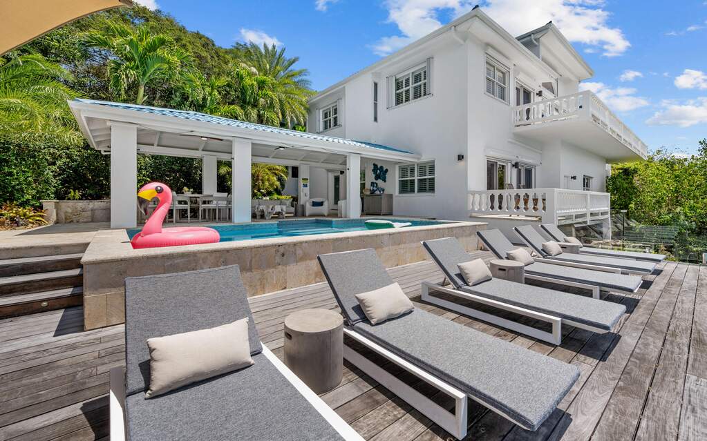 Impeccably maintained and thoughtfully upgraded, Villa Pallina is a refined Caribbean retreat offering 4 bedrooms, 3 full baths, and 1 half bath in one of St. Thomas' most desirable settings. With a flexible layout that comfortably accommodates up to 11 guests, the home is equally well suited for private use or continued short-term rental success. This is a home that lives well. The layout is cohesive, with three bedrooms under one roof, generous indoor and outdoor living spaces, and a seamless connection to the pool deck designed for both relaxation and entertaining. Currently operating as a successful short-term rental, the property offers immediate potential while still feeling like a true private residence. The level of care and ongoing investment is evident throughout, creating a turnkey space for both personal use and rental opportunity. Recent improvements elevate both form and function, including a redesigned kitchen with new island and appliances, refreshed interiors and exteriors, updated systems, and a resurfaced saltwater pool. The home is supported by a robust solar system with Tesla Powerwalls, providing energy efficiency and reliability that is increasingly valuable in the territory. A semi-smart home setup allows for remote access and control, while infrastructure upgrades, including water filtration, cistern servicing, and mechanical maintenance, reflect a proactive approach to ownership. Villa Pallina strikes a rare balance of quality, comfort, and performance in today's market.