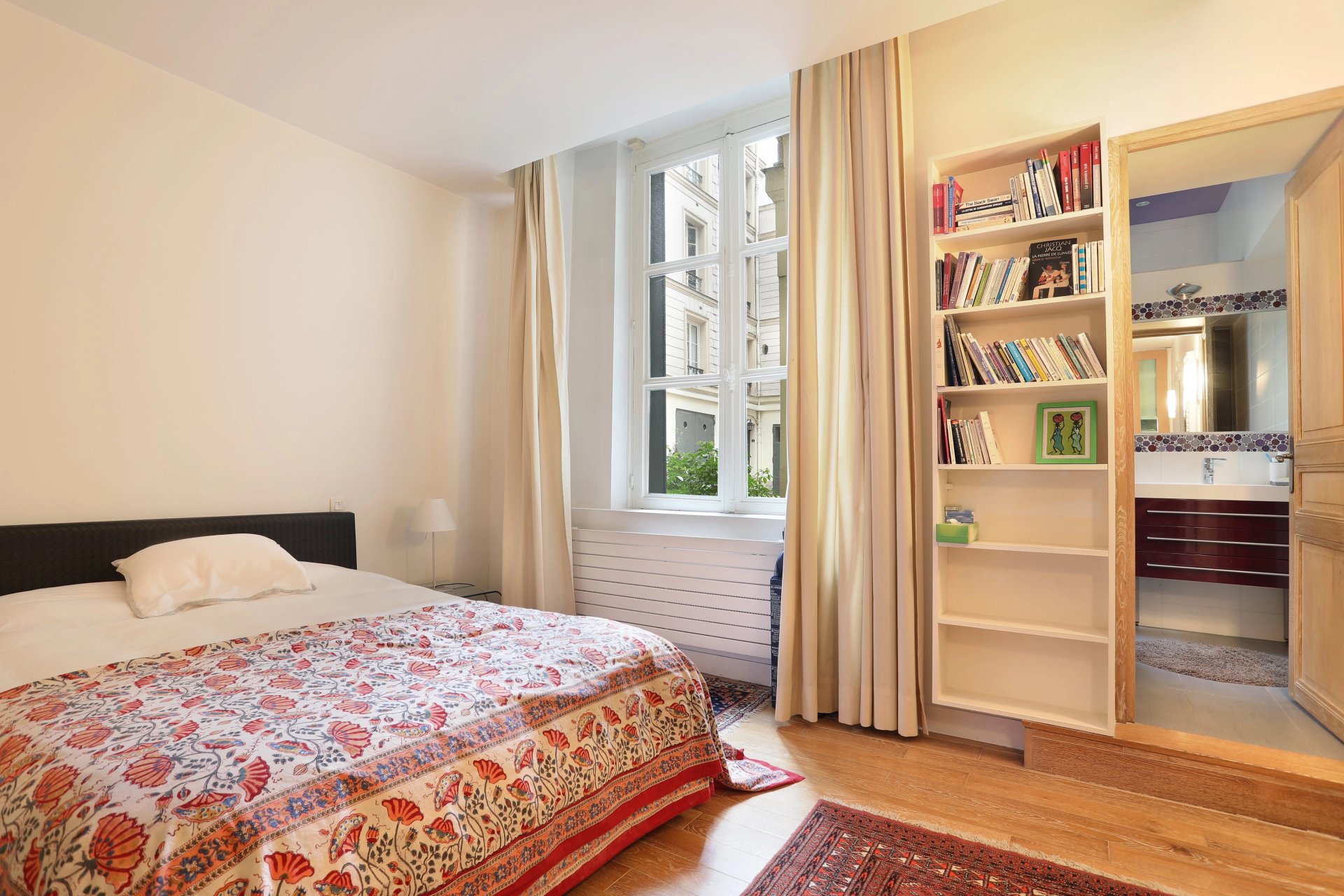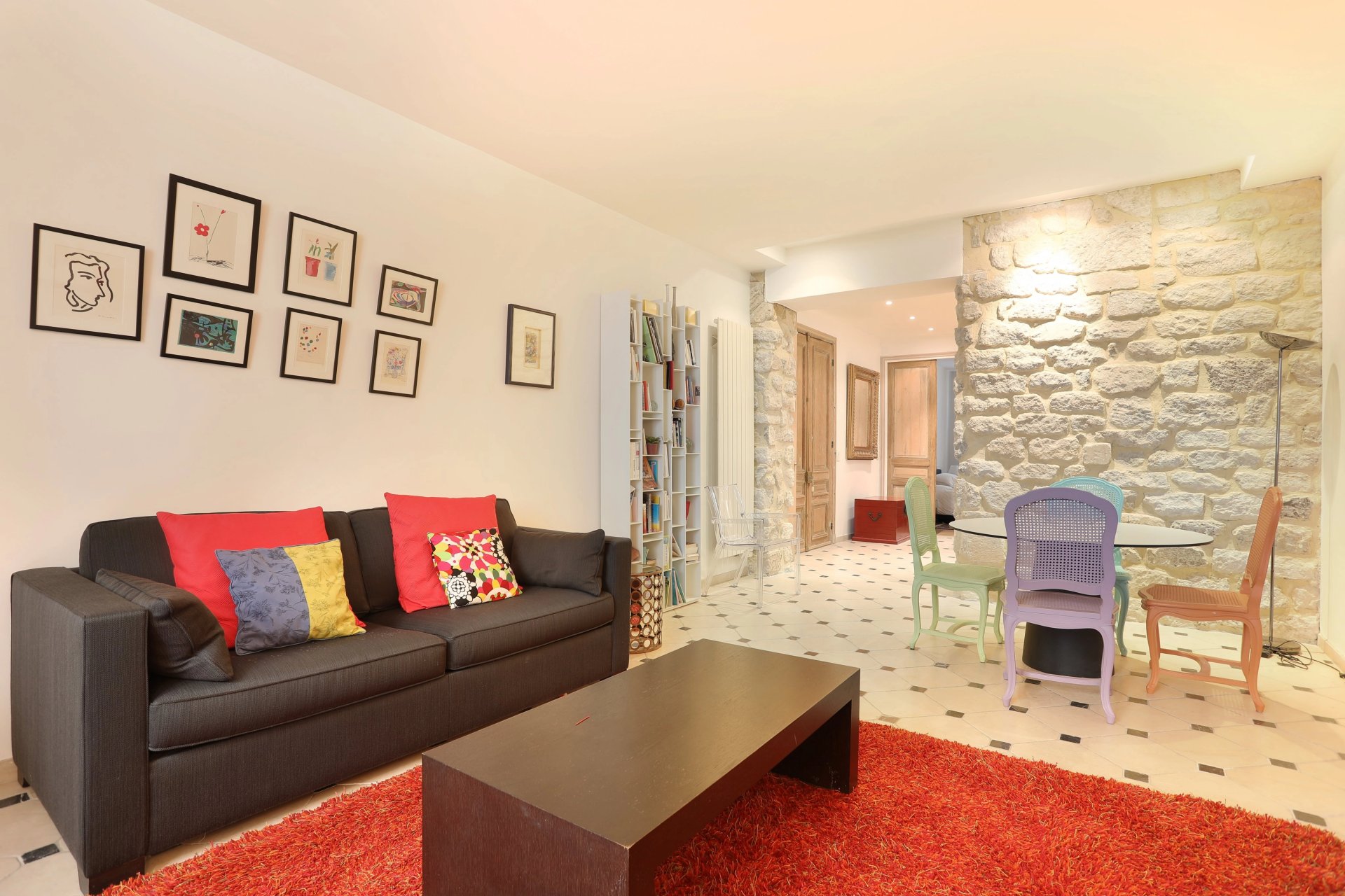 In a beautiful old building, a 61.50 m² apartment located on the ground floor, facing both the street and a lovely paved courtyard. In perfect condition, it comprises a living room, an open-plan kitchen, a bedroom, and a bathroom with toilet.