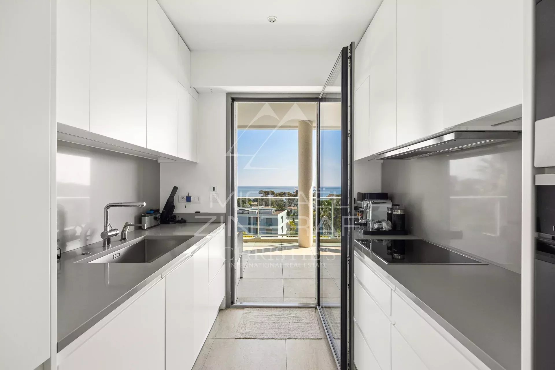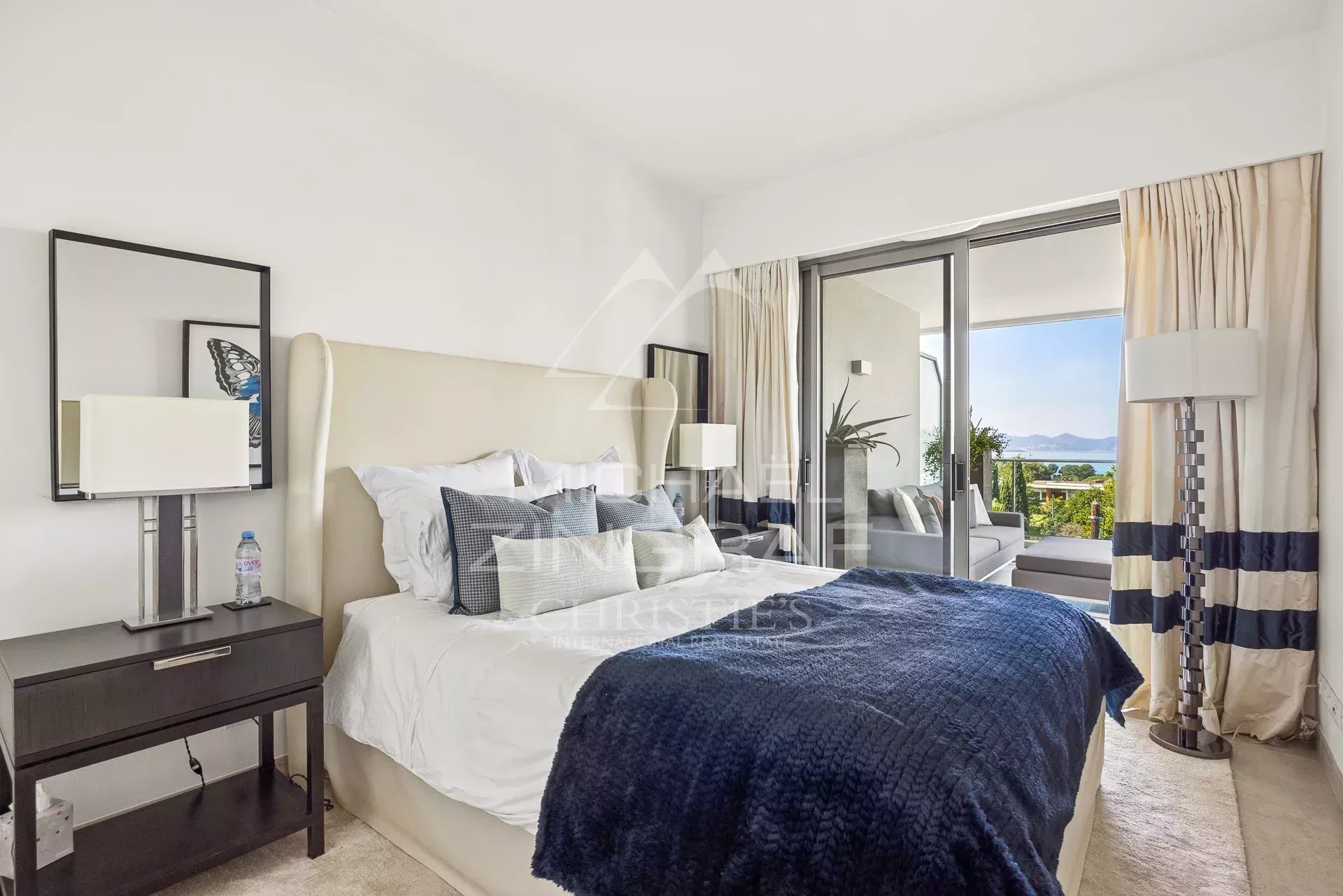 This unique apartment, extended by a magnificent corner terrace, enjoys uninterrupted views over Nice to the East, Cannes to the West, and the snow-capped mountains to the North.