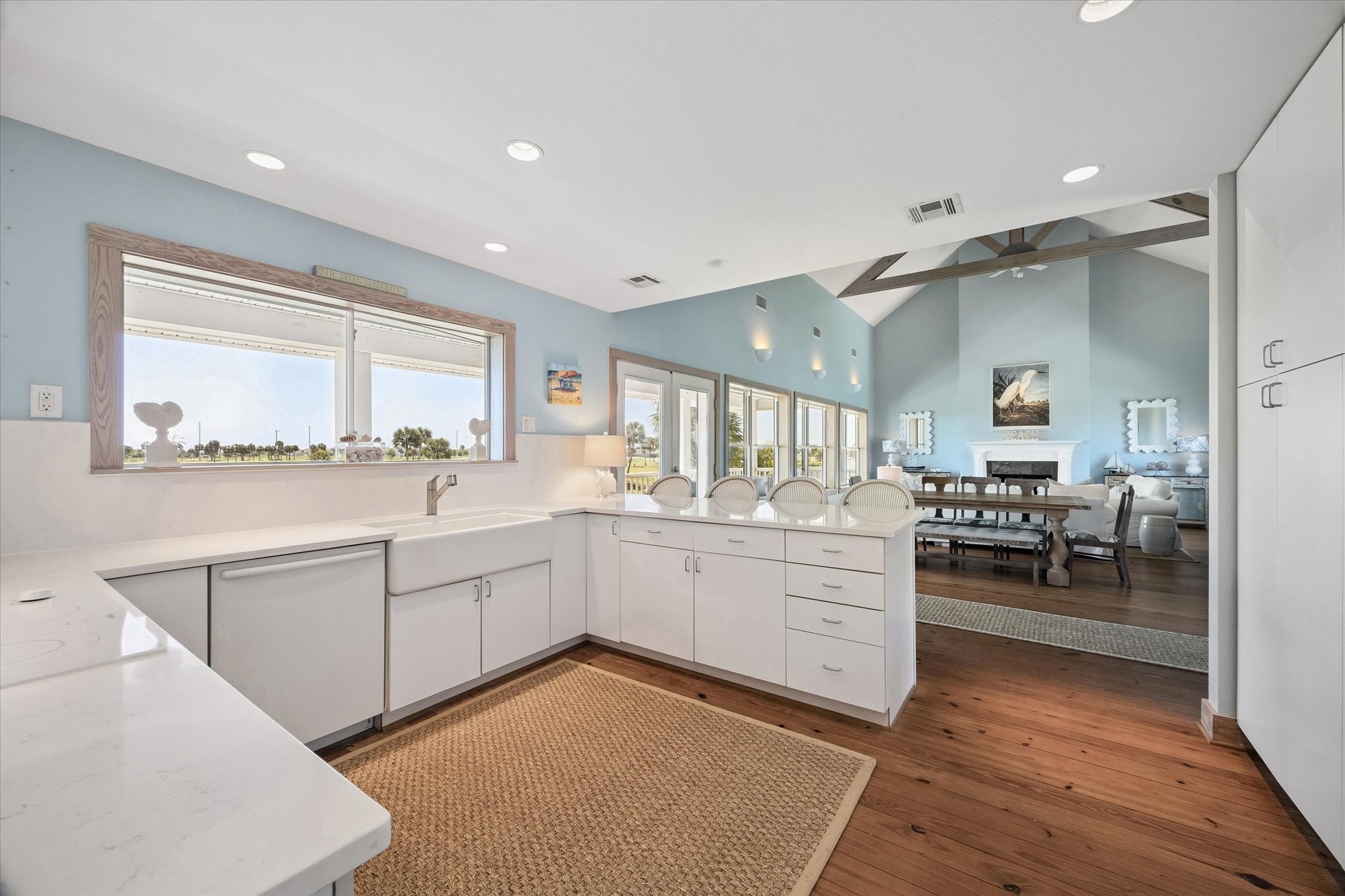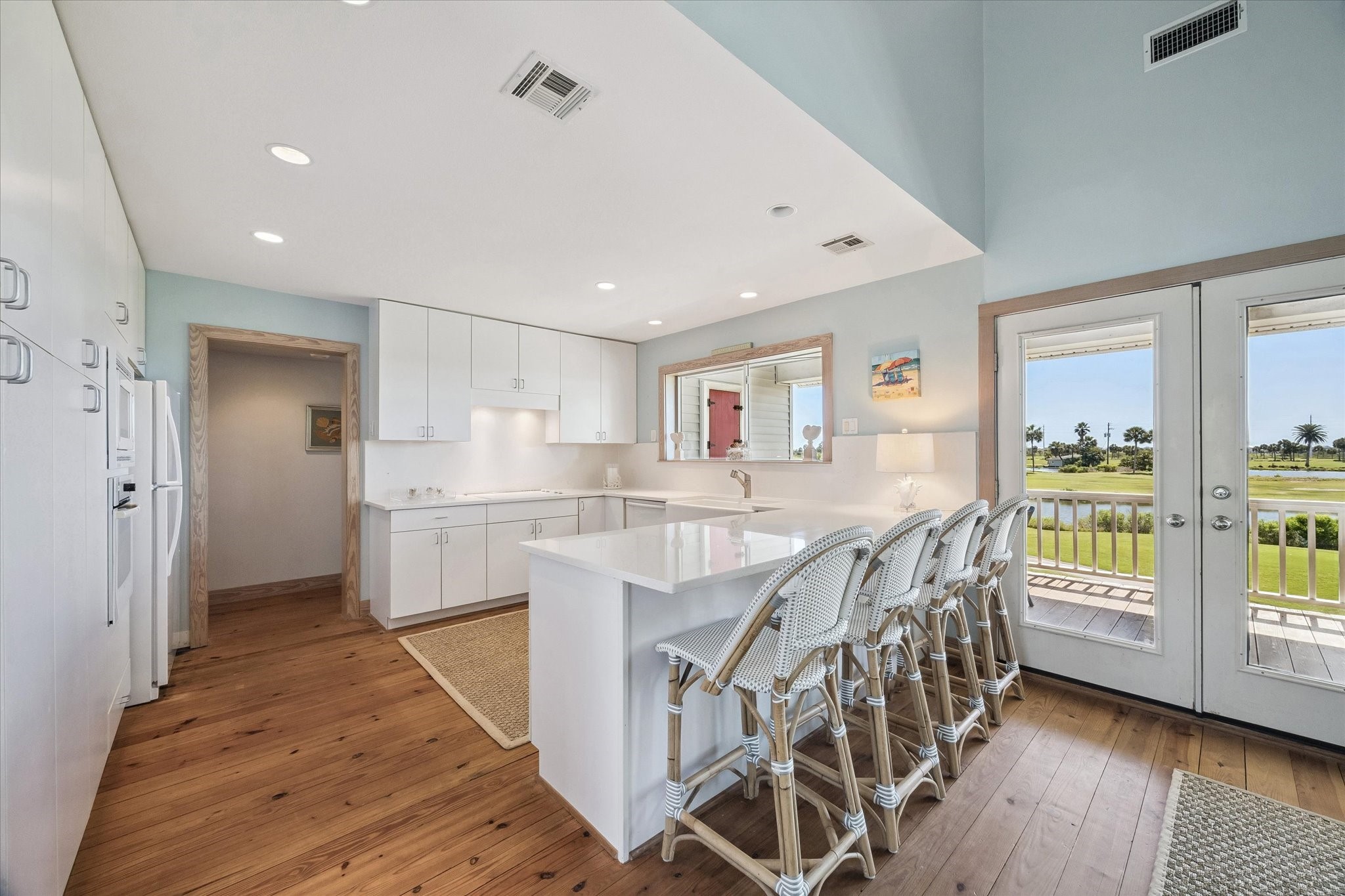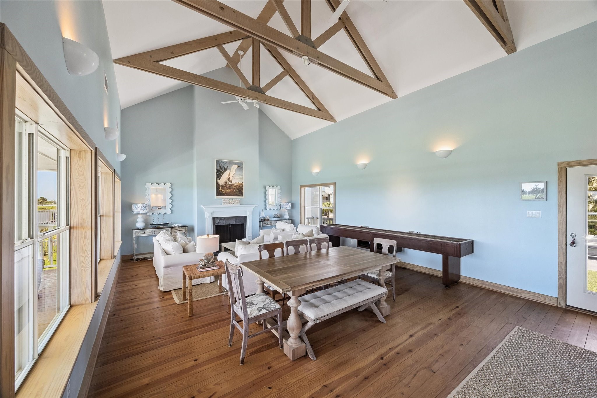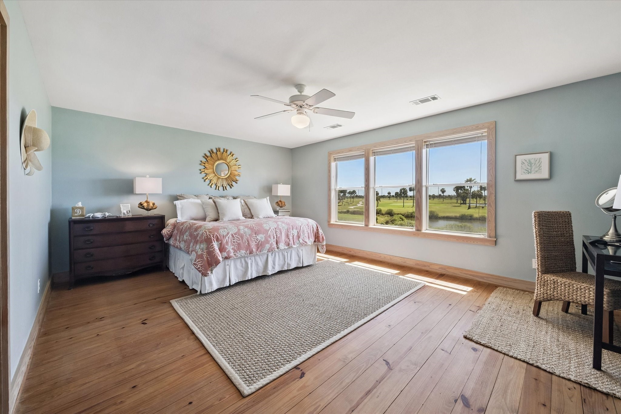 Coming Soon - From its inviting curb appeal to the covered back deck capturing a gentle breeze, you will fall in love. Panoramic views of Galveston Country Club golf course, evoke a Palm Springs-like serenity. Perfect for entertaining! The living-dining area is spacious showcasing vaulted ceilings and exposed wooden trusses. Row of windows bathe the space in sunlight and amazing views. Kitchen offers a farmhouse sink, quartz countertops and amazing floor-to-ceiling storage. Unusually large first-floor primary suite has shower, large vanity, double sinks and phenomenal walk-in closet. Upstairs has two additional bedrooms, each with its own bath. One bedroom is so large it could be split, making for 4 bedrooms. At ground level is a 2-car garage, plus versatile additional room for storage, etc. Double-wide driveway for ample parking. Set back on the lot with an inviting presence. Originally custom-built for a prominent family in a New England coastal style. An exceptional home at an exceptional price.