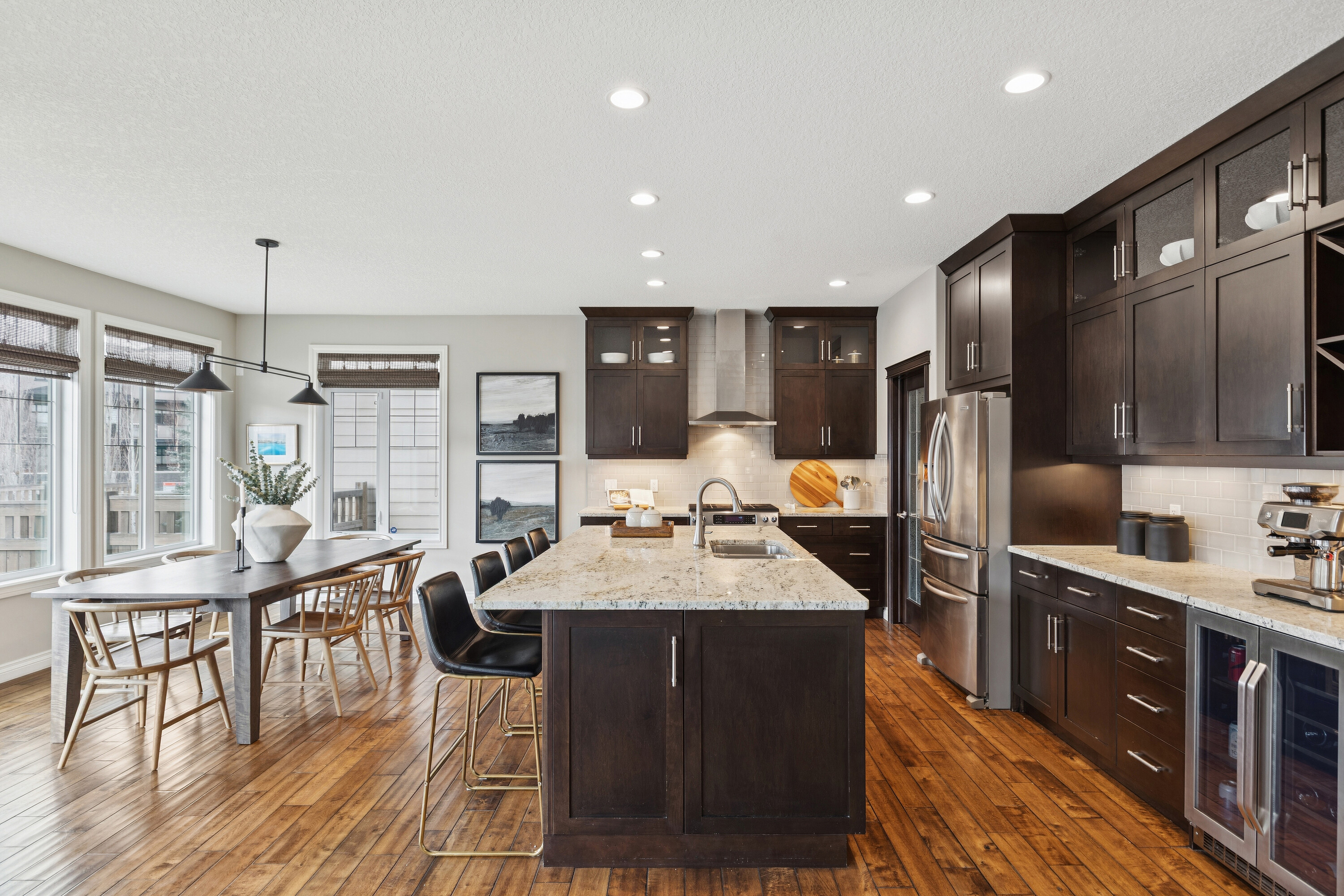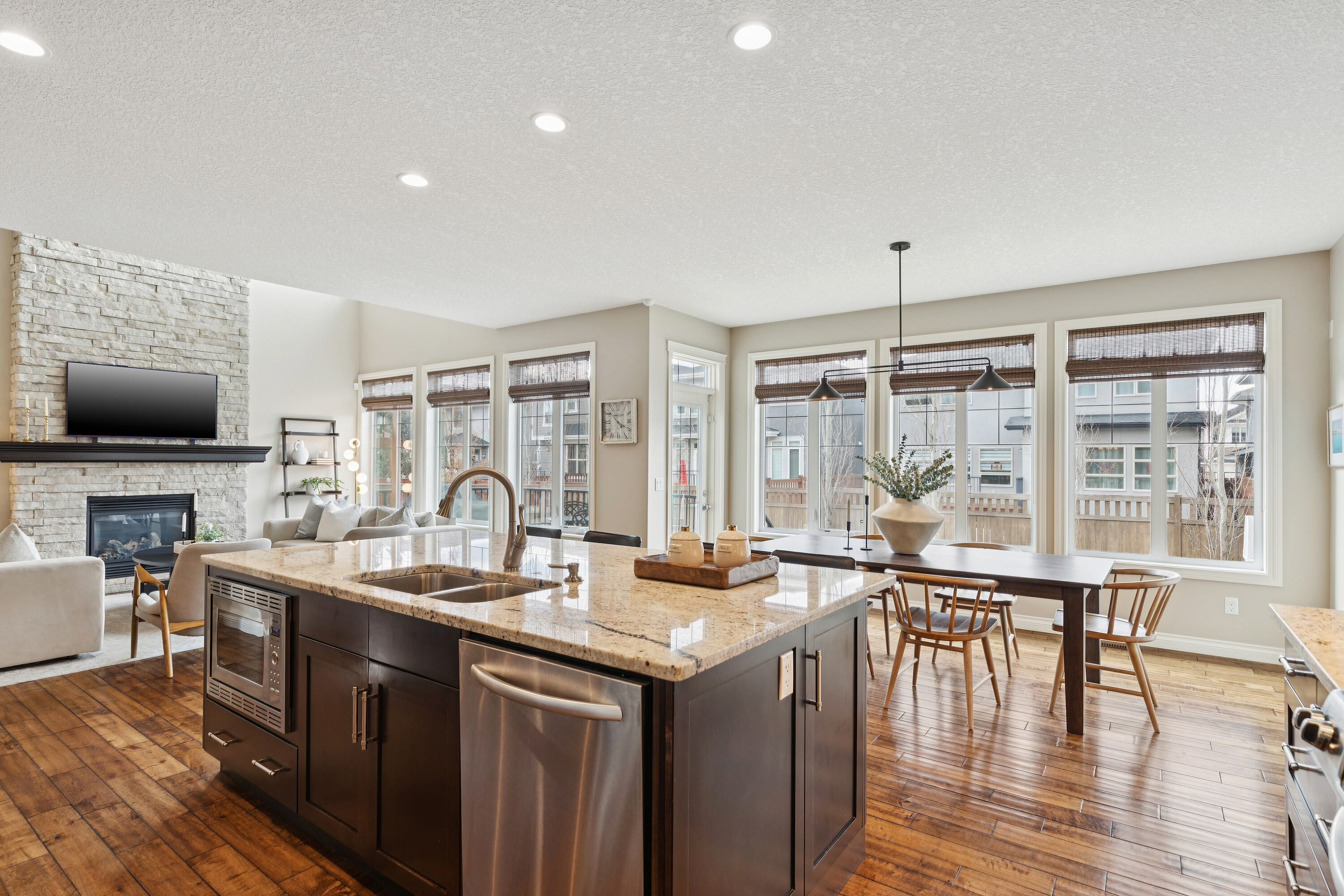 Nestled on a quiet cul-de-sac in the heart of Aspen Summit, this beautifully appointed and extensively upgraded residence offers over 2,600 sq. ft. of refined living space in one of Calgary’s most coveted family communities, Aspen Woods. Perfectly positioned just moments from top-rated schools, scenic parks and pathways and the boutique amenities of Aspen Landing, this home effortlessly blends luxury, comfort, and everyday convenience. Thoughtfully designed for modern family living, the home welcomes you with a charming front veranda—an inviting space to unwind and enjoy at the end of the day. Just inside, a private den/office provides the ultimate work-from-home convenience, ideally situated for productivity while maintaining separation from the main living areas. Rich hand scraped hardwood floors and expansive windows fill the main level with natural light, creating a warm yet sophisticated ambiance. The chef-inspired kitchen is the true heart of the home, featuring a substantial central island, upgraded stainless steel appliances, granite countertops, and timeless cabinetry—ideal for both entertaining and daily life. The dramatic two-storey living room showcases a striking stone fireplace to the ceiling, offering a stunning focal point and an inviting space to gather. Functionality is at the forefront with a walk-through pantry—complete with a custom chalkboard wall—leading to a well-designed mudroom outfitted with five individual lockers to keep busy family life effortlessly organized. Upstairs, a vaulted bonus room offers a flexible retreat for relaxation or play. The spacious primary suite is a true sanctuary, complete with a spa-inspired ensuite featuring dual vanities, a walk-in shower, and a luxurious jetted tub. Two additional generously sized bedrooms and a flexible study or homework area ensure space for every stage of family life. Outdoors, the sunny west-facing backyard is a private oasis, enhanced by a spacious deck and mature trees, complete with underground sprinkler system—perfect for enjoying long summer evenings. The undeveloped basement presents a rare opportunity to customize additional living space tailored to your needs. An exceptional offering in a prestigious, family-oriented neighbourhood, minutes to downtown and easy access west to the mountains, this home delivers the perfect balance of upscale living and thoughtfully designed family living in Aspen Woods.