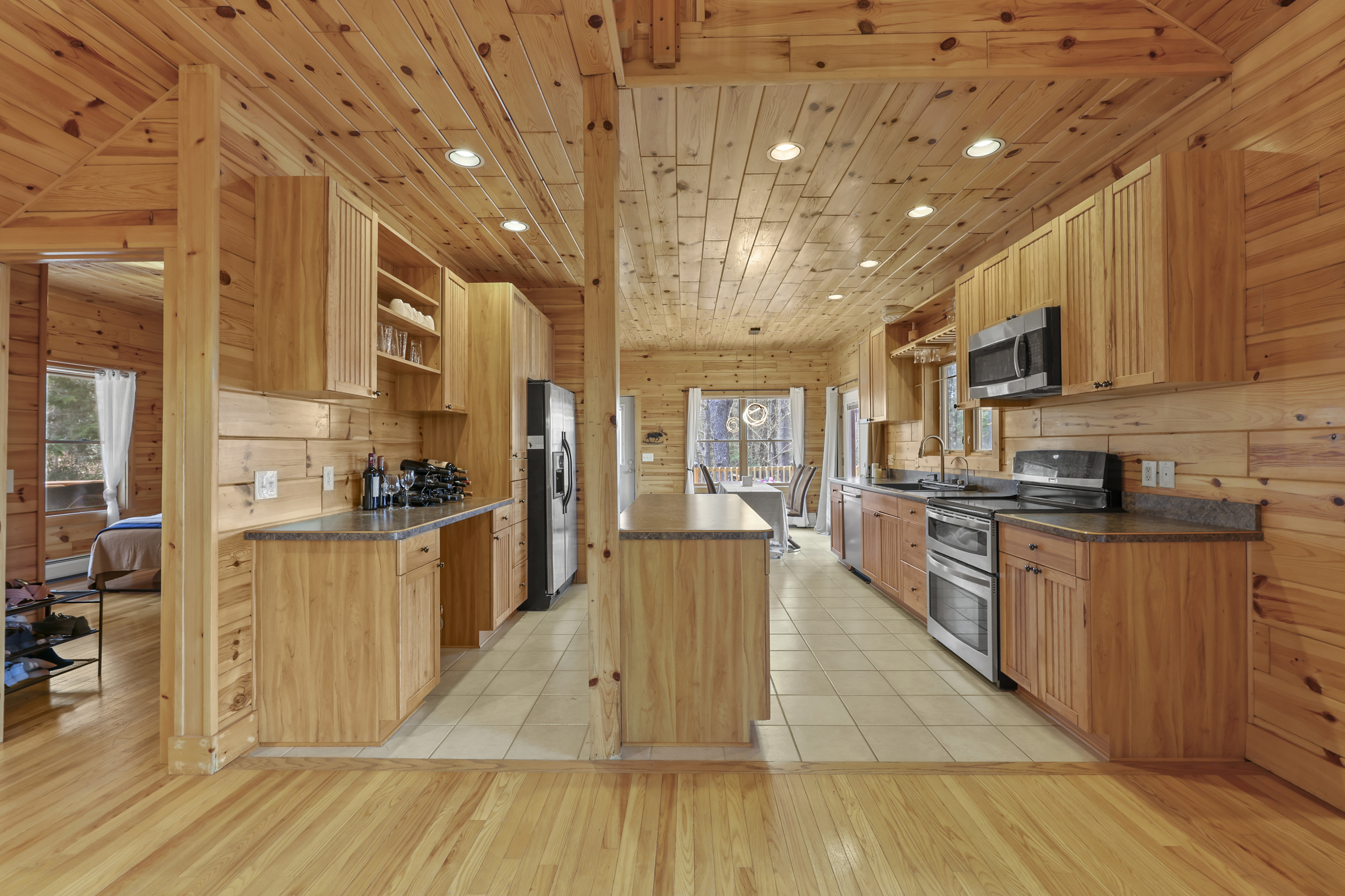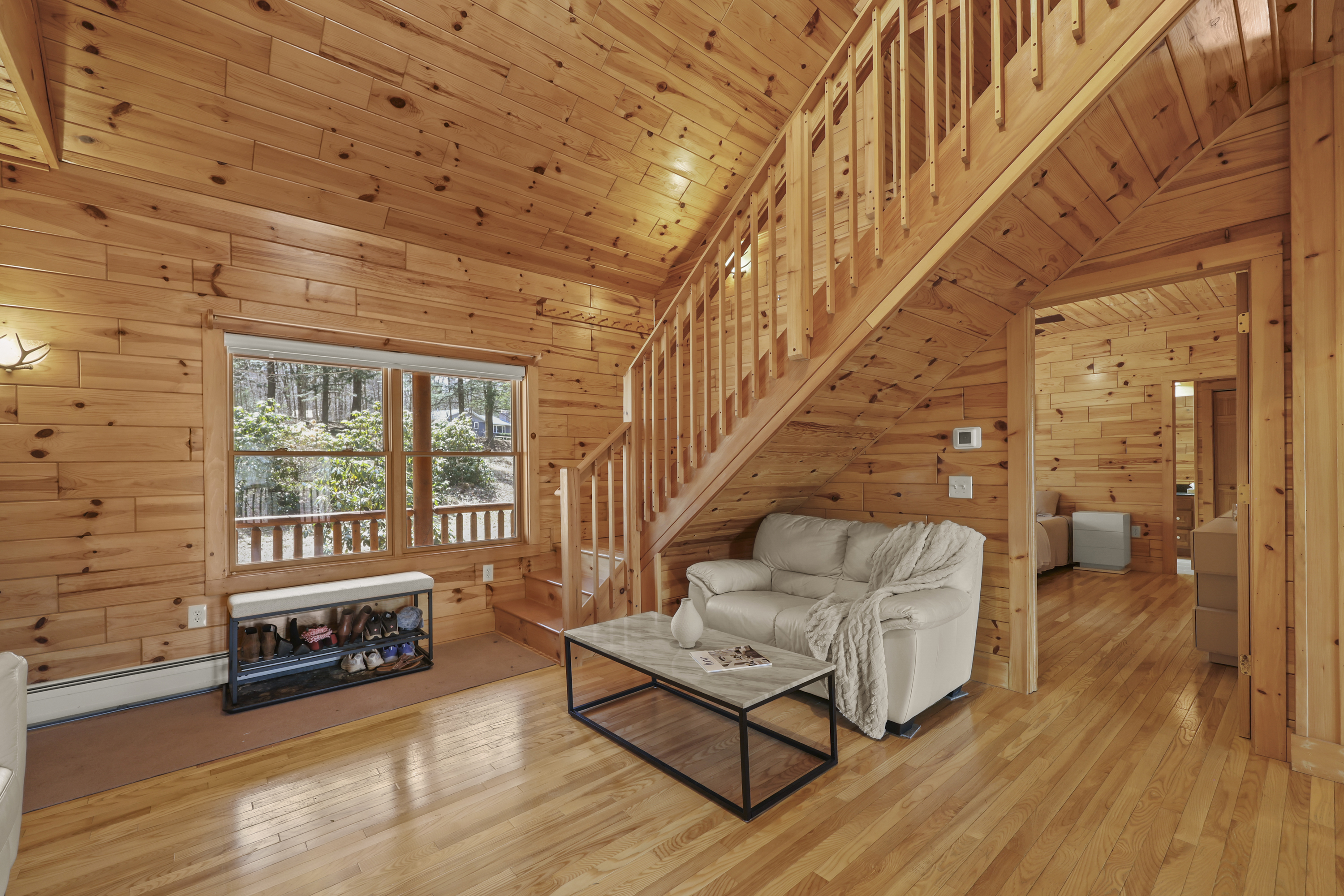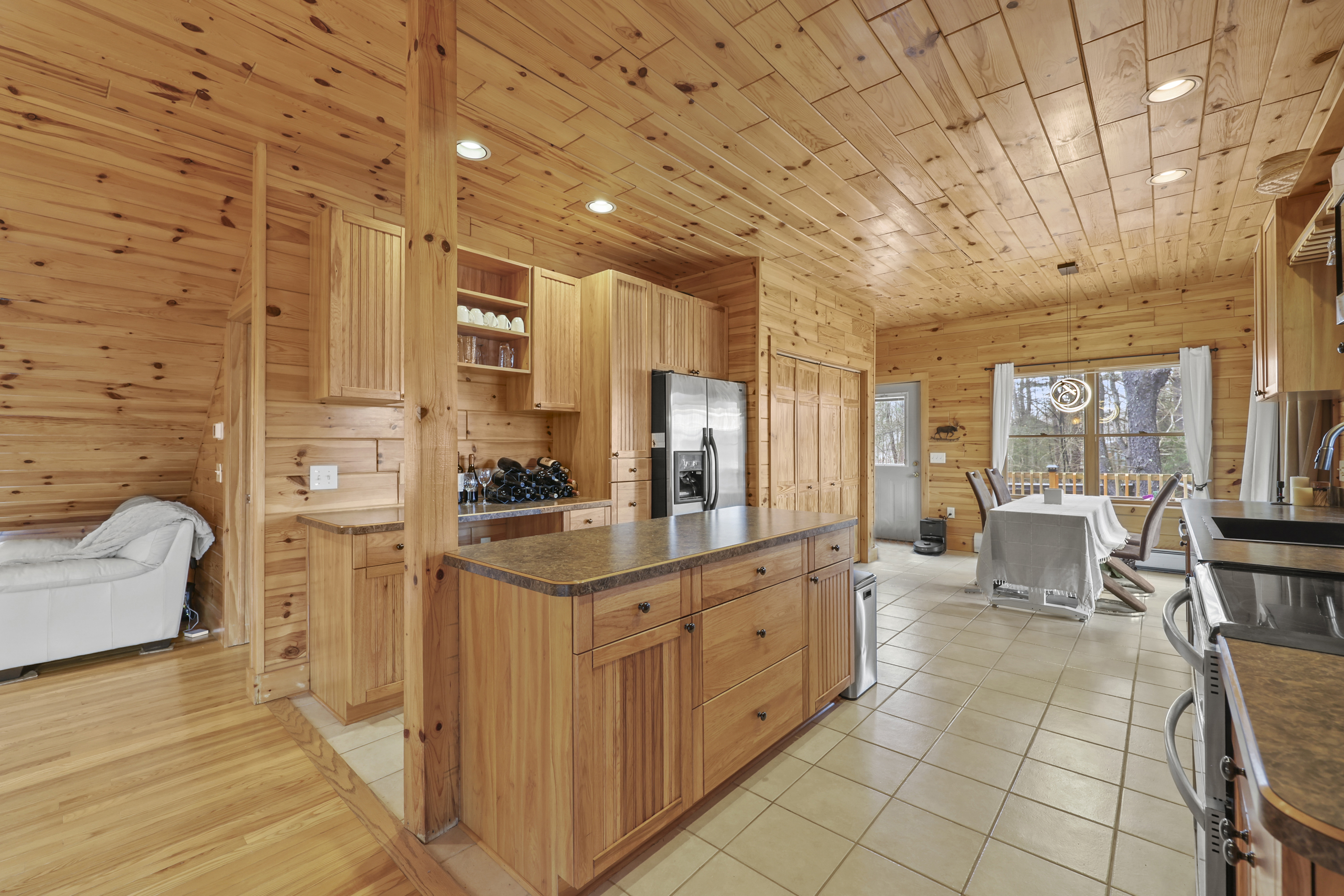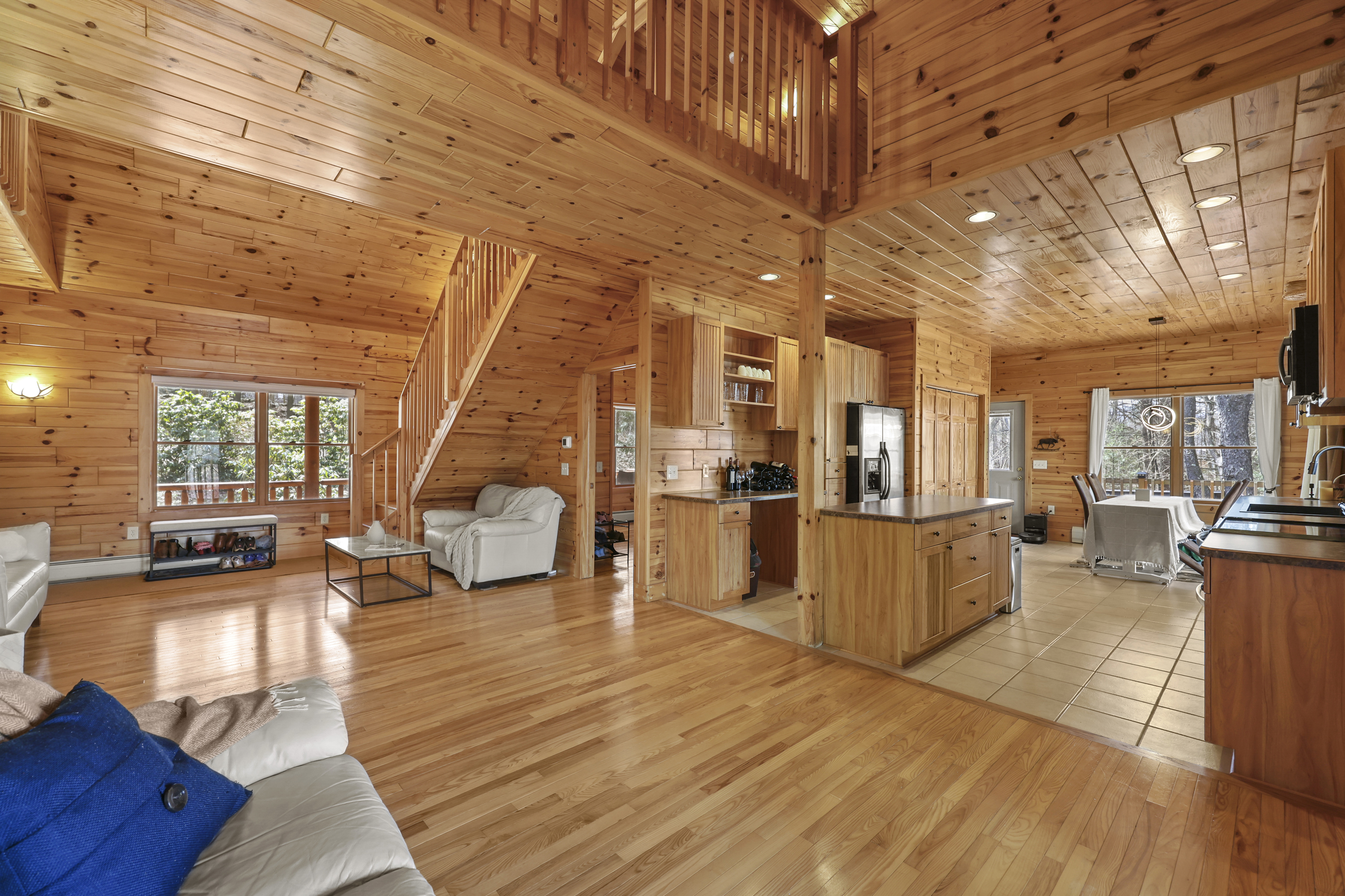 Completed in 2010 and thoughtfully maintained since, this inviting log home offers a blend of warmth, functionality, and connection to its natural surroundings. A wraparound front deck welcomes you in, setting the tone for the home's relaxed feel. Inside, the main living and dining areas flow comfortably together, anchored by a spacious eat-in kitchen with radiant heat flooring, ideal for both everyday living and gathering. The main level features three bedrooms and two full baths, including a primary suite with its own en-suite. Upstairs, a flexible lofted space can serve as an office, entertainment area, or whatever best fits your needs. Out back, a peaceful setting unfolds with a wildlife pond and frequent visits from local birds and animals, best enjoyed from the rear deck.
