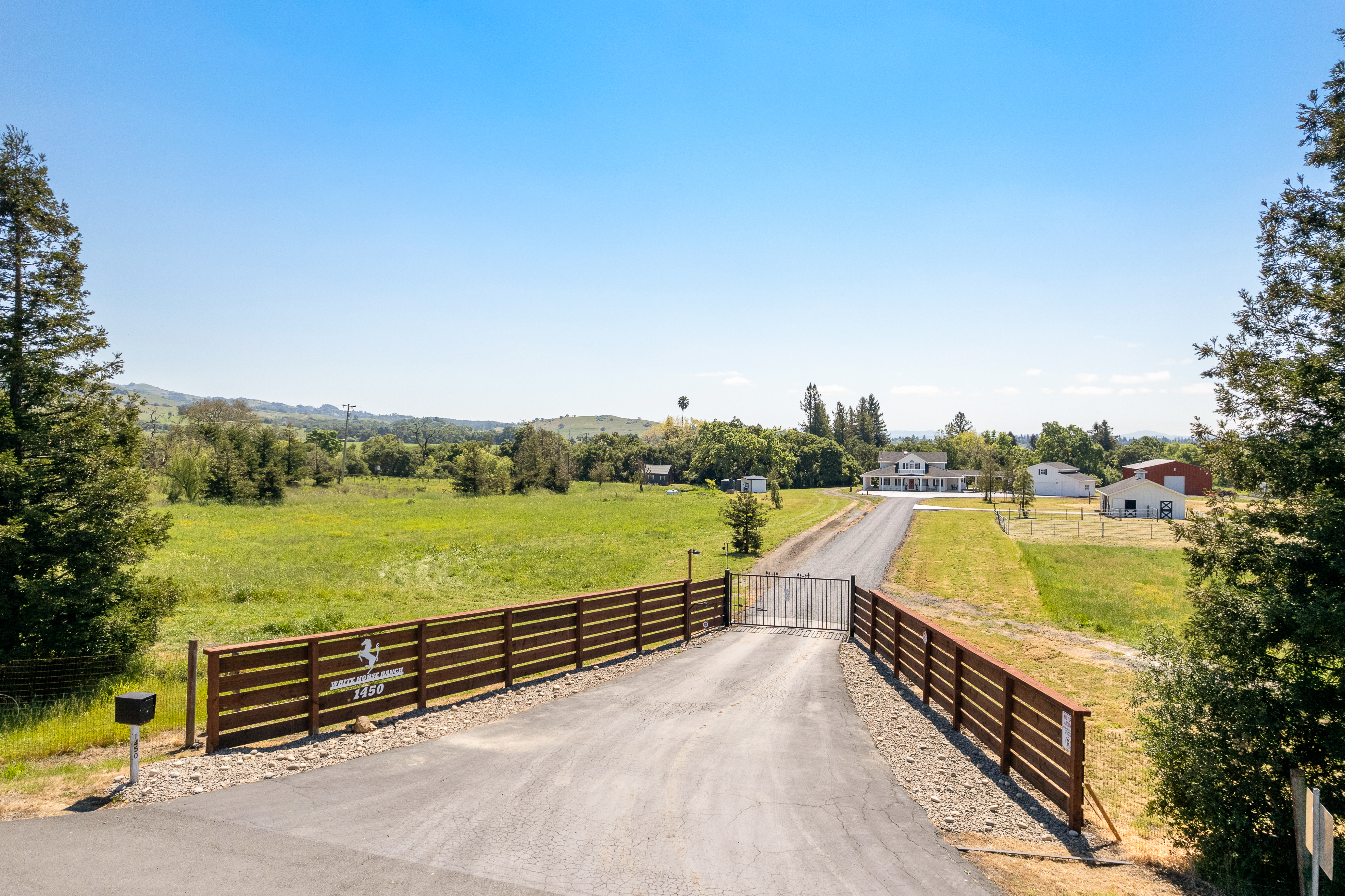 Welcome to White Horse Ranch, a beautiful country property situated on over 10+ usable acres in a sought-after Sonoma County setting.Blending timeless farmhouse charm with modern efficiency, this gated retreat offers space, versatility, and a lifestyle that feels both elevated andgrounded. Extensively renovated, the home is thoughtfully designed for comfort and functionality. A main-level primary suite offers ease of living,while a second upstairs suite with a private balcony creates a peaceful escape. The updated kitchen features Viking appliances and new suedequartz countertops with a full backsplash. Hardwood floors, plenty of natural light and a fireplace add warmth to the living spaces. Enjoy thewrap-around porch, perfect for taking in the view of the hills, backdrop of trees and perimeter landscaping with a nearby water fountain adding tothe ambiance. The grounds are equally compelling. A classic white barn with three stalls and tack room serves as the focal point for equestrians,surrounded by expansive, level land ideal for horses, a hobby vineyard, or an orchard. A pond, fruit trees, and garden beds enhance the naturalbeauty and sense of tranquility, creating an environment that invites both relaxation and outdoor activities. Take a stroll on a path that goesacross the seasonal creek to a detached cottage well-suited for guests, a studio, or an office. Additional highlights include new 7,000-squarefootconcrete driveway, a 3-car garage, and a massive newly built 3,000-square-foot shop. All recent home improvements are complemented byenergy-efficient upgrades including a new roof, insulation, whole-house fan, and a newly installed well system with 12.5 GPM, 5,000-gallonstorage tank, UV filtration, and water softener. A full list of features and additional property details are outlined in the property brochure, includinginformation regarding insurability outside of the California Fair Plan. While the location offers a rural feel, you're still just a short distance fromlocal shops, dining, and everyday conveniences.