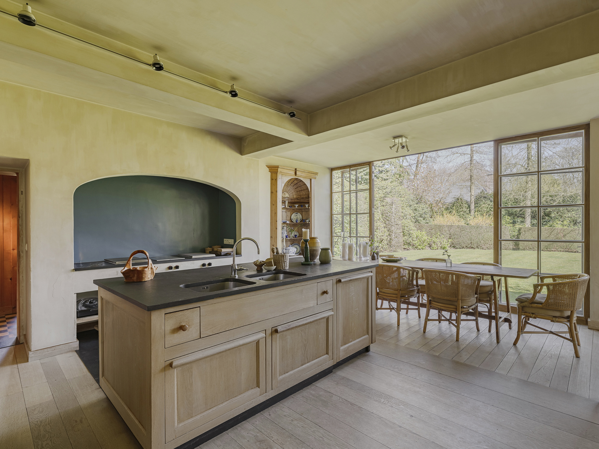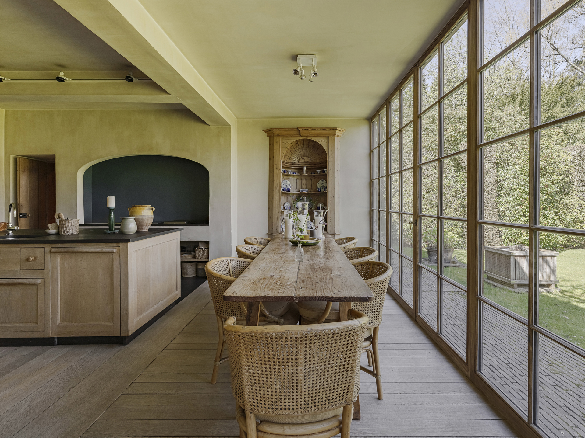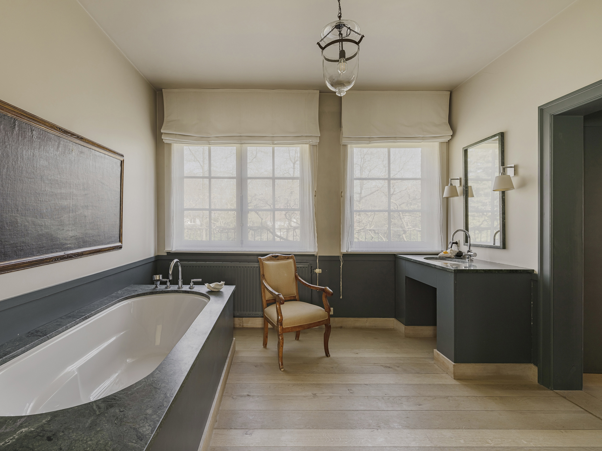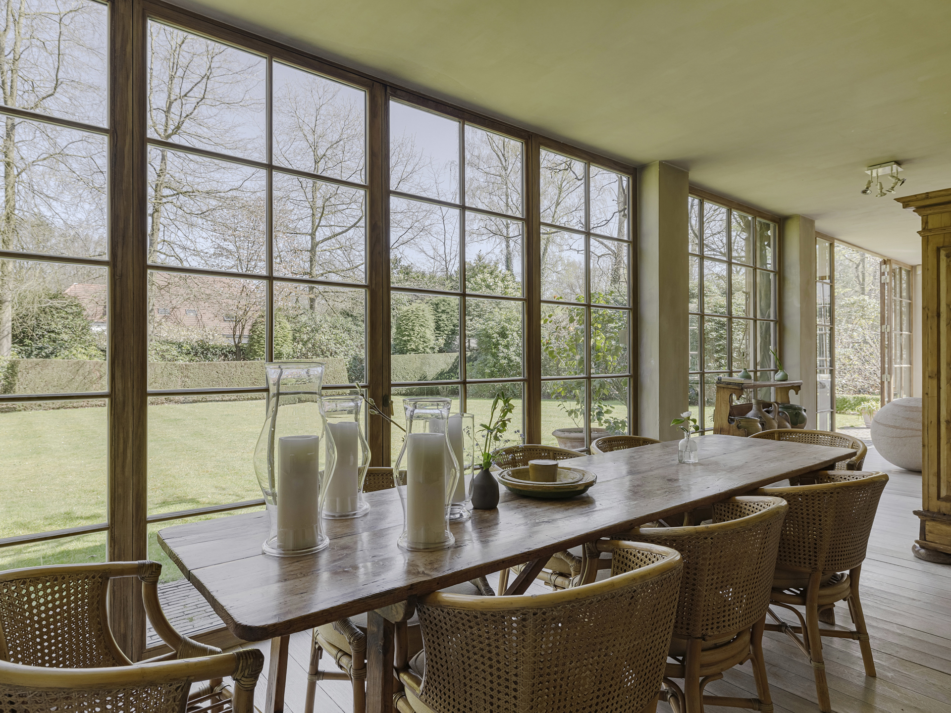 A timeless villa bearing the unique Axel Vervoordt signature. Prime location 'Vriesdonk'. Situated on an east-facing lot of approximately 1800 m² and renovated in 2001. A stately wrought-iron gate and a driveway lined with a magnolia tree welcome you. The entry hall, with paneling in aged pitch pine, leads to a spacious, multifunctional library. The thoughtful layout and oak floors create a warm and harmonious whole. Spacious living room with a fireplace, open-concept kitchen with a pantry, and a light-filled oanjerie. The first floor comprises a spacious master suite with a bedroom, a bathroom in Verde Alpi marble (bathtub and shower), a dressing room and a laundry area. There is potential for an additional bedroom. On the second floor: two bedrooms and a bathroom with a shower and toilet. The interior is elegant and refined, featuring beautiful materials: Italian and Belgian marbles, original double doors, fired slate, and unique fireplace moldings. Painted with mineral lime paints. Roof in natural slate. French-inspired garden with interesting botanical variations, yew and boxwood groves, a ‘miroir d’eau’ (water mirror), and sunny terraces paved with clay pavers. High-efficiency gas boiler with underfloor heating (ground floor), alarm system, and garden sprinkler system. In close proximity to high-quality schools, sports facilities, shops, and restaurants. For information or a viewing, contact Kristof Goossens – kg@sothebysrealty.be or +32 495 65 50 50