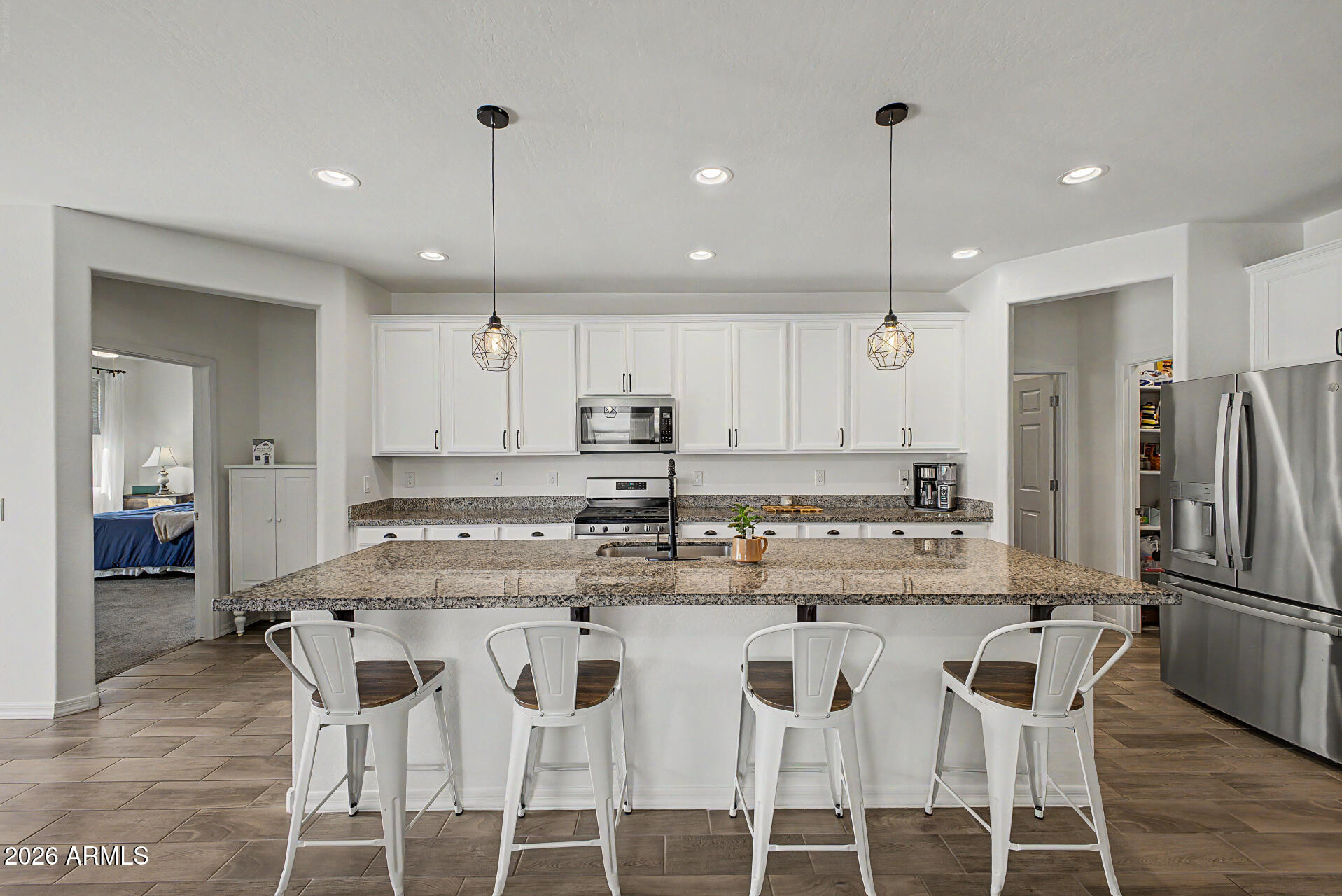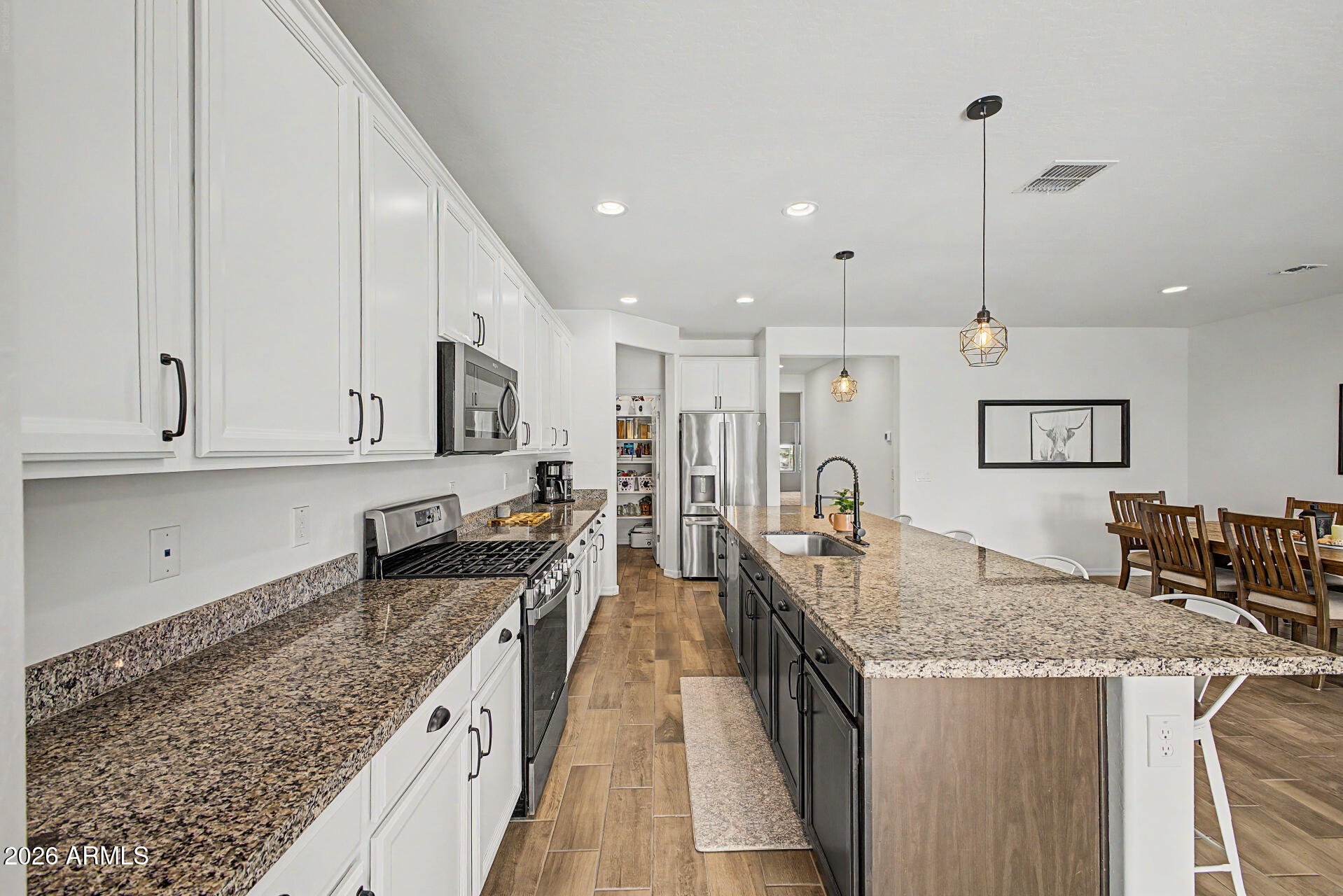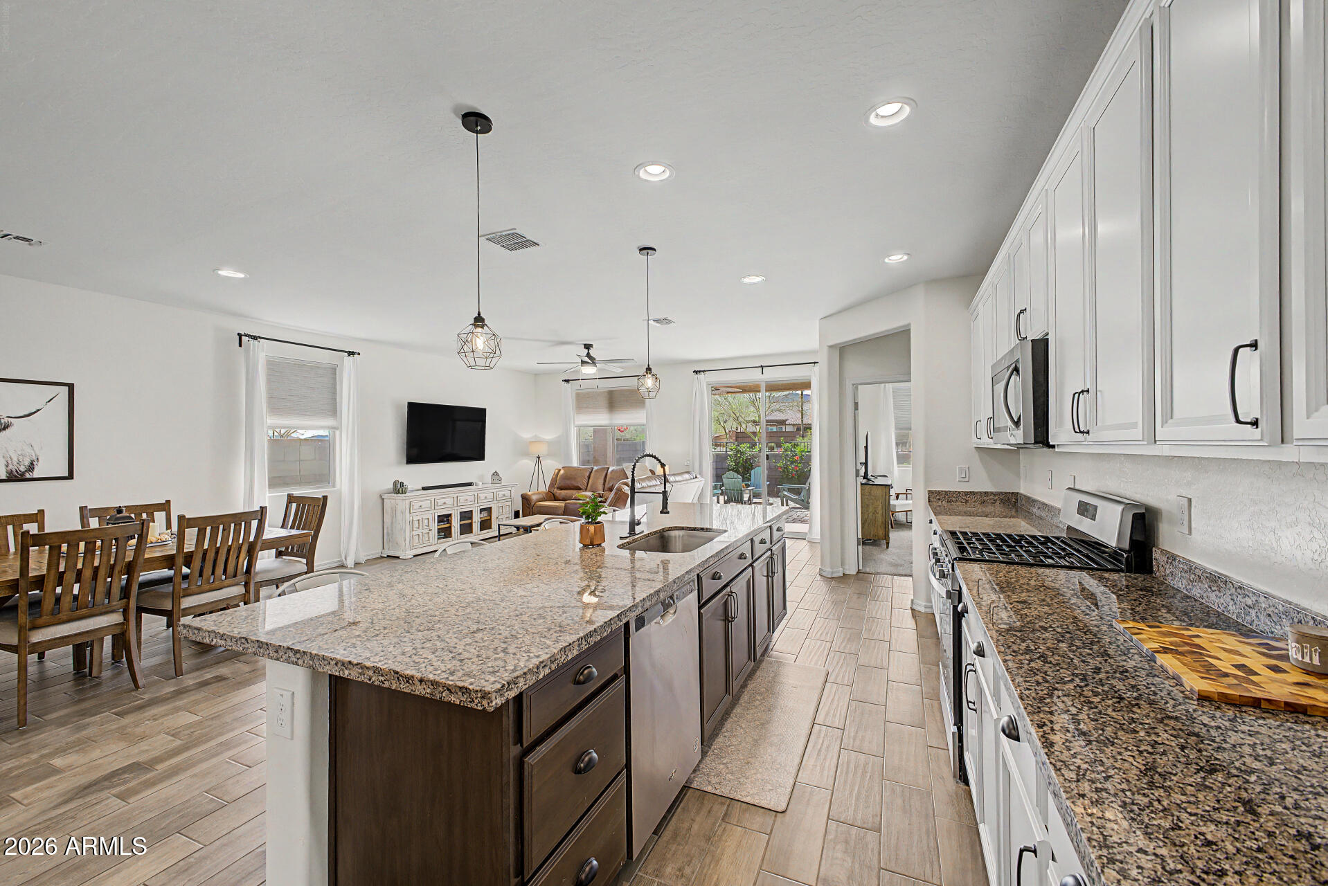 Welcome to this lovingly maintained 3-bedroom home perfectly situated on a desirable corner lot! Inside, the large open floor plan, bathed in natural light, is designed with effortless entertaining in mind. Neutral paint creates a warm, inviting ambiance, complemented by wood-look tile flooring plus ceiling fans. Fabulous kitchen is a cook's delight, equipped with plenty of cabinets, recessed/pendant lighting, stainless steel appliances, a walk-in pantry, granite counters, and a prep island with a breakfast bar. Immaculate primary bedroom offers plush carpet, an ensuite, and a walk-in closet. Flexible den adds valuable versatility to suit your lifestyle. Tranquility awaits in the spacious backyard with a covered patio and paver seating area. Don't let this amazing gem slip by!