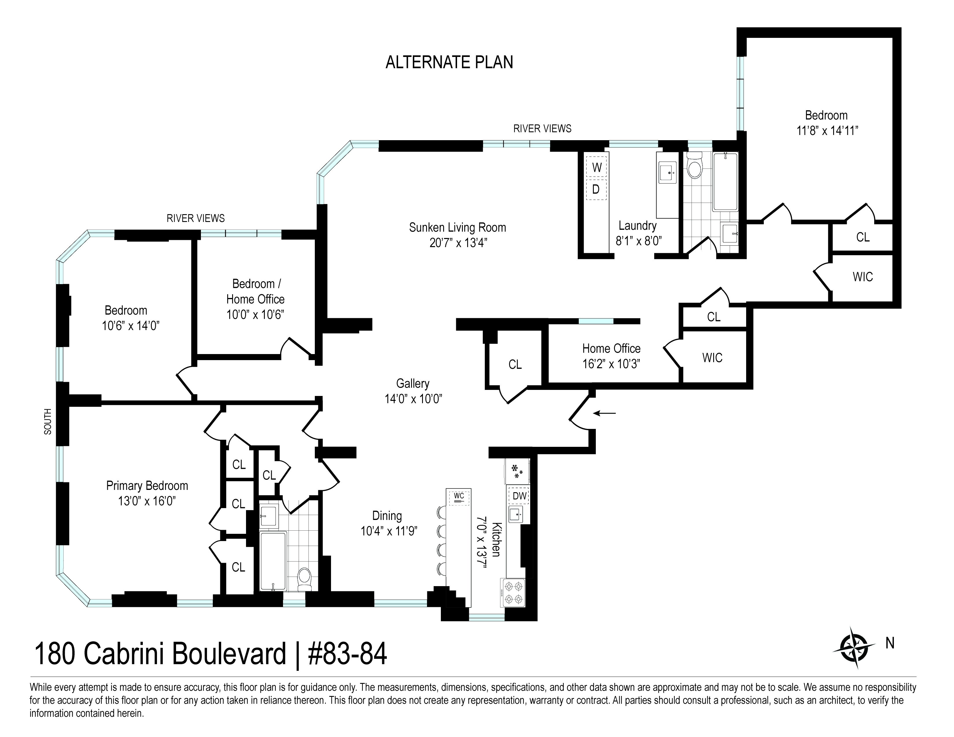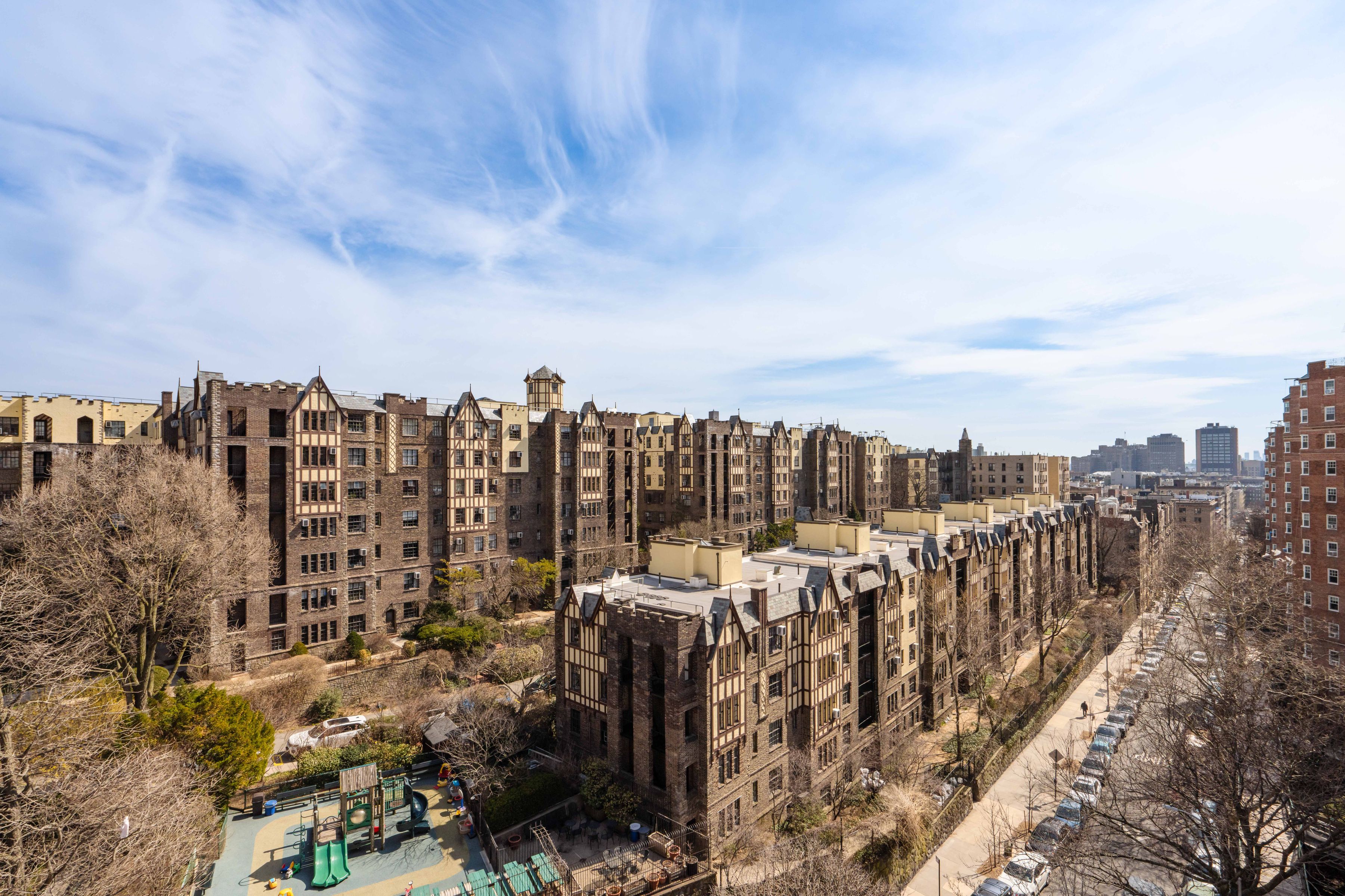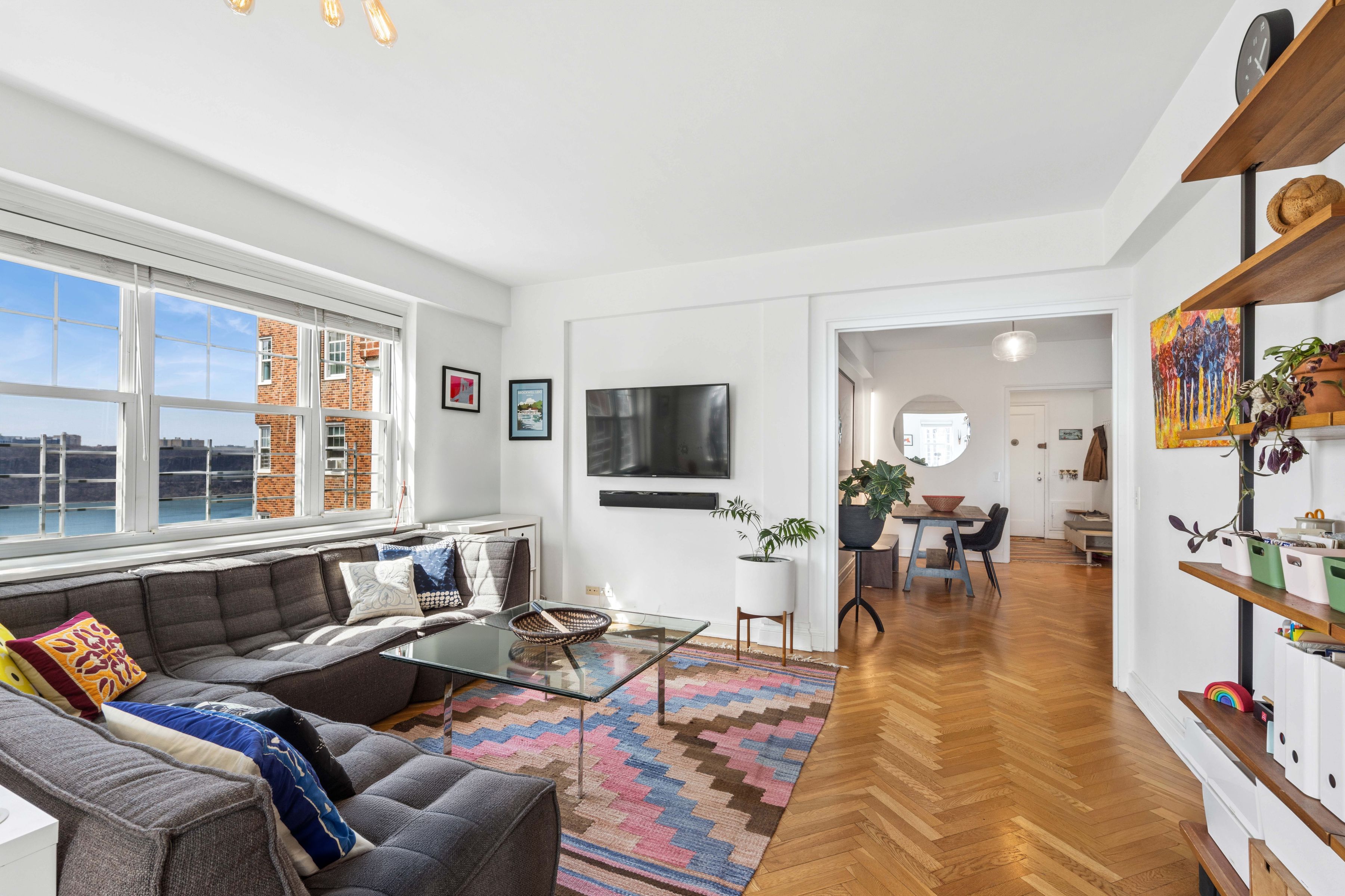 A rare and compelling opportunity to create a truly expansive residence, apartments 83 & 84 offer the potential for a gracious four bedroom home with a dedicated laundry room (subject to board approval). NOTE: THIS IS TWO APARTMENTS THAT NEED TO BE COMBINED. Spanning a generous footprint with multiple exposures, this unique home is bathed in natural light throughout the day, with sweeping open sky views that stretch from the Hudson River and Palisades all the way to Midtown. The reimagined floor plan introduces a dramatic central living and dining space with a beautifully proportioned sunken living room with six windows facing the Hudson River and GW Bridge. A windowed kitchen—thoughtfully updated with premium appliances including a Liebherr refrigerator, vented Viking range, brand-new Miele dishwasher, wine storage, soft-close cabinetry, and extra-deep quartz counters —can be further expanded to create a true chef’s kitchen at the heart of the home. Two separate king-size bedroom wings, positioned at opposite ends of the residence, offer exceptional privacy and versatility, both with panoramic views and convenient access to nearby bathrooms, including one that has been newly renovated with timeless subway tiles and high-end, vintage-style hardware and fixtures. A third bedroom also enjoys stunning vistas over the Hudson, while the fourth bedroom is well-suited as a nursery, guest room, or home office. The chef’s kitchen in 83, with top-of-the-line stainless appliances, custom backsplash, farmhouse sink, and pass-thru breakfast bar, can be transformed into a dedicated laundry room, offering a level of convenience rarely found in prewar cooperatives. Additional features include herringbone hardwood floors, abundant closet space, skim-coated walls, updated light fixtures, ceiling fans with dimmers, new windows, low-cost electric and internet, and generous storage throughout. Set within the highly sought-after Castle Village cooperative, residents enjoy a full-service lifestyle with P/T doorman (7AM-1AM), 24-hour security, a resident super, on-site management, and direct garage access. Amenities include a fitness center with river views, a children’s playroom, a community room, storage, bike storage, and 7.5 acres of beautifully landscaped grounds with gardens, a playground, seating areas, and roof decks on all buildings. One dog per unit permitted. Moments from neighborhood cafés, shops, the Hudson River Greenway, Fort Tryon Park & the Met Cloisters, with the A express train providing a swift commute to Midtown. A truly special opportunity to combine a sprawling residence in one of Upper Manhattan’s most beloved communities. There is an ongoing assessment of $107/month and a special assessment of $471/month ending December 2029 for Apt. 84, and an ongoing assessment of $100/month and a special assessment of $440/month ending December 2029 for Apt. 83. **All plans and combinations are subject to board approval. The combined floor plan is for marketing purposes only and is illustrative of a potential layout.**