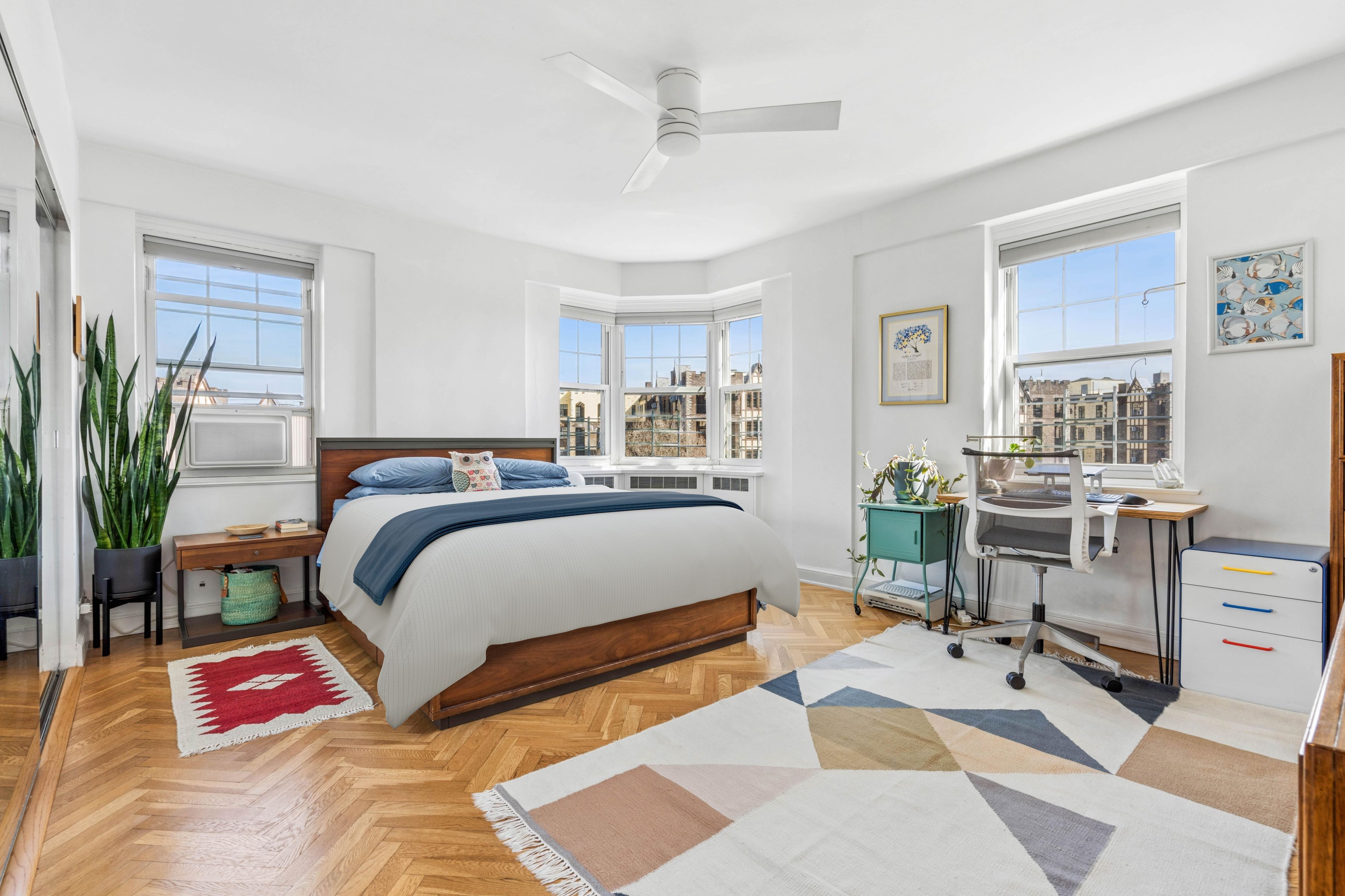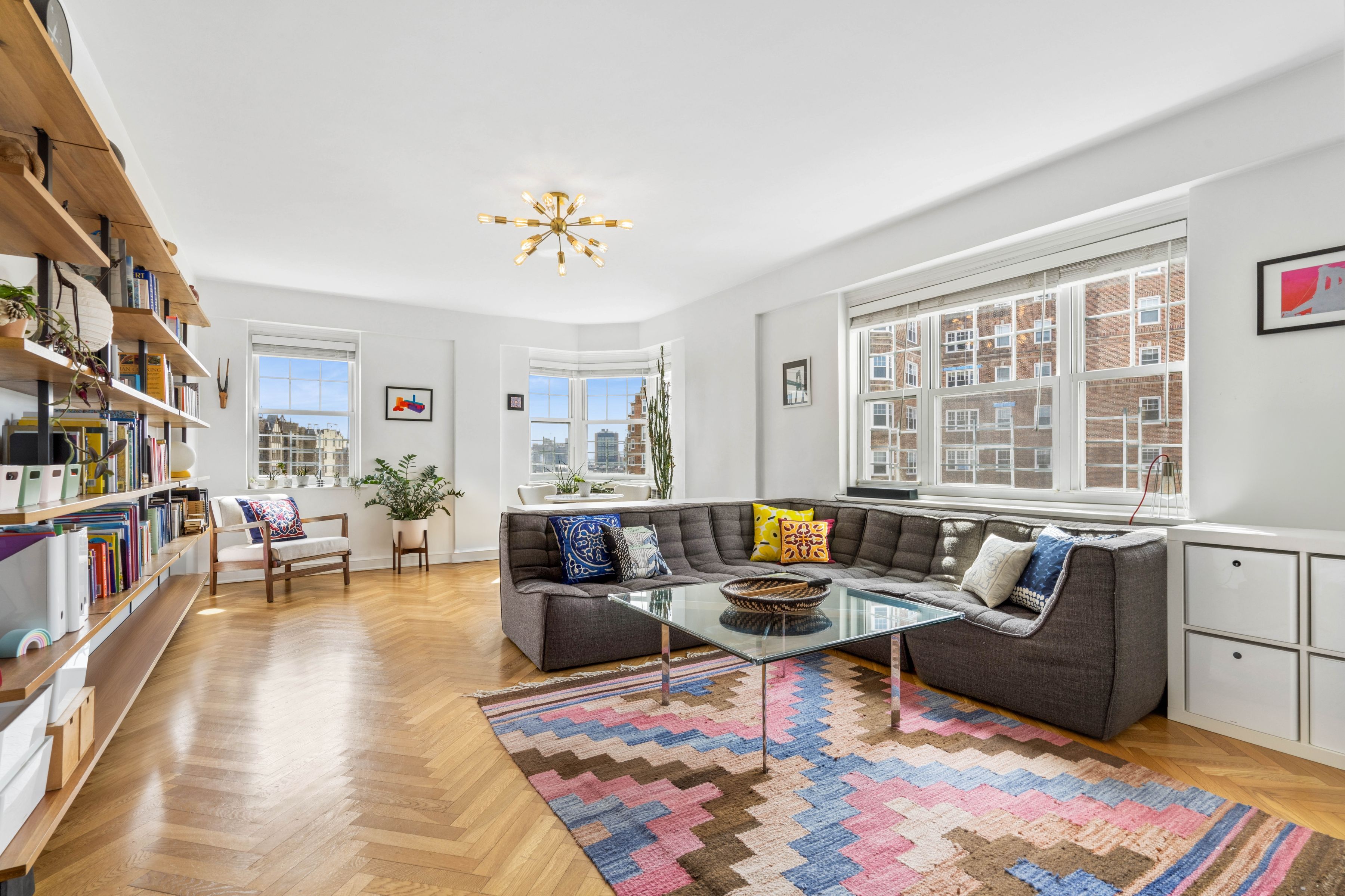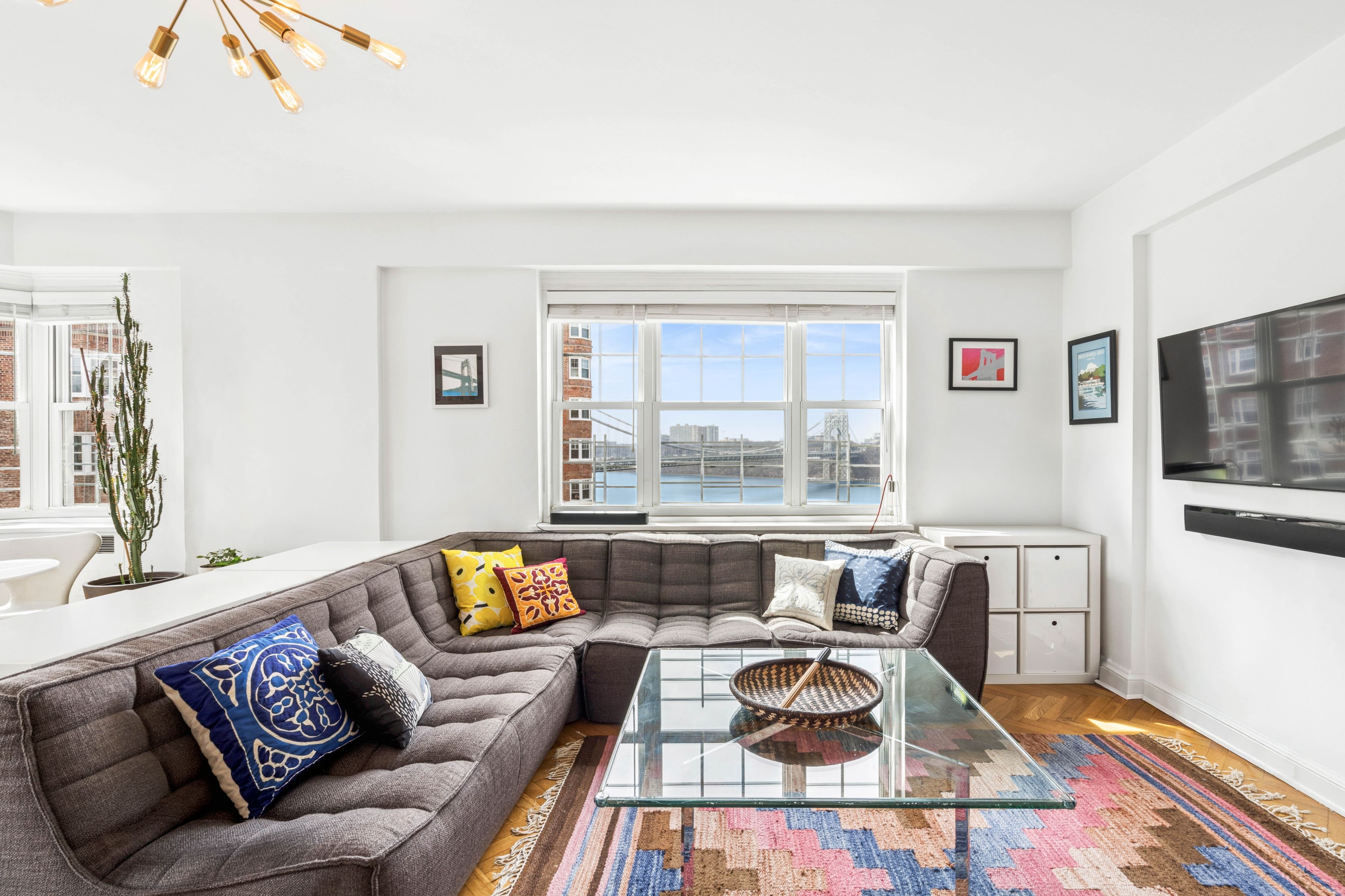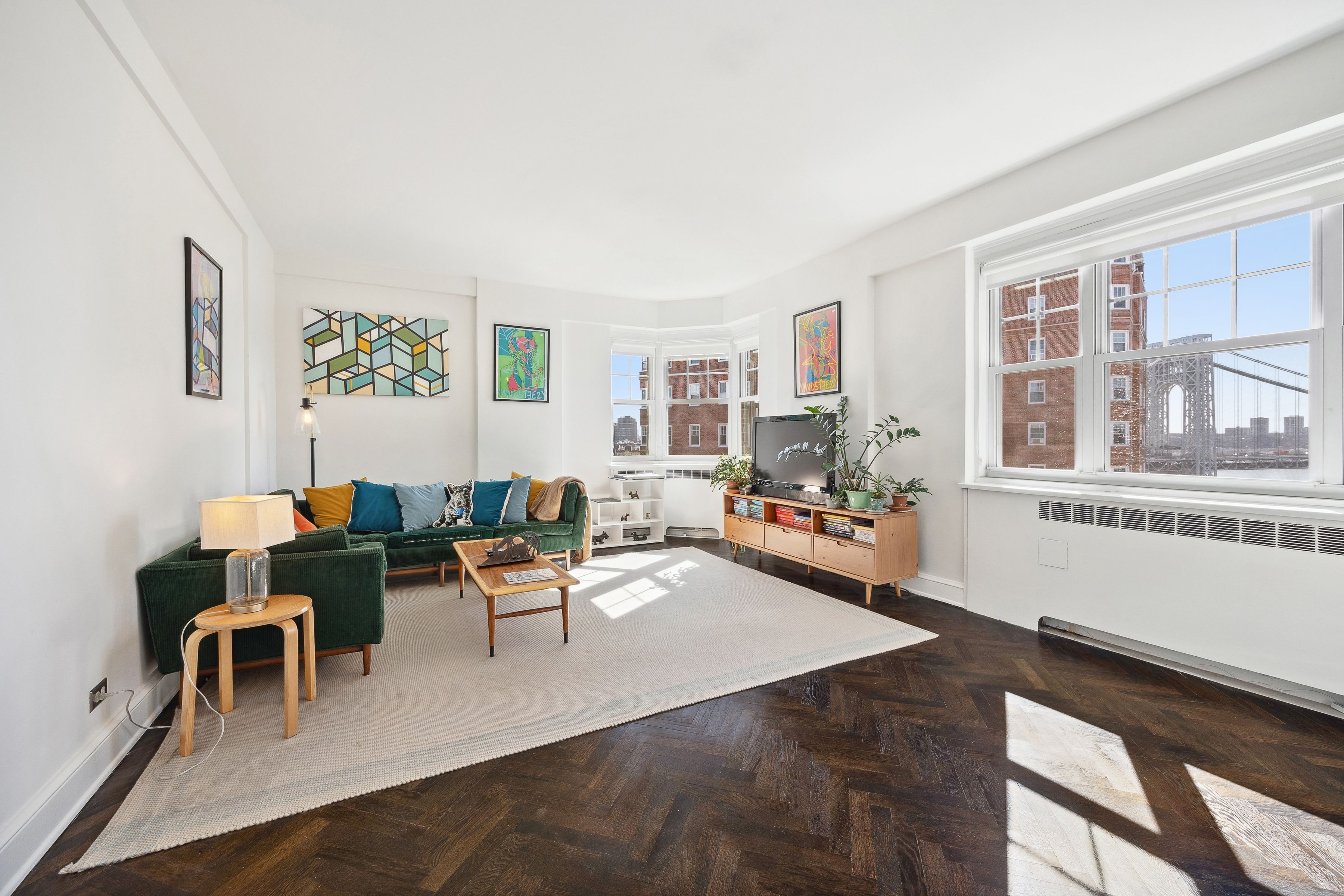 A rare and compelling opportunity to create a truly expansive residence, apartments 83 & 84 offer the potential for a gracious four bedroom home with a dedicated laundry room (subject to board approval). NOTE: THIS IS TWO APARTMENTS THAT NEED TO BE COMBINED. Spanning a generous footprint with multiple exposures, this unique home is bathed in natural light throughout the day, with sweeping open sky views that stretch from the Hudson River and Palisades all the way to Midtown. The reimagined floor plan introduces a dramatic central living and dining space with a beautifully proportioned sunken living room with six windows facing the Hudson River and GW Bridge. A windowed kitchen—thoughtfully updated with premium appliances including a Liebherr refrigerator, vented Viking range, brand-new Miele dishwasher, wine storage, soft-close cabinetry, and extra-deep quartz counters —can be further expanded to create a true chef’s kitchen at the heart of the home. Two separate king-size bedroom wings, positioned at opposite ends of the residence, offer exceptional privacy and versatility, both with panoramic views and convenient access to nearby bathrooms, including one that has been newly renovated with timeless subway tiles and high-end, vintage-style hardware and fixtures. A third bedroom also enjoys stunning vistas over the Hudson, while the fourth bedroom is well-suited as a nursery, guest room, or home office. The chef’s kitchen in 83, with top-of-the-line stainless appliances, custom backsplash, farmhouse sink, and pass-thru breakfast bar, can be transformed into a dedicated laundry room, offering a level of convenience rarely found in prewar cooperatives. Additional features include herringbone hardwood floors, abundant closet space, skim-coated walls, updated light fixtures, ceiling fans with dimmers, new windows, low-cost electric and internet, and generous storage throughout. Set within the highly sought-after Castle Village cooperative, residents enjoy a full-service lifestyle with P/T doorman (7AM-1AM), 24-hour security, a resident super, on-site management, and direct garage access. Amenities include a fitness center with river views, a children’s playroom, a community room, storage, bike storage, and 7.5 acres of beautifully landscaped grounds with gardens, a playground, seating areas, and roof decks on all buildings. One dog per unit permitted. Moments from neighborhood cafés, shops, the Hudson River Greenway, Fort Tryon Park & the Met Cloisters, with the A express train providing a swift commute to Midtown. A truly special opportunity to combine a sprawling residence in one of Upper Manhattan’s most beloved communities. There is an ongoing assessment of $107/month and a special assessment of $471/month ending December 2029 for Apt. 84, and an ongoing assessment of $100/month and a special assessment of $440/month ending December 2029 for Apt. 83. **All plans and combinations are subject to board approval. The combined floor plan is for marketing purposes only and is illustrative of a potential layout.**