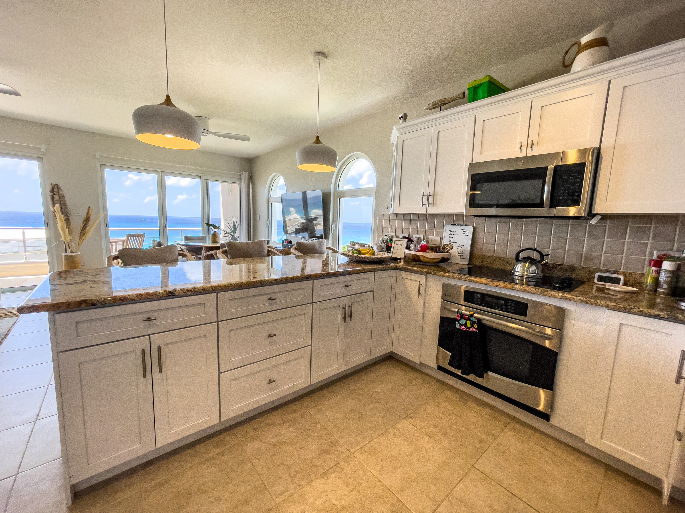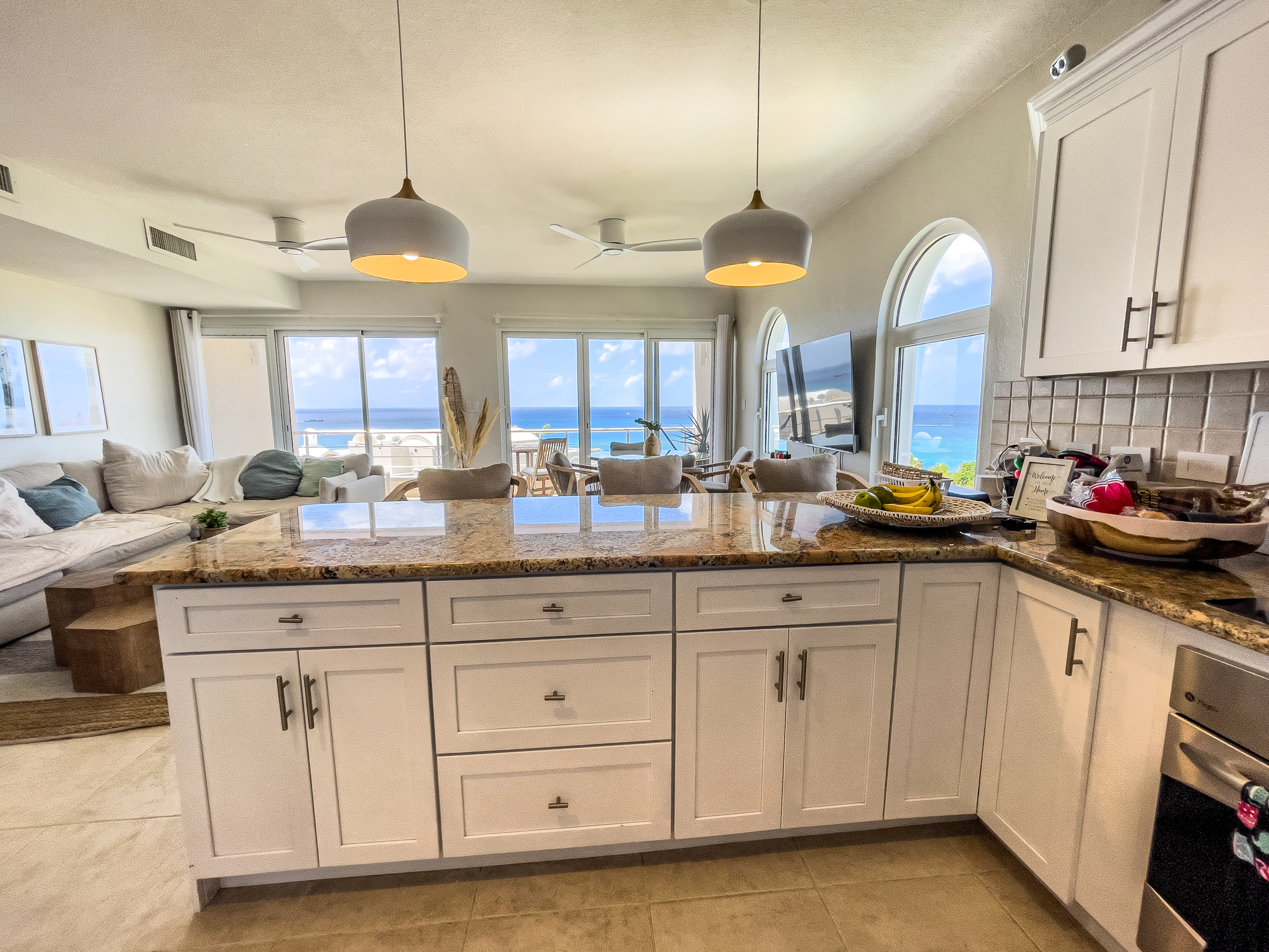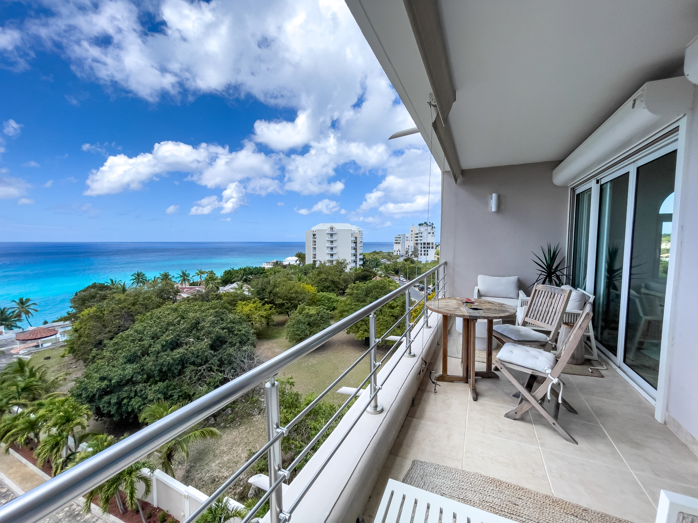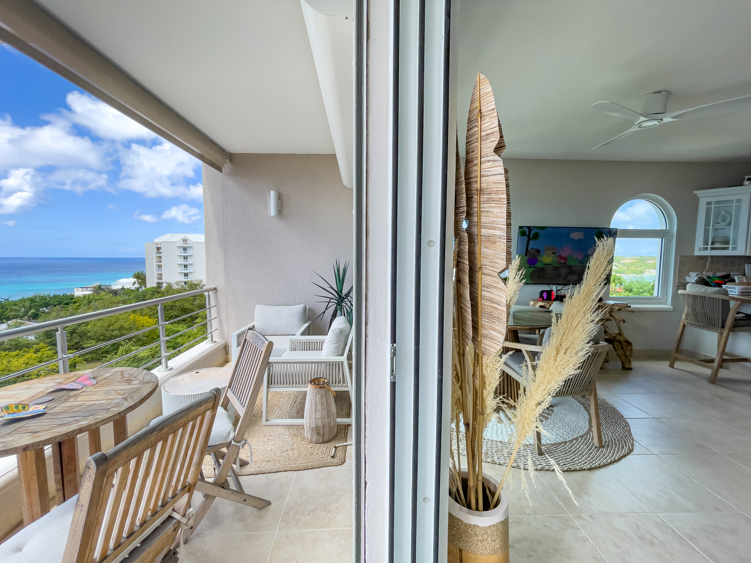 Located within the oceanfront community of Rainbow Beach Club in Cupecoy, this beautifully positioned two-bedroom, two-bathroom corner apartment offers a rare combination of natural light, privacy, and open ocean views.