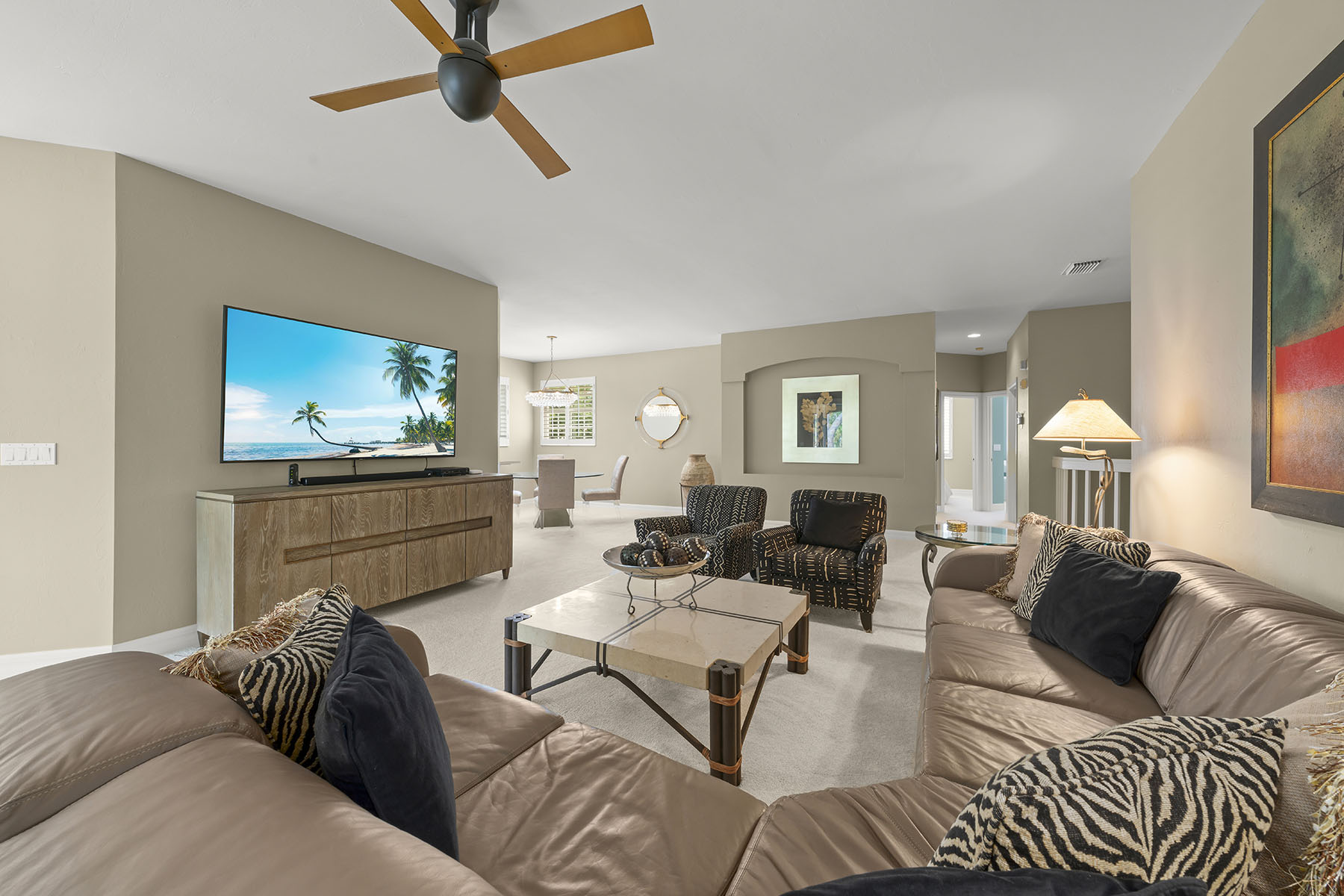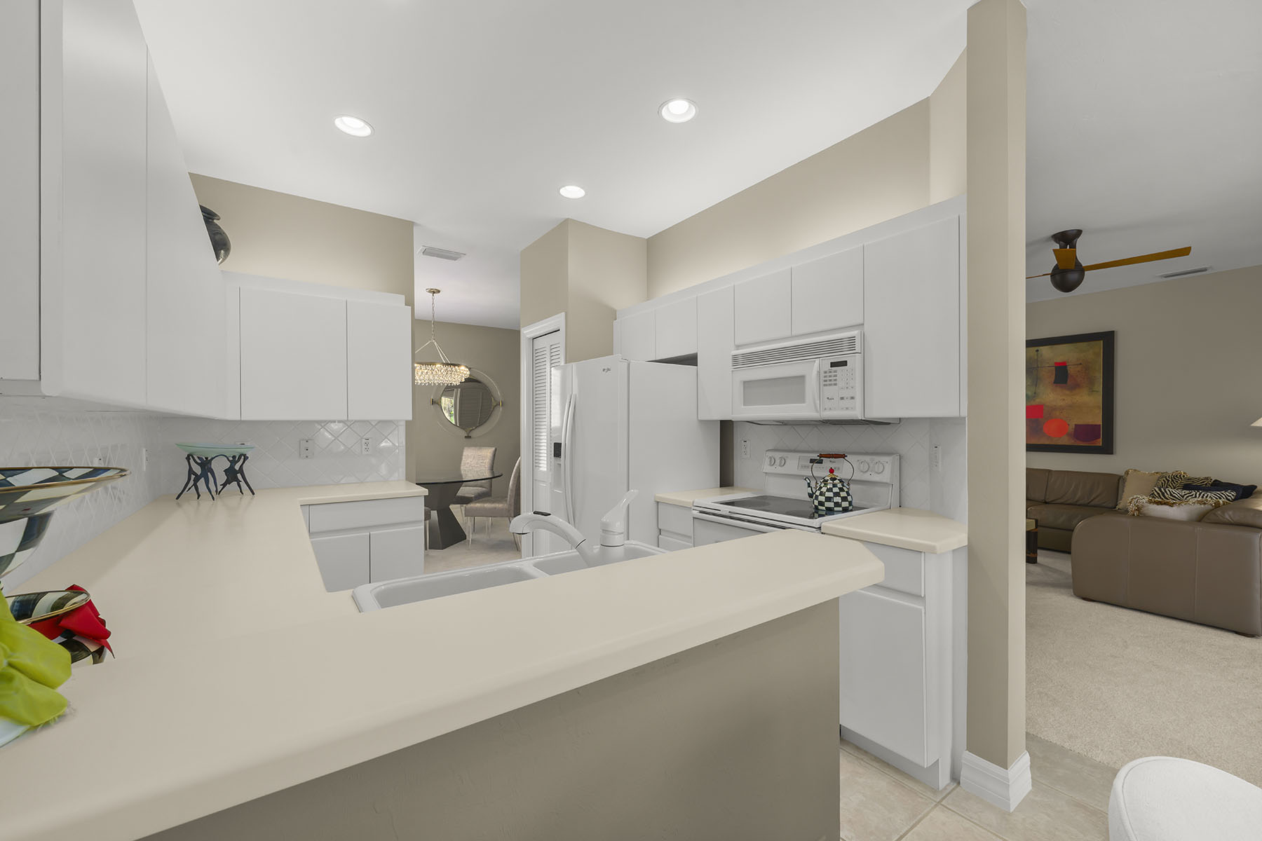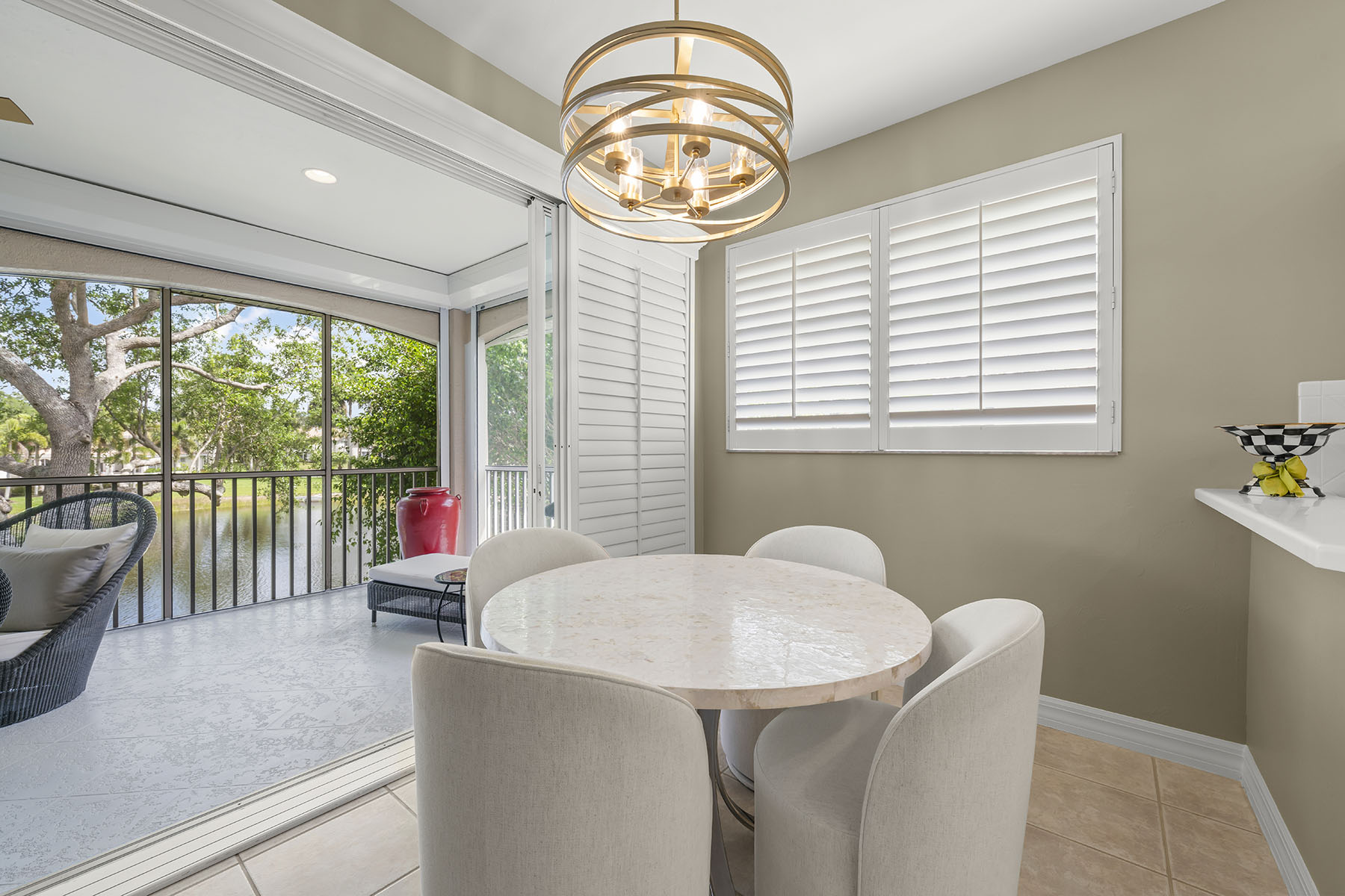 Enjoy tranquil lake views and end each day watching the water reflect the Florida sky from your private screened lanai, perfectly positioned with desirable southeast exposure to capture beautiful sunrises. Beautifully positioned as an end-unit residence in Southbridge at Pelican Landing, this home captures a rare combination of long lake vistas, a charming water feature and direct sightlines to the community pool, all framed by lush landscaping and a serene setting. Spanning 2,184 square feet, the residence offers three bedrooms and two baths within an open-concept floor plan designed for comfort and effortless flow. Volume ceilings enhance the main living areas, while the kitchen is ideally situated between the formal dining area and a casual breakfast nook, making everyday living and entertaining seamless. The spacious primary suite serves as a peaceful retreat, complete with lake views, dual closets and a large en-suite bath. Pelican Landing is known for its active, social lifestyle and exceptional amenities. Residents enjoy access to a private 34-acre Gulf island with sugar-sand beaches, reached by shuttle boat, along with a tennis center featuring 12 Har-Tru courts, six pickleball courts, two bocce courts, a fully equipped fitness center, a kayak and canoe park, a sailing center on Estero Bay with complimentary sailing lessons, three fishing piers and a butterfly garden. The community also offers a marina, a vibrant community center, and a full calendar of social activities. Two private country clubs with a total of three 18-hole golf courses are also located within Pelican Landing, with golf and club memberships available separately. In addition to the country clubs and golf, access to Pelican Landing's outstanding amenities is included in the annual HOA assessment, which also covers basic cable, internet and 24-hour gated security.