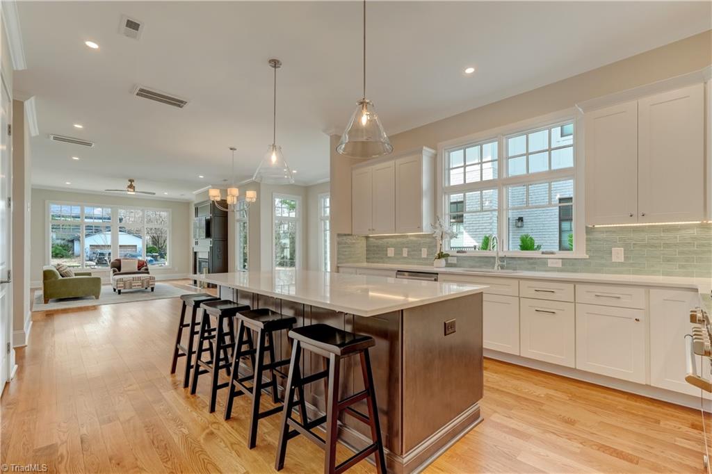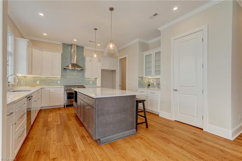 The Emory at North Elm offers refined townhome living in sought-after Irving Park. Thoughtfully designed with high-end finishes throughout, this home features an elevator for easy access to all levels. The finished basement expands the living space with a bedroom, full bath, family room with wet bar, and a versatile flex room ideal for office, gym, or storage, plus space for a wine cellar. The kitchen and baths showcase quartz countertops and premium appliances. The spacious primary suite includes a stunning walk-in closet and private balcony retreat. Additional highlights include quality windows, strong insulation, and a garage wired for an electric charger. A rare opportunity to enjoy low-maintenance living with elevated design in one of Greensboro's most established neighborhoods.