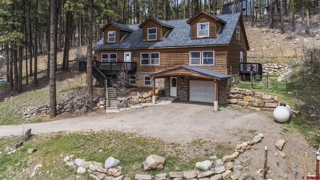 Opportunity meets potential in this 3-bedroom, 2.5-bath home in the desirable Forest Lakes neighborhood - offering flexible living space, a peaceful setting, and access to Simpatico Lake with fishing rights. With 2,472 square feet of versatile space, the home features a functional and flexible layout. Two bedrooms, including the primary suite with an ensuite bathroom, are located on the upper level, while an additional bedroom is situated in the finished basement - ideal for guests, a home office, or added privacy. A convenient half bath is located just off the kitchen for everyday use. The finished basement expands your living options with a spacious family room, full bathroom, and abundant storage. A portion of the home's total square footage includes an upper-level area that is not fully finished, offering an opportunity for future customization. Set on .625 acres with a partially fenced yard, the lot features a unique shape and topography, creating a more natural setting with selective usable space. Additional highlights include a new roof installed in 2025, radon mitigation already in place, and an attached one-car garage. Forest Lakes residents enjoy access to Simpatico Lake, including fishing rights, along with an established neighborhood conveniently located between Bayfield and Durango.