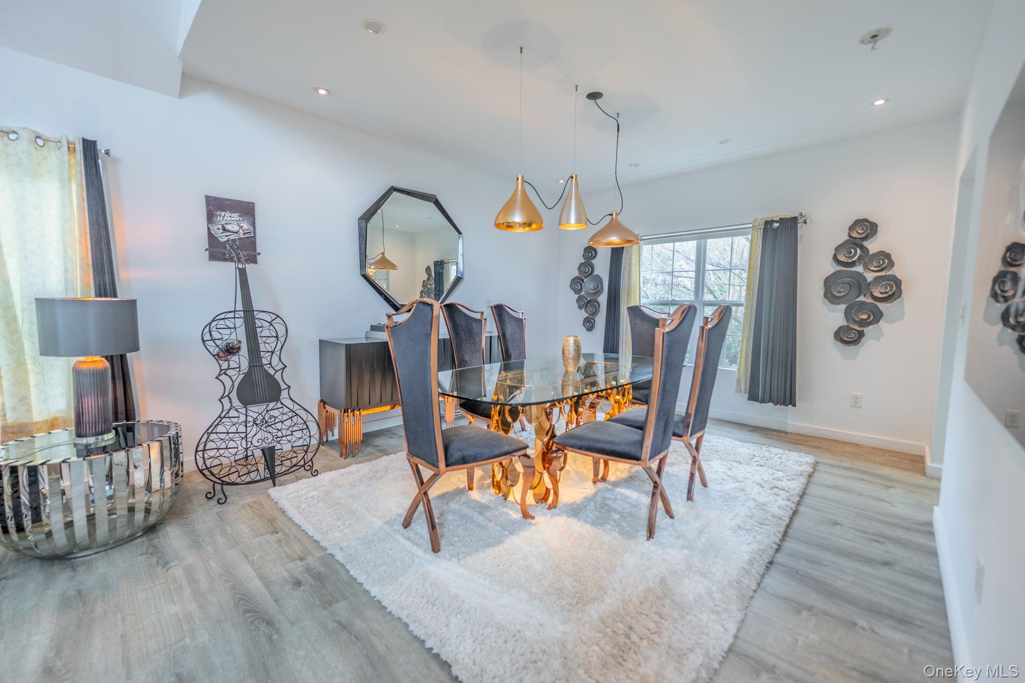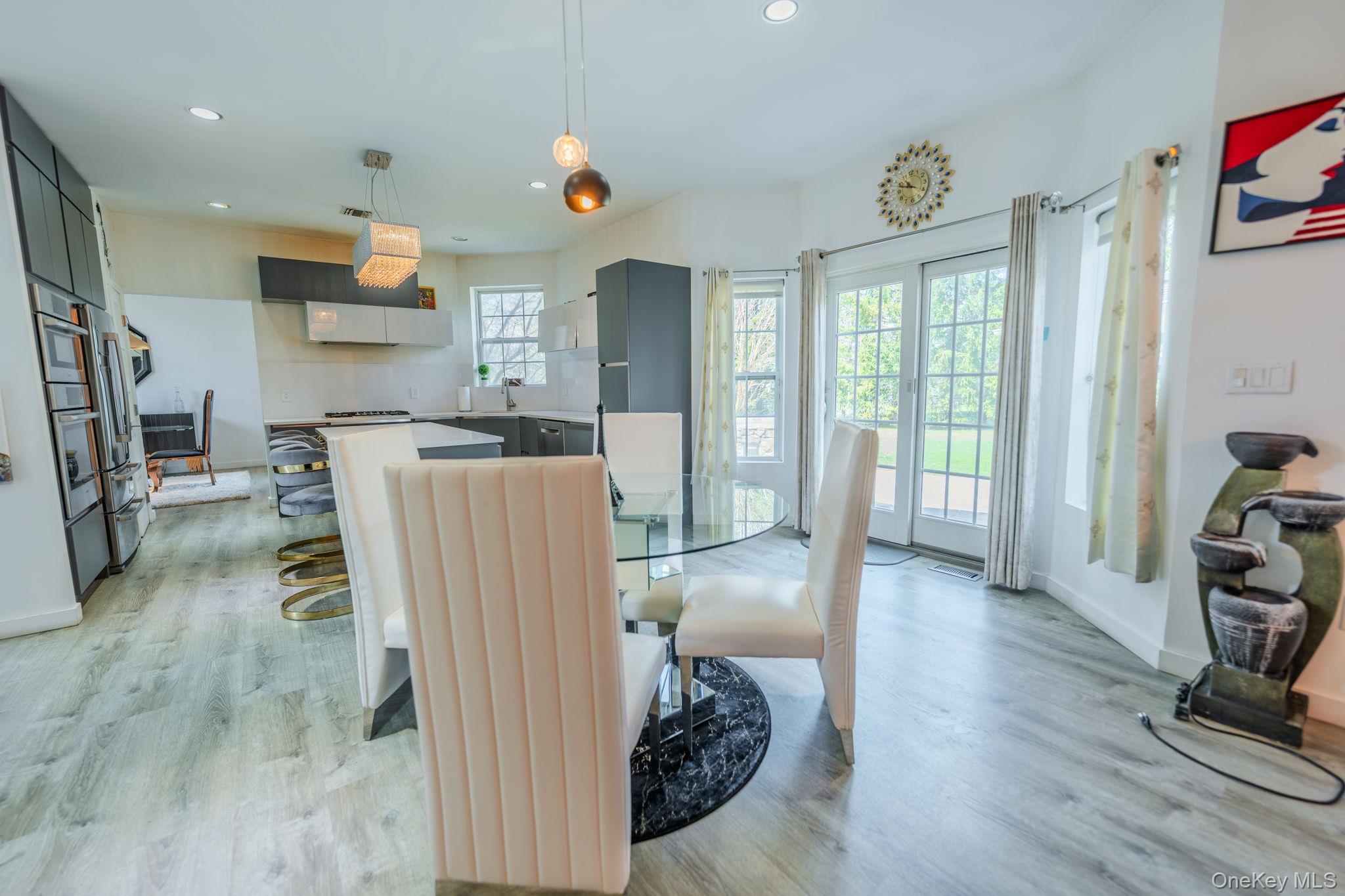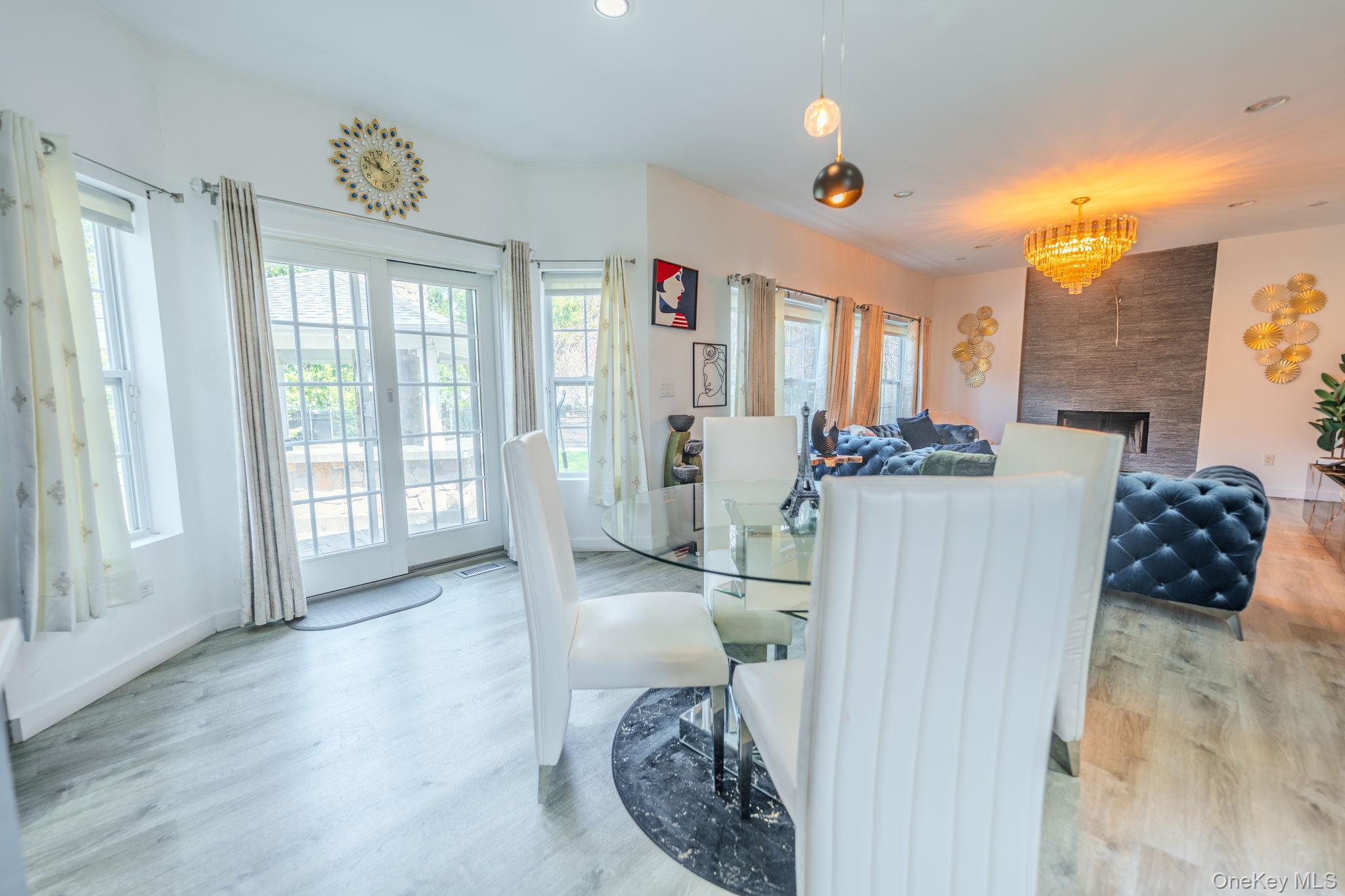 Welcome to this beautifully remodeled Post Modern home tucked away on a quiet Miller Place cul-de-sac - a perfect blend of luxury, comfort, and resort-style living. A long private driveway and paver walkway lead to a grand entry foyer accented by updated wrought-iron railings, setting the tone for the craftsmanship found throughout. The stunning chef's kitchen features a large island, premium finishes, and effortless flow into the family room, where an ultra-modern wood-burning fireplace creates a striking focal point. The main level offers exceptional versatility with a spacious living room, formal dining room, convenient laundry room, plus a first-floor bedroom and full bath - ideal for guests or multi-generational living. Upstairs, the generous primary suite feels like a private retreat, complete with tray ceiling, two walk-in closets, and a beautifully updated ensuite bath. Three additional spacious bedrooms and a stylish guest bath complete the second floor. The finished basement expands your lifestyle options with an exercise room, game/movie room, office, wet bar, utilities, storage, and walk-out access. Step outside to your country-club backyard, where sliders open to an outdoor kitchen, a sparkling inground pool, and a covered pergola perfect for shaded lounging or al-fresco dining. Whether hosting gatherings or enjoying a quiet staycation, this outdoor space delivers year-round enjoyment. Additional highlights include a 2-car garage, central air conditioning, and owned solar panels for energy efficiency and long-term savings. A true entertainer's delight - modern, spacious, and privately set in one of Miller Place's most desirable cul-de-sacs!