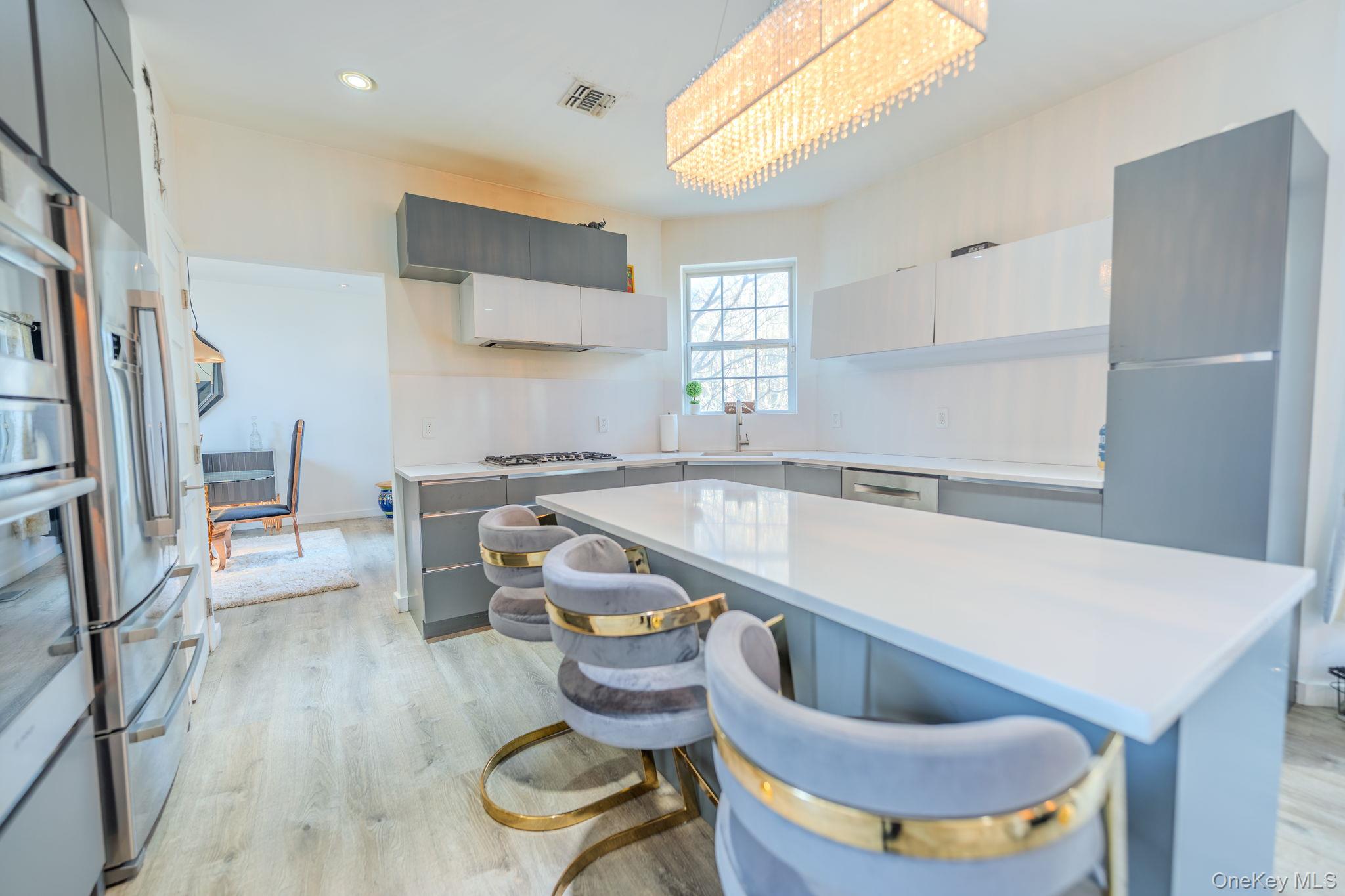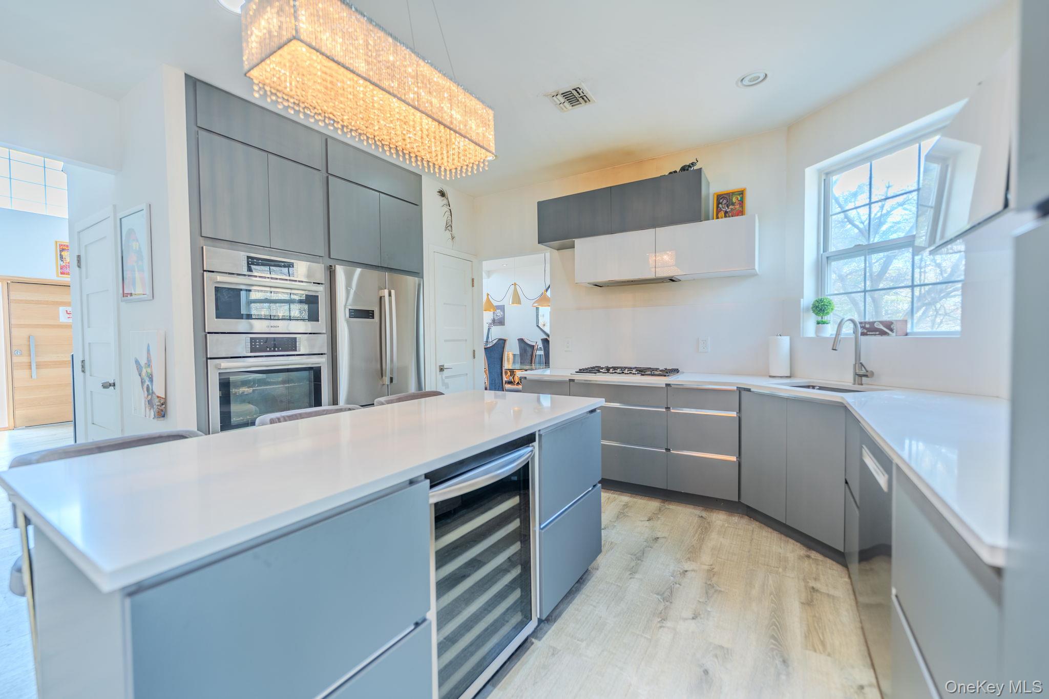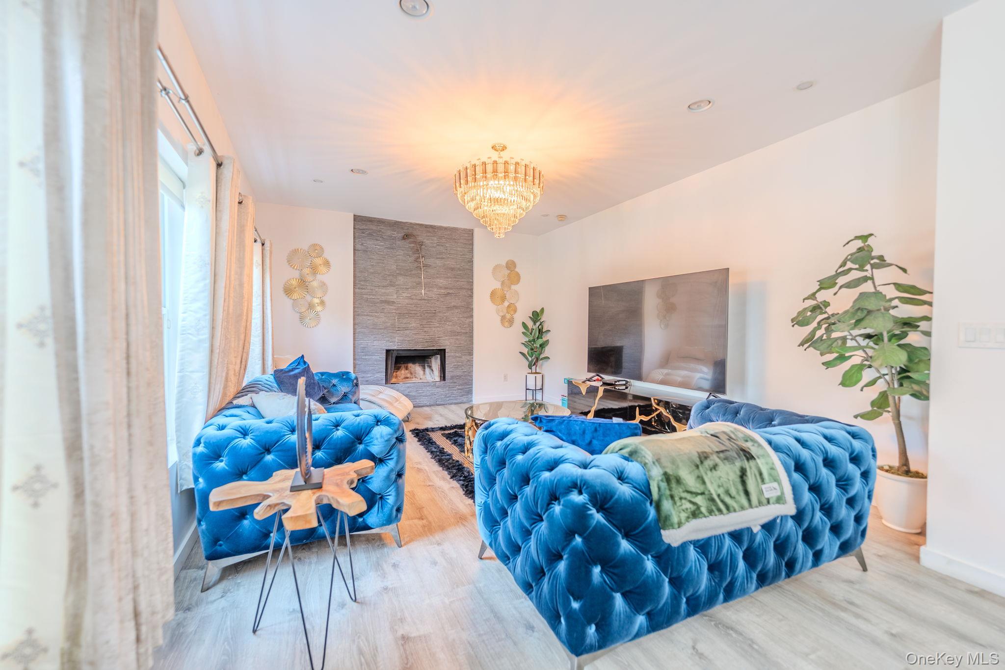 Welcome to this beautifully remodeled Post Modern home tucked away on a quiet Miller Place cul-de-sac - a perfect blend of luxury, comfort, and resort-style living. A long private driveway and paver walkway lead to a grand entry foyer accented by updated wrought-iron railings, setting the tone for the craftsmanship found throughout. The stunning chef's kitchen features a large island, premium finishes, and effortless flow into the family room, where an ultra-modern wood-burning fireplace creates a striking focal point. The main level offers exceptional versatility with a spacious living room, formal dining room, convenient laundry room, plus a first-floor bedroom and full bath - ideal for guests or multi-generational living. Upstairs, the generous primary suite feels like a private retreat, complete with tray ceiling, two walk-in closets, and a beautifully updated ensuite bath. Three additional spacious bedrooms and a stylish guest bath complete the second floor. The finished basement expands your lifestyle options with an exercise room, game/movie room, office, wet bar, utilities, storage, and walk-out access. Step outside to your country-club backyard, where sliders open to an outdoor kitchen, a sparkling inground pool, and a covered pergola perfect for shaded lounging or al-fresco dining. Whether hosting gatherings or enjoying a quiet staycation, this outdoor space delivers year-round enjoyment. Additional highlights include a 2-car garage, central air conditioning, and owned solar panels for energy efficiency and long-term savings. A true entertainer's delight - modern, spacious, and privately set in one of Miller Place's most desirable cul-de-sacs!