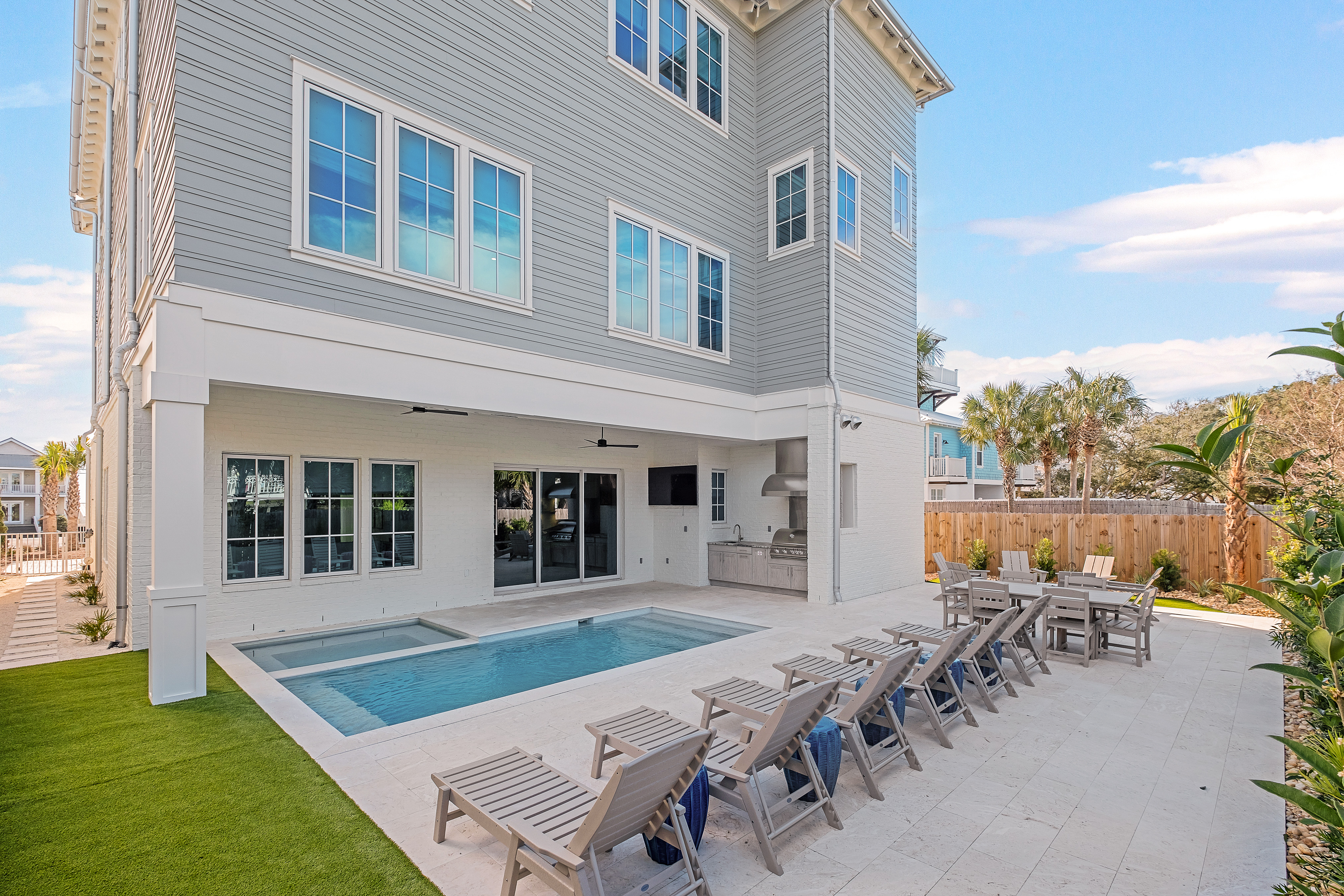 Welcome to one of the most extraordinary legacy properties along 30A -- a striking 9-bedroom, 9.5-bath luxury beach house that offers over 7,100 square feet of refined living space, thoughtfully crafted for both entertaining and retreat. Located in coveted Old Seacrest and directly across from the emerald waters of the Gulf, this newly built (2022) estate captures everything that makes life on 30A unforgettable. From the moment you enter, you're greeted by a grand foyer that opens to an expansive recreation room--complete with wet bar, lounge seating, and direct walk-out access to a private backyard oasis. The outdoor setting is nothing short of resort-worthy: an oversized heated pool, integrated hot tub open-air dining patio, fire pit, and a sun-soaked terrace framed by coastal landscaping. Privacy fencing and a lush backdrop ensure your moments of relaxation stay yours alone. The second level is designed around entertaining with a jaw-dropping 41'x30' great room vaulted ceilings, walls of glass, and seamless flow to the chef's kitchen featuring a 16'x18' island-centered design, top-tier appliances, gas cooking, and dual refrigeration. Large porches off both the front and rear frame elevated Gulf views and provide the perfect perch for sunset cocktails or morning coffee. Nine spacious bedrooms, including two on the first floor and five on the third, offer accommodations for large families or groups of up to 30 guests. A dedicated bunk room, multiple ensuites, and a luxury primary suite with walk-in closet and spa bath provide elevated comfort throughout. Additional highlights include a private elevator servicing all three levels, hardwood and tile flooring throughout, two-car garage + five-car driveway parking, metal roof, cement board siding, and low-maintenance exterior finishes. Tankless gas water heaters, high-efficiency HVAC systems, and double-pane windows Beach access is just steps away directly across 30A, and the home's positioning on the north side of the road offers enhanced privacy with panoramic Gulf views from multiple vantage points. Whether you're seeking a luxury rental opportunity or a multi-generational retreat, 8055 E County Highway 30A is a rare chance to own a turn-key masterpiece in one of the most desired beach destinations in the country.