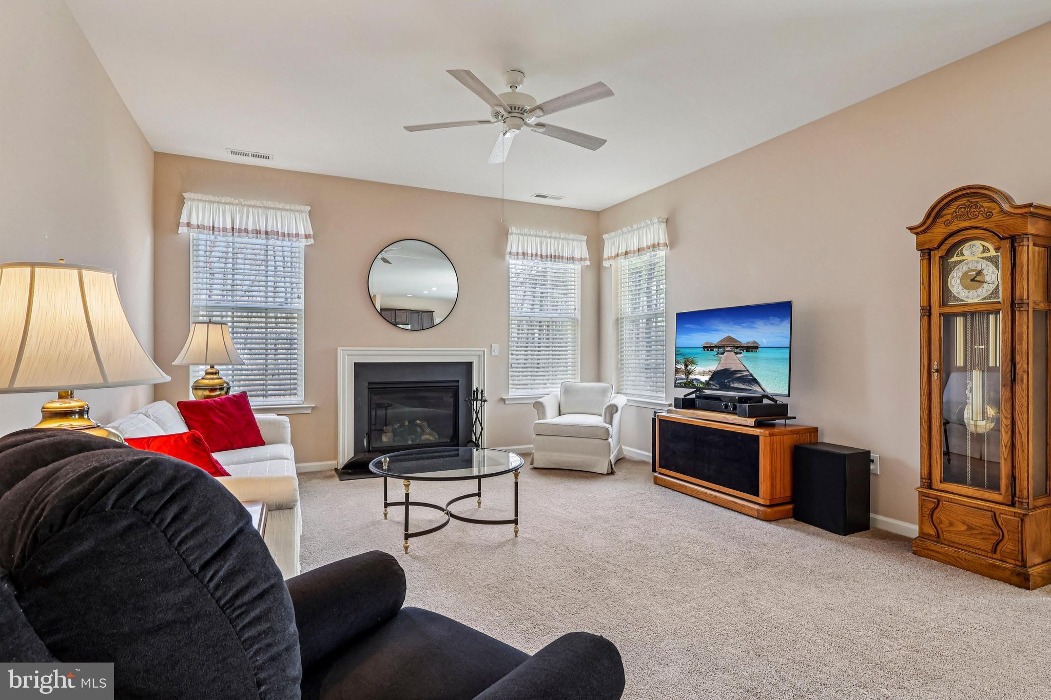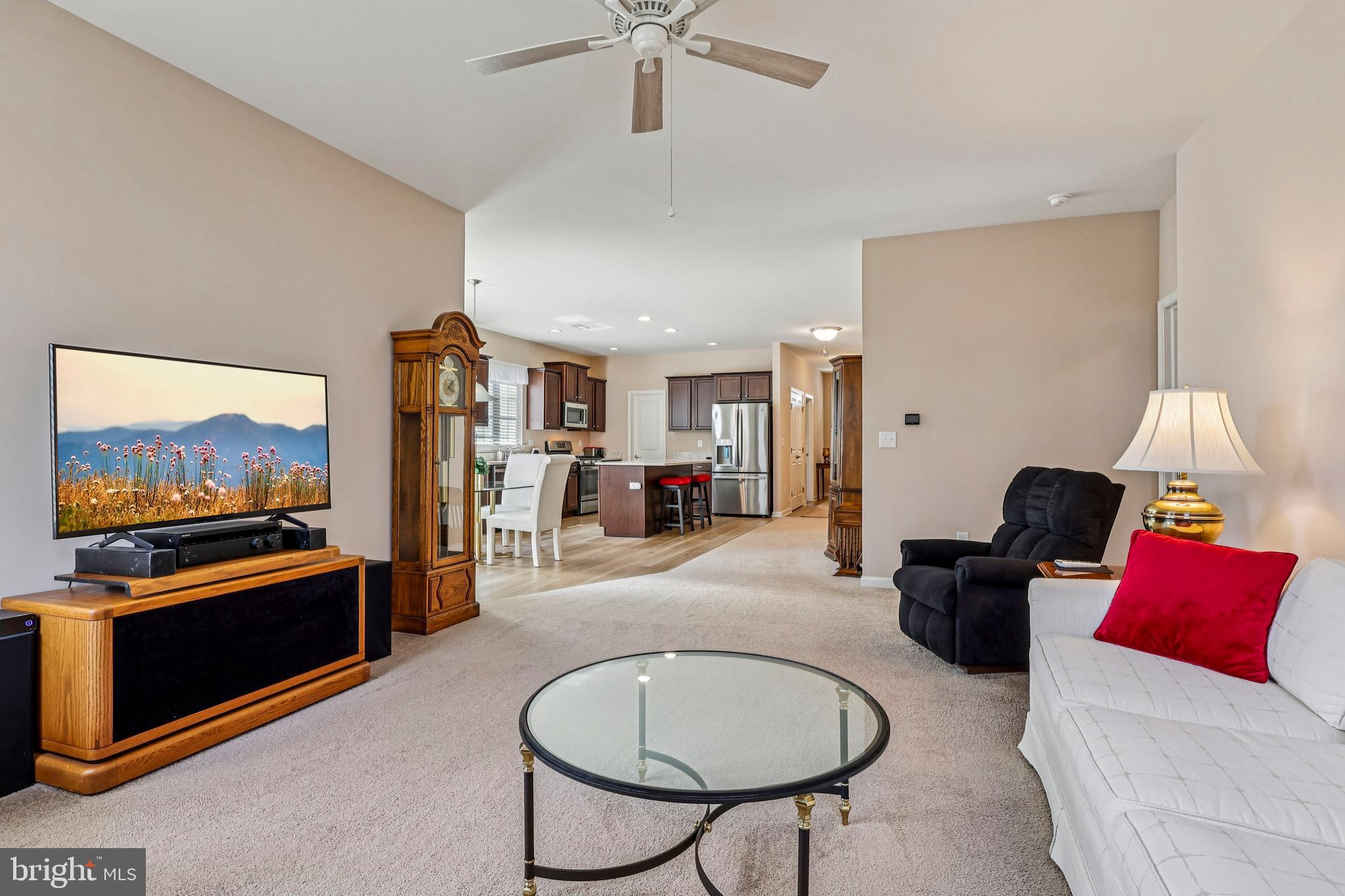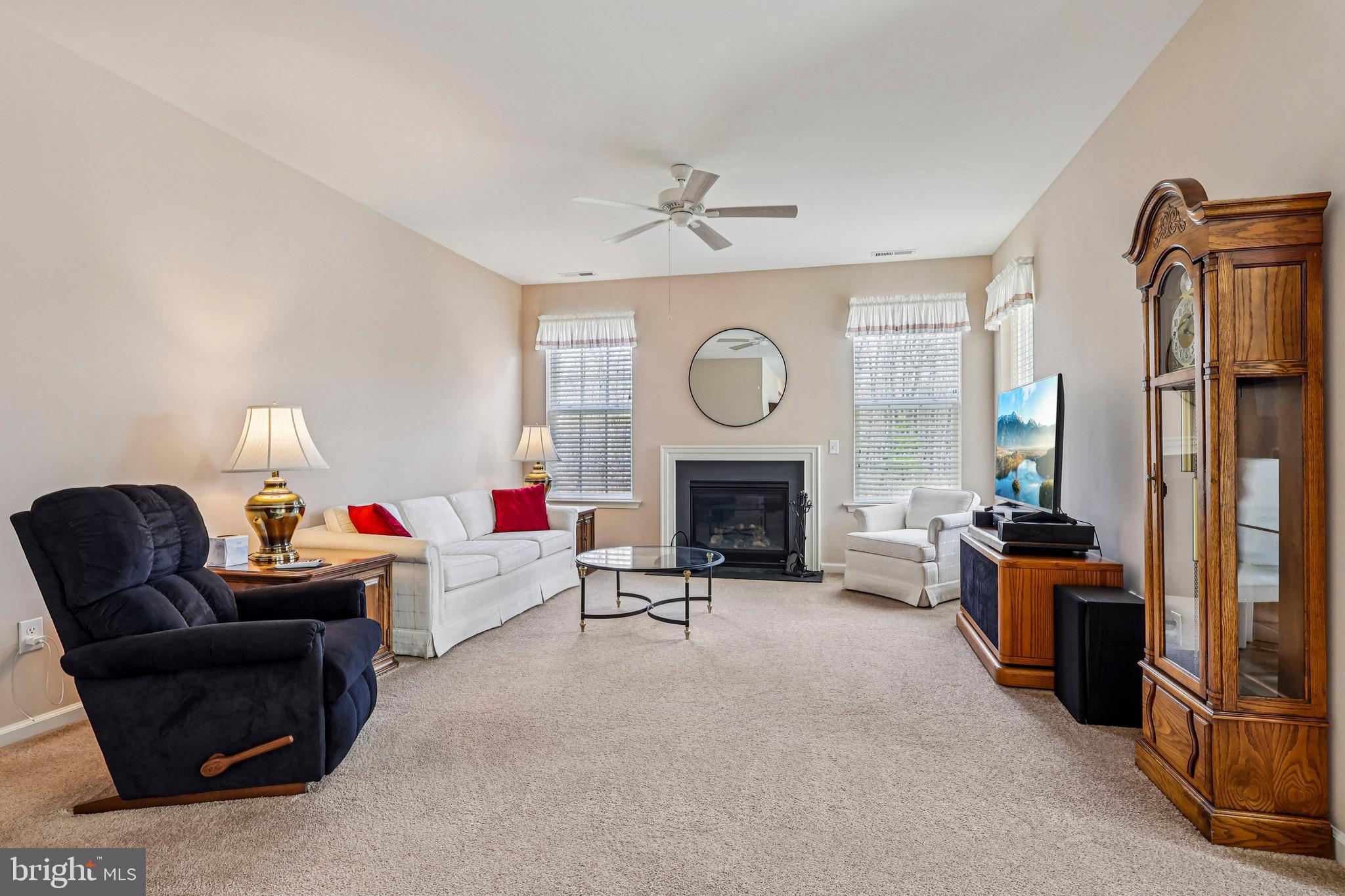 Welcome home to this beautifully maintained, just 4-year-old rancher located in the highly sought-after 55+ community of Whitehall Gardens! Offering 3 bedrooms, 2 full bathrooms, and 1,879 square feet of thoughtfully designed living space, this home blends comfort, style, and convenience. From the moment you arrive, you'll be impressed by the charming curb appeal, featuring vinyl and stone siding, a 2-car driveway, and a welcoming covered front porch - perfect for enjoying your morning coffee. Step inside to a bright foyer with a double-door coat closet. To the right, you'll find the versatile third bedroom, currently used as a home office, complete with carpeting, a ceiling fan, and a spacious step-in closet. Continue into the heart of the home - an open-concept kitchen and family room designed for both everyday living and entertaining. The stunning eat-in kitchen boasts upgraded LVT flooring, a large center island with seating, granite countertops, stainless steel appliances, ample cabinetry, and a generous walk-in pantry. A sliding glass door leads to a covered concrete patio, ideal for relaxing or hosting guests. The cozy family room features plush carpeting, a ceiling fan, and a beautiful gas fireplace. Retreat to the spacious primary suite, offering a walk-in closet and a private en-suite bathroom with double sinks, abundant storage, upgraded flooring, and a glass-enclosed shower. The second bedroom is generously sized with a large closet, ceiling fan, and easy access to the second full bathroom, which includes a tub/shower combination and linen closet. Additional highlights include a convenient laundry/utility room with washer, dryer, built-in shelving, and direct access to the spotless 2-car garage. Residents of Whitehall Gardens enjoy a vibrant lifestyle with exceptional amenities, including a clubhouse with a library, billiards room, fitness center, and multi-purpose spaces. Outdoor features include scenic walking paths, a pond, bocce ball and pickleball courts, horseshoe pits, and a putting green. As a bonus, there are still 18 months remaining on the tax abatement. Don't miss your chance to make this exceptional home yours - schedule your private showing today!
