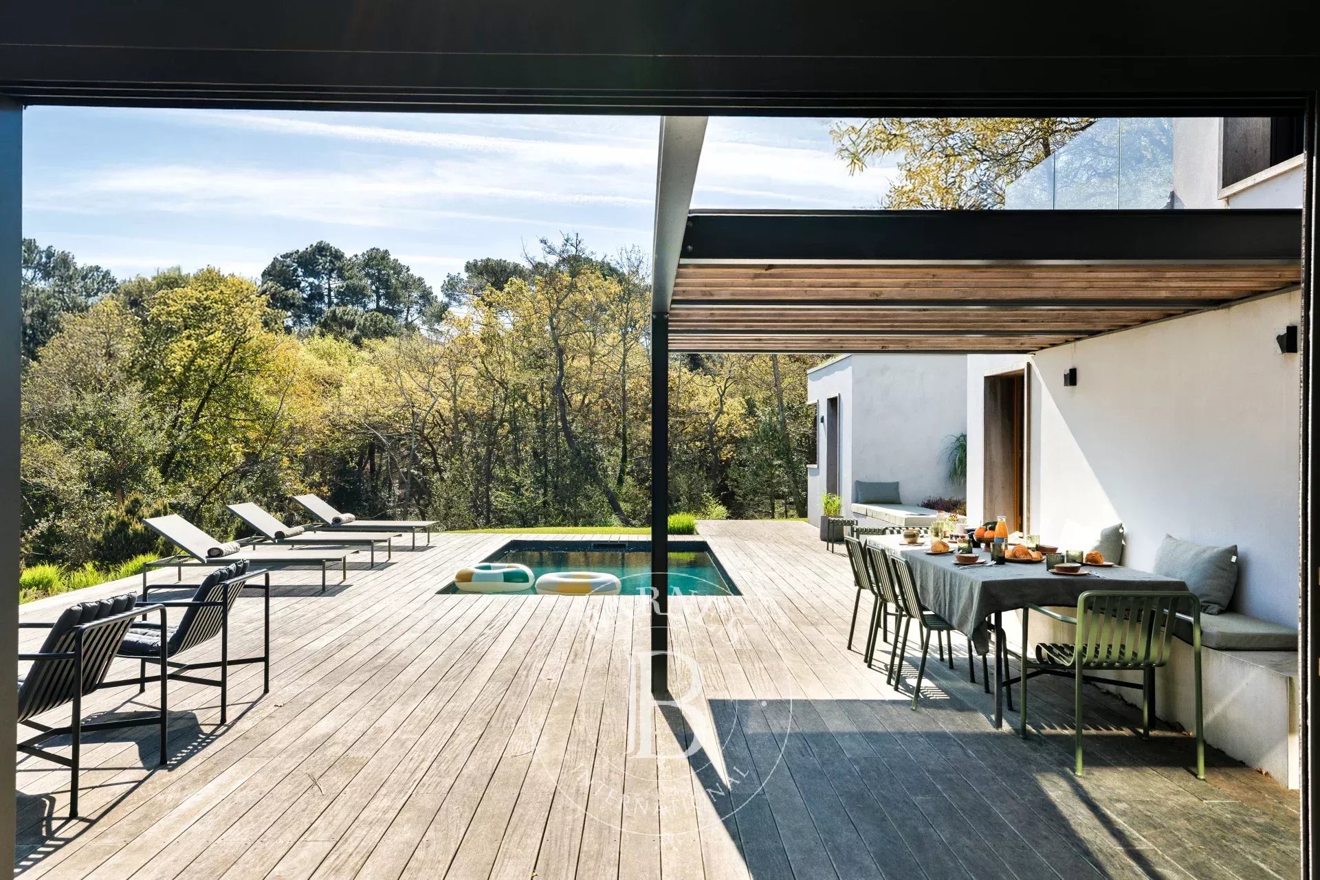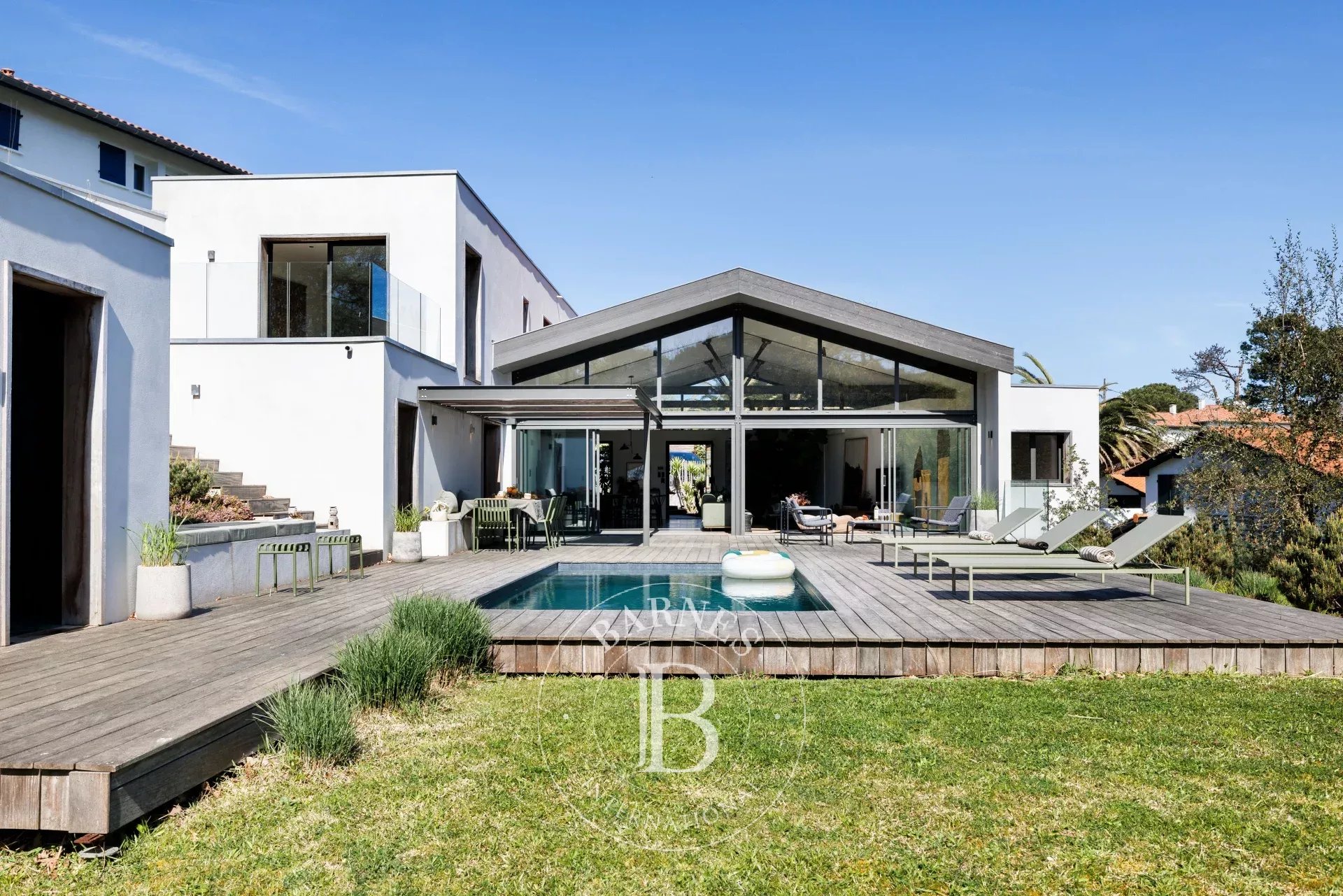 Villa ARIZONA - BidartEnjoy a great stay in this architect-designed home, ideally located in a peaceful area of Bidart, just a short distance from local shops and the Basque coast.Behind its calming atmosphere, the house reveals a spacious, light-filled living area, where large sliding glass doors seamlessly extend the interior towards the outdoors. The living and dining area are perfect for socialising, while the open-plan kitchen with its central island is ideal for sharing meals with family and friends. The décor, inspired by Japanese aesthetics, combines natural and mineral materials with artworks by local artists, creating a soft and contemporary ambience.Outside, the beautifully landscaped garden extends the sense of relaxation, featuring a dining area perfect for sunny breakfasts and lunches, a garden lounge, and a heated swimming pool* surrounded by sun loungers. An outdoor shower completes this wellness-focused space.The house sleeps up to 8 guests and comprises four bedrooms, including a separate suite. On the ground floor, two bedrooms with 160 cm beds share a bathroom and separate toilet facilities. Upstairs, the principal suite offers a 160 cm bed, a dressing room, a shower room, separate toilet, and a study area, with views over the surrounding nature. The fourth bedroom, a self-contained suite with its own external access, benefits from a private shower room and toilet. Each space has been designed to ensure peace and comfort throughout your stay.The property includes two private parking spaces, one of which is equipped with an electric vehicle charging point, as well as free street parking.Located between Biarritz and Saint-Jean-de-Luz, the home offers easy access by electric bike to Ilbarritz and Milady beaches, as well as the town centres of Biarritz and Bidart and local markets.*Heated swimming pool from June to September
