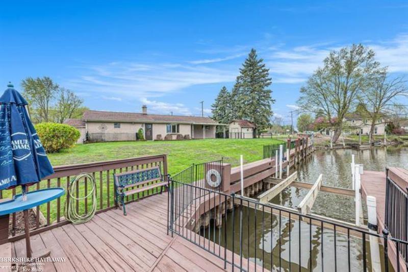 ATTENTION WATERFRONT BUYERS " Just in time for summer! This prime 3-bedroom riverfront ranch offers an incredible 111+ feet of frontage perfectly positioned on a desirable curve of the river, delivering wide, panoramic views up and down the waterway. A true boater's dream, featuring a custom Davit Master Hoist with water and electric, previously supporting a 40-ft SeaRay, along with two additional heavy-duty davits perfect for large watercraft, jet skis, and all your water toys. Multiple tie-on points make docking easy and convenient for guests and everyday use. Inside, home is designed for entertaining and relaxed living with a covered patio, spacious living and family rooms, and an open kitchen with a generous dining area. The beautifully finished basement is ideal for hosting, complete with a bar, plus shower & toilet for added convenience. Additional highlights include HWF under carpet, two large sheds (great for storage & riding lawn mower), Roof ('21), HVAC ('08), New HWH ('25)