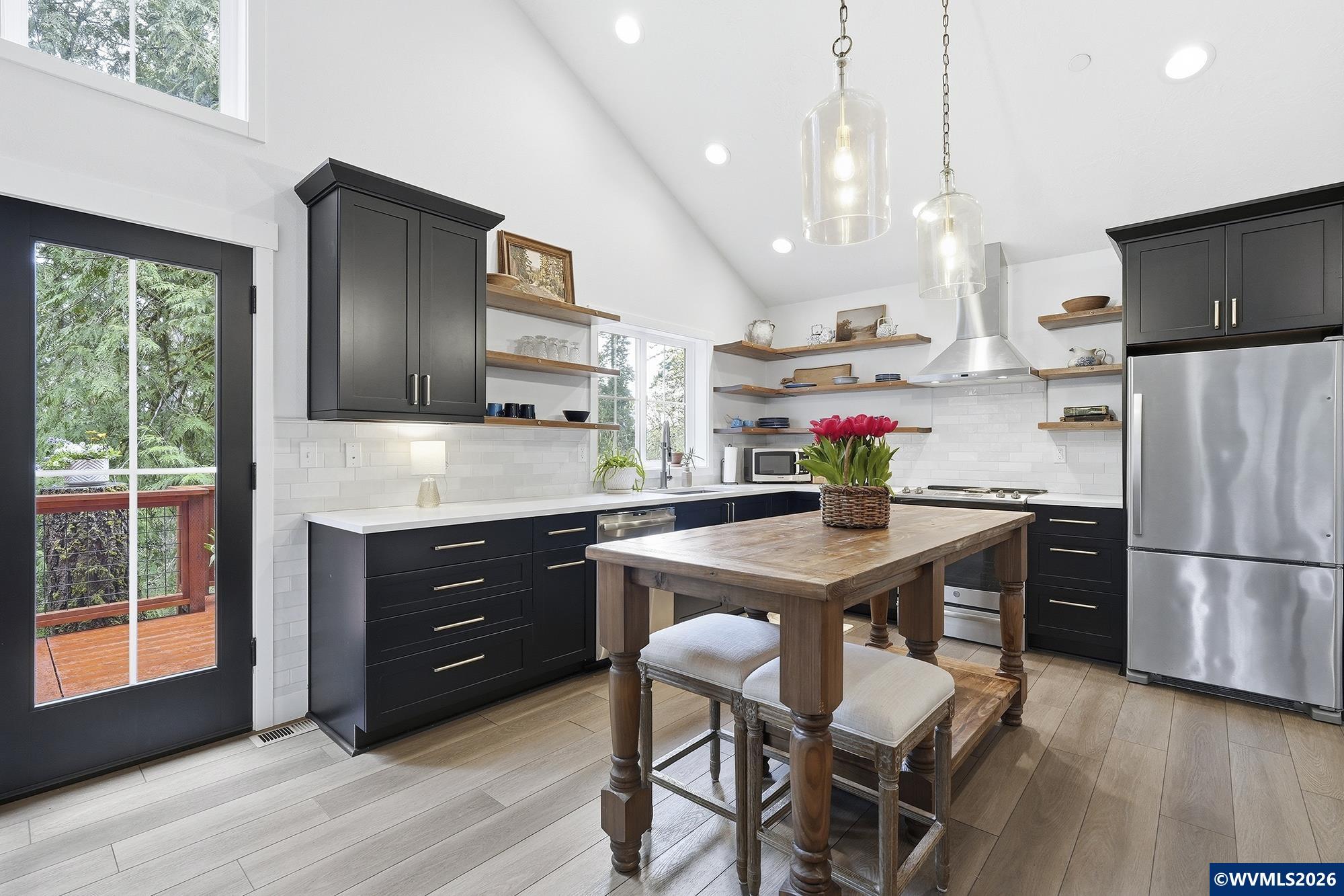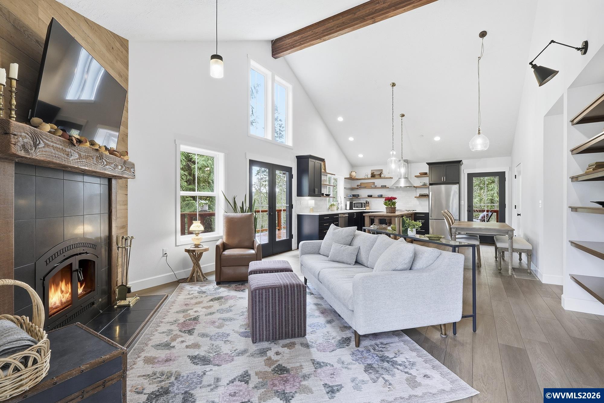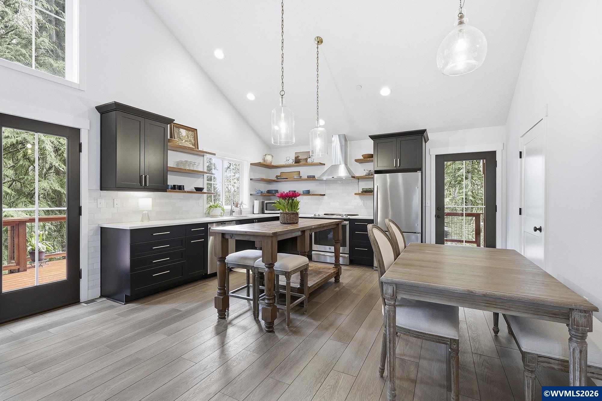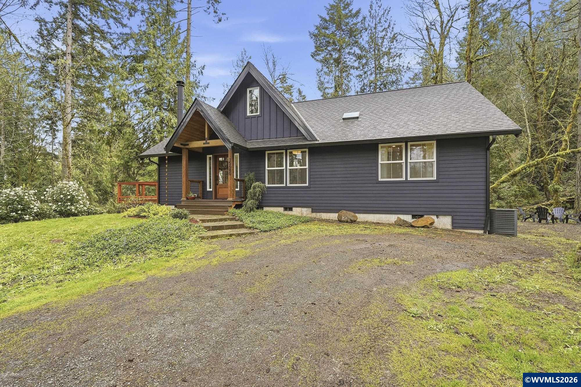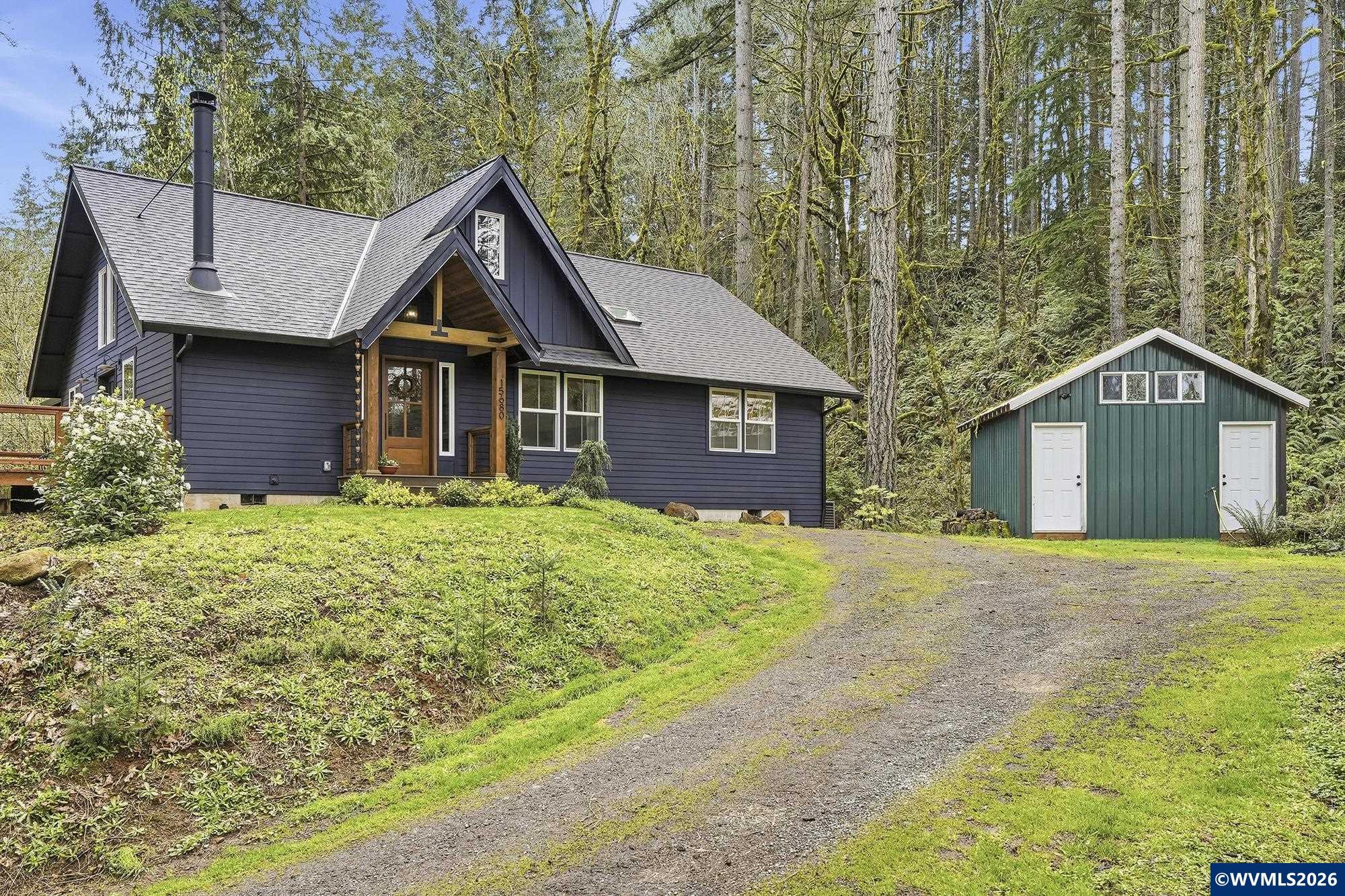 Nature isn't just nearby here - it's at your doorstep. Tucked into the trees of Mulino, this custom home offers a refined retreat just 15 minutes from Oregon City. Vaulted ceilings, a floor-to-ceiling built-in bookshelf, and a wood-burning fireplace with reclaimed wood mantle create a warm, elevated living space, while expansive windows and a wrap-around deck seamlessly connect indoors and out. The primary suite offers a spa-like escape with a clawfoot tub and walk-in shower. Nature isn't just nearby here - it's at your doorstep. Tucked into the trees of Mulino, this fully custom home offers a true retreat setting just 15 minutes from Oregon City, where birdsong fills the mornings and evenings wind down with sunset views and owls in the distance.Inside, vaulted ceilings and an expansive floor-to-ceiling built-in bookshelf anchor the living space, with a wood-burning fireplace and reclaimed wood mantle creating a warm, natural focal point. Windows frame the surrounding woods, while a wrap-around deck extends the living space outdoors. The primary suite offers a quiet escape with a cast iron clawfoot tub and walk-in shower.Set among timber with a natural sense of seclusion, this is a place to slow down, breathe deeper, and enjoy a more peaceful pace - without sacrificing access to everyday conveniences.