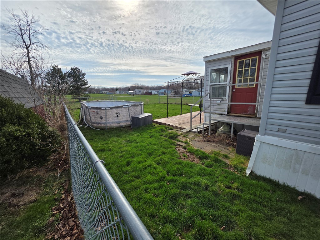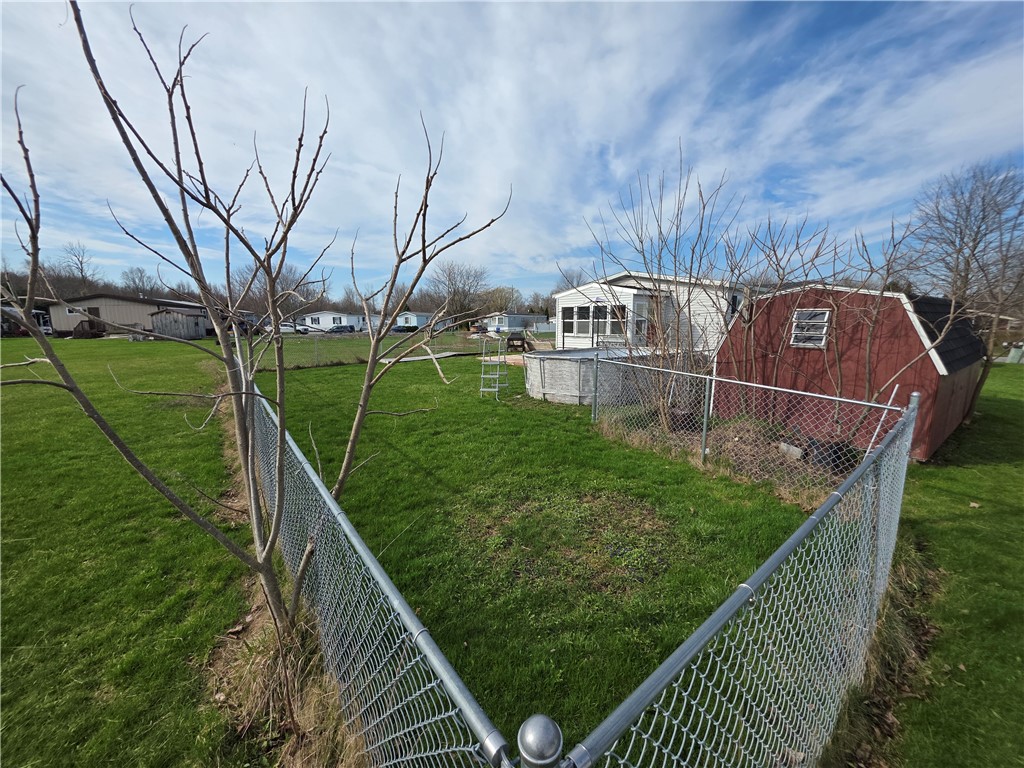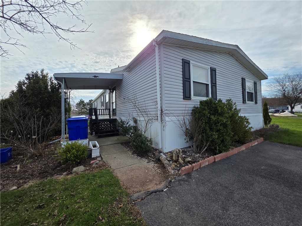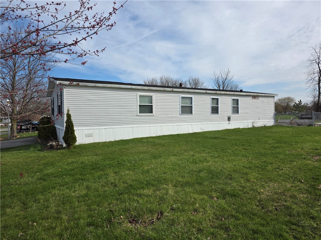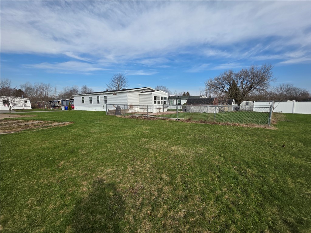 Welcome to 128 Trinity Drive, a beautifully updated home nestled in a well-maintained community in Holley, NY! This move-in ready property showcases tasteful updates throughout, including newer luxury vinyl plank flooring, fresh paint, and modern fixtures. The spacious open-concept living and dining area features a stunning fireplace with custom built-in bookshelves, a stylish barn door, and vaulted ceilings that add character and charm. The large, updated kitchen impresses with two-tone cabinetry, a center island with butcher block top, stainless steel appliances, all of which are included, and generous counter space - perfect for entertaining. Generous-sized bedrooms offer cozy carpet, ample closet space, and plenty of natural light. Both bathrooms have been refreshed with updated vanities and modern black hardware. Step outside to enjoy the spacious deck complete with a pergola, large barn-style shed, and a fully fenced backyard. Residents also enjoy access to a community park and playground just steps away. Don't miss this one - schedule your private showing today!