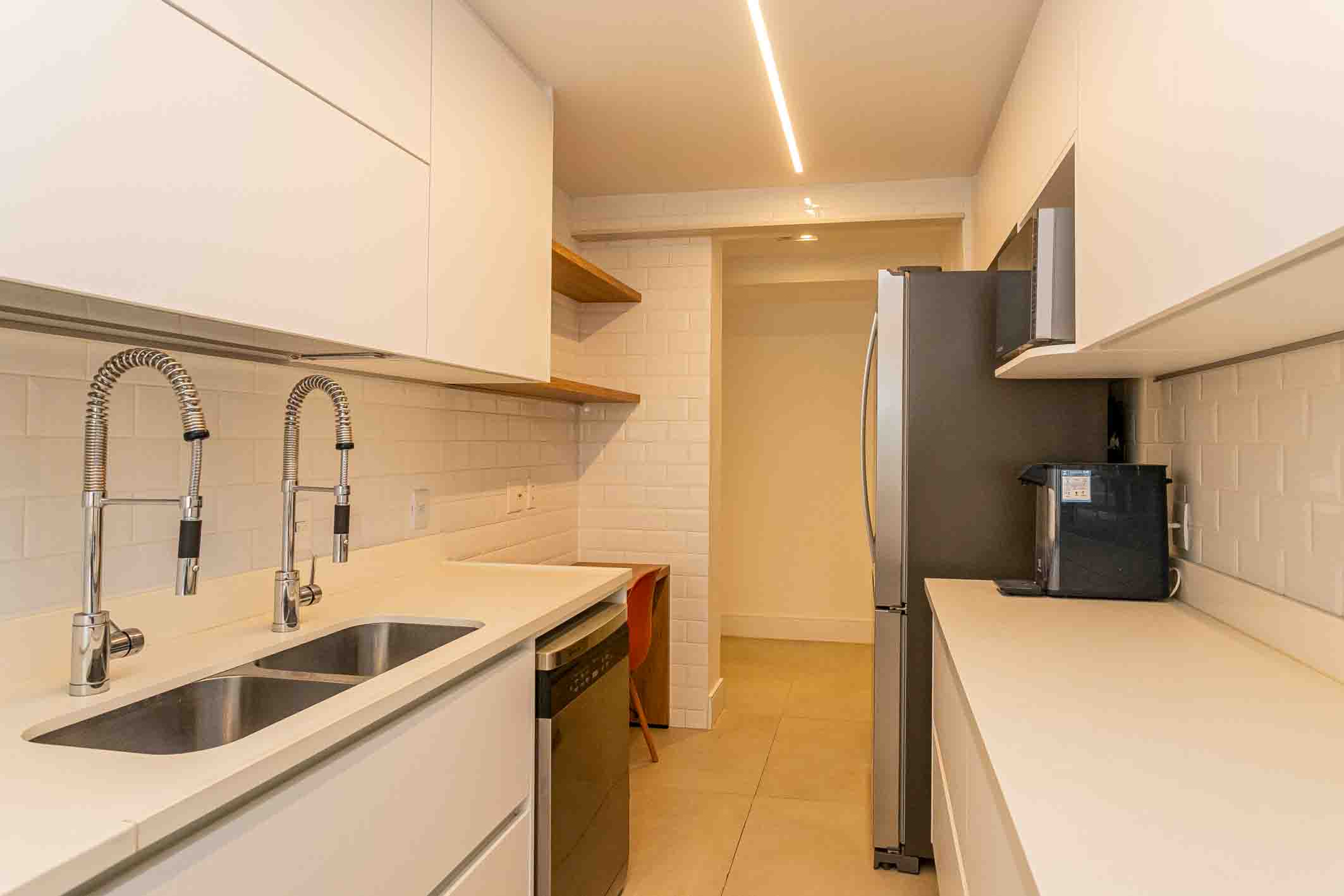 This 1,798 sq. ft. apartment is set in a newer building in an excellent location within Ipanema Quadrilátero. It features a private hall, a spacious living room integrated with a generous terrace, and an original four-suite floor plan currently configured with two suites, including a primary suite with a walk-in closet and two bathrooms. The property also includes a planned and equipped breakfast kitchen, service area, full staff quarters, and two deeded parking spaces. The modern condominium offers an elevator, biometric and facial recognition access control, and a doorman on duty daily from 7 a.m. to 12 p.m. and from 1 p.m. to 8 p.m.