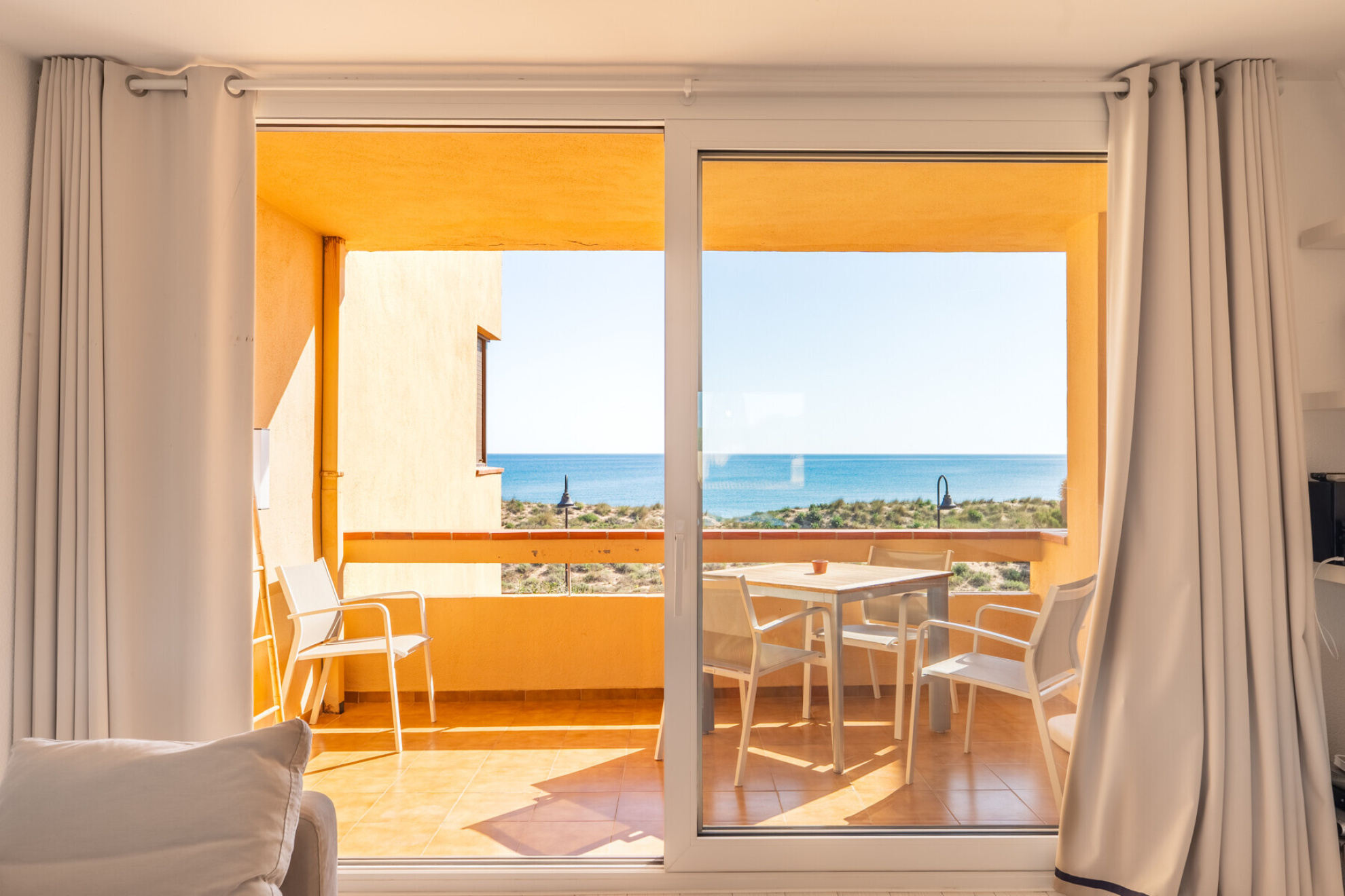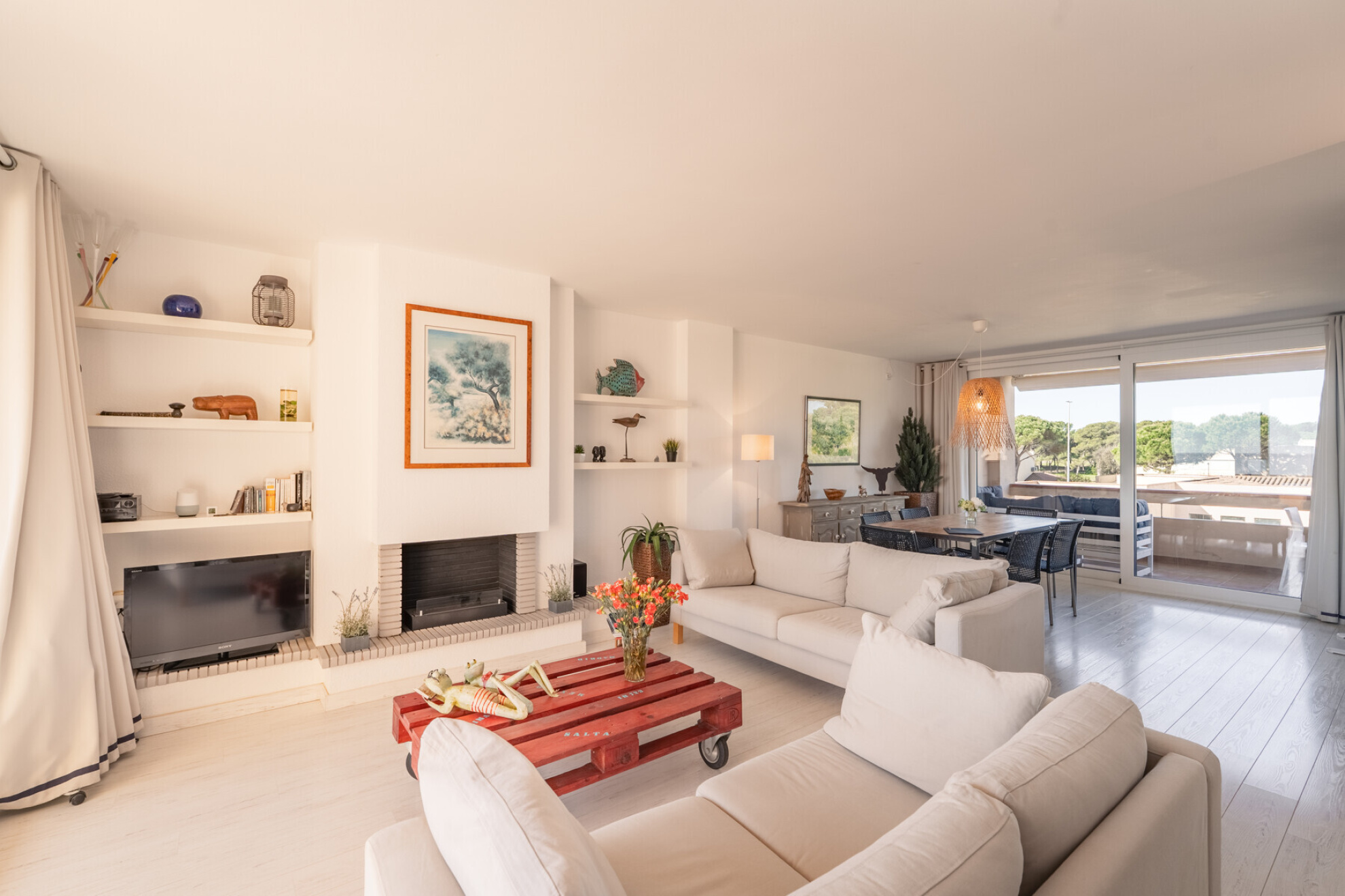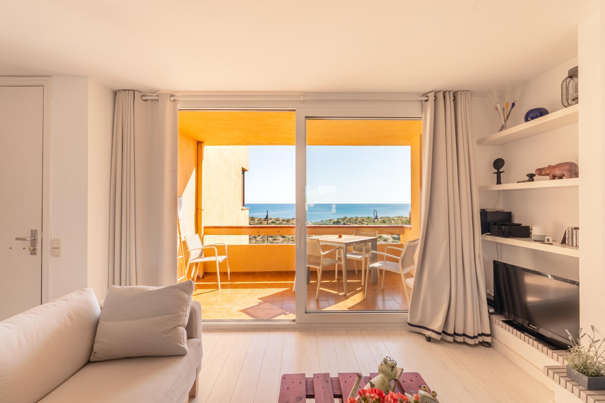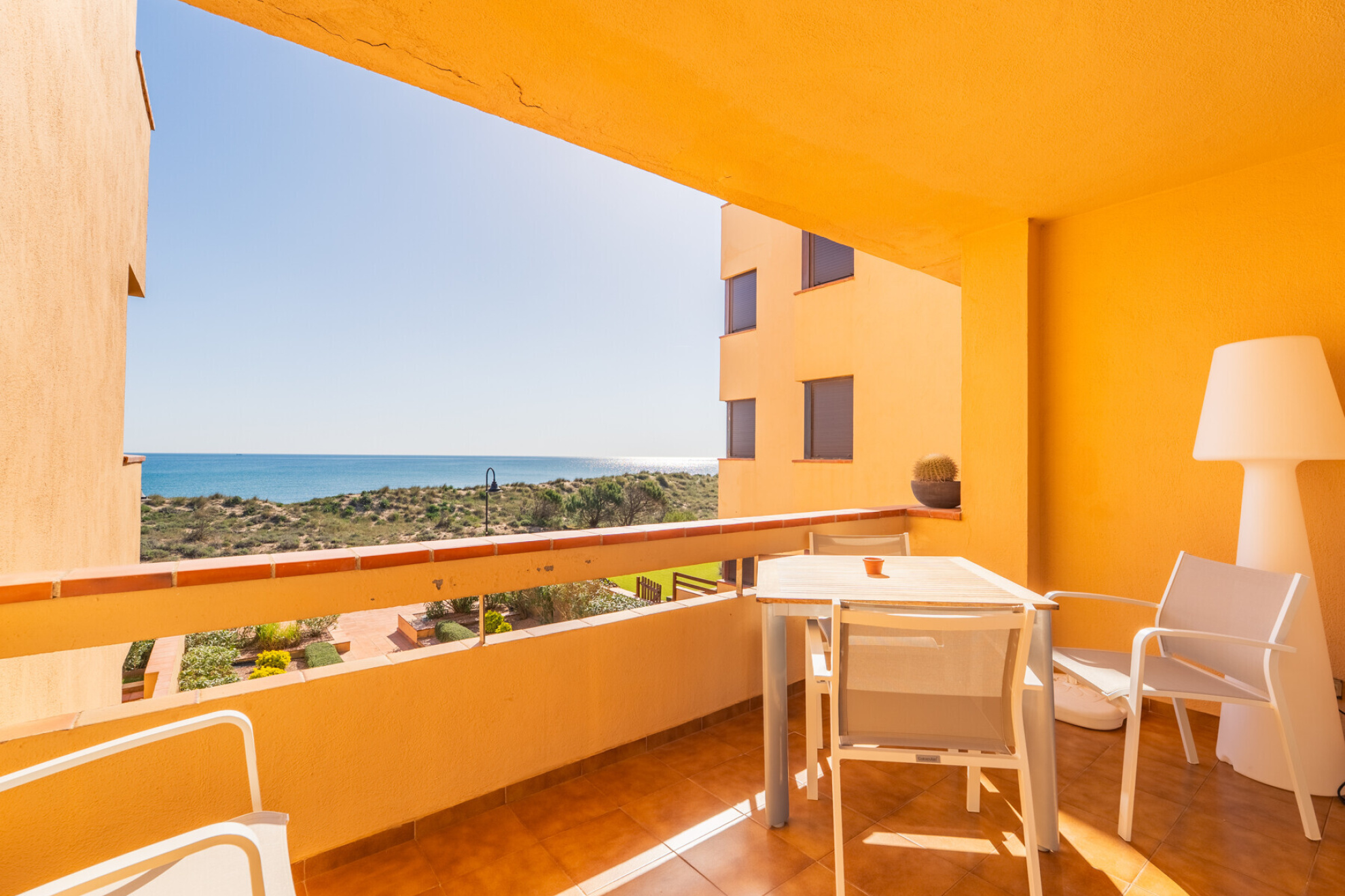 Discover this magnificent apartment, located in a privileged location, on the seafront in Pals Playa. With an area of 80 m², two terraces of 10m2 each, this apartment offers a comfortable and functional distribution, ideal to enjoy the surroundings and the tranquility of the beach of Pals.The property has two nice double bedrooms with lots of natural light that share a full bathroom.The day area with double exposure consists of a bright living room with fireplace, an open kitchen integrated in the same space, all seamlessly connected with two terraces, the first over flying the sea, and the second overlooking the large communal gardens with pool and golf right in front.Undoubtedly, the great attraction of this property are its spectacular sea and golf views that can be enjoyed from the day area and from the outside perfectly connected with the interior of the property with large sliding doors.The apartment is in perfect condition, has been renovated, kitchen and bathroom, double glazed aluminum windows ....It also includes a good subway parking space and a storage room, offering convenience and additional storage space.A unique opportunity to enjoy next to the sea of a second residence in one of the most emblematic areas of the Empordà.The property has a tourist license which gives it a plus of value and ensures a recurring income.Do not hesitate to contact for more information.