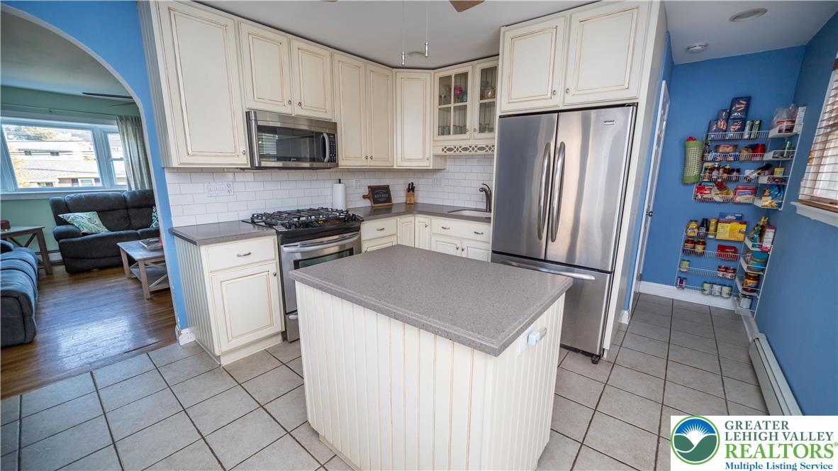Welcome to a home that makes smart homeownership possible! This updated 3-bedroom single offers the perfect blend of comfort, convenience, and value. Step inside to find the beautifully remodeled kitchen featuring 42" cabinets, under cabinet lighting, a center island, soft-close drawers, lazy Susan corner cabinets (top and bottom), hidden pull-out trash, and stainless steel appliances, including a gas stove, microwave, dishwasher, and refrigerator - designed for both function and style. The updated bathroom and efficient natural gas heat add to the move-in-ready appeal. Many windows have been replaced, and the sliding doors with built-in blinds were added during this ownership, bringing in natural light while enhancing comfort and efficiency. Imagine relaxing on the deck under the pergola with string lights, enjoying your own outdoor oasis. The shed provides additional storage for tools and seasonal items. A built-in 1-car garage adds everyday convenience, while the efficient layout maximizes space. The unfinished basement offers excellent storage or the opportunity to finish for additional living space if desired. Just minutes from Routes 22, 33, and 78, and close to the New Jersey border, trips or commuting to New York, New Jersey, or Philadelphia is a breeze. Conveniently located near shopping, dining, hospitals, and community amenities, everything you need is right nearby. For buyers seeking an updated single detached home with exceptional commuter access and everyday convenience, this is an opportunity you won't want to miss. Whether you're purchasing your first home, downsizing, or looking for a smart investment, this home checks all the right boxes.