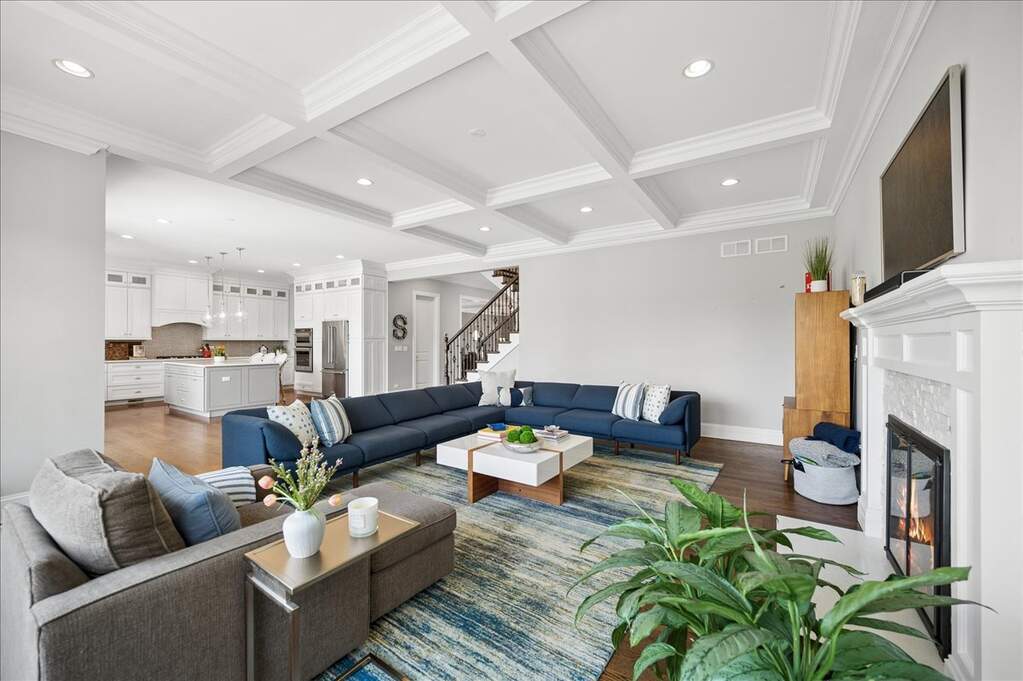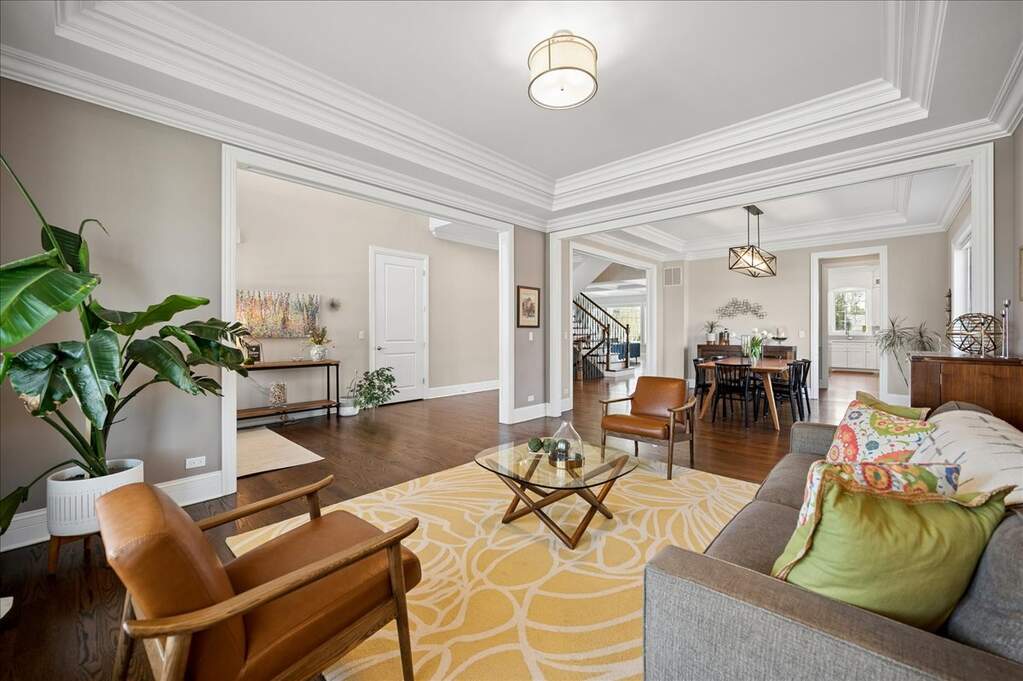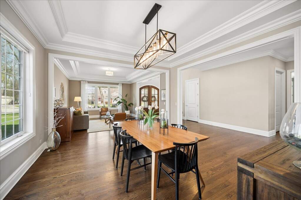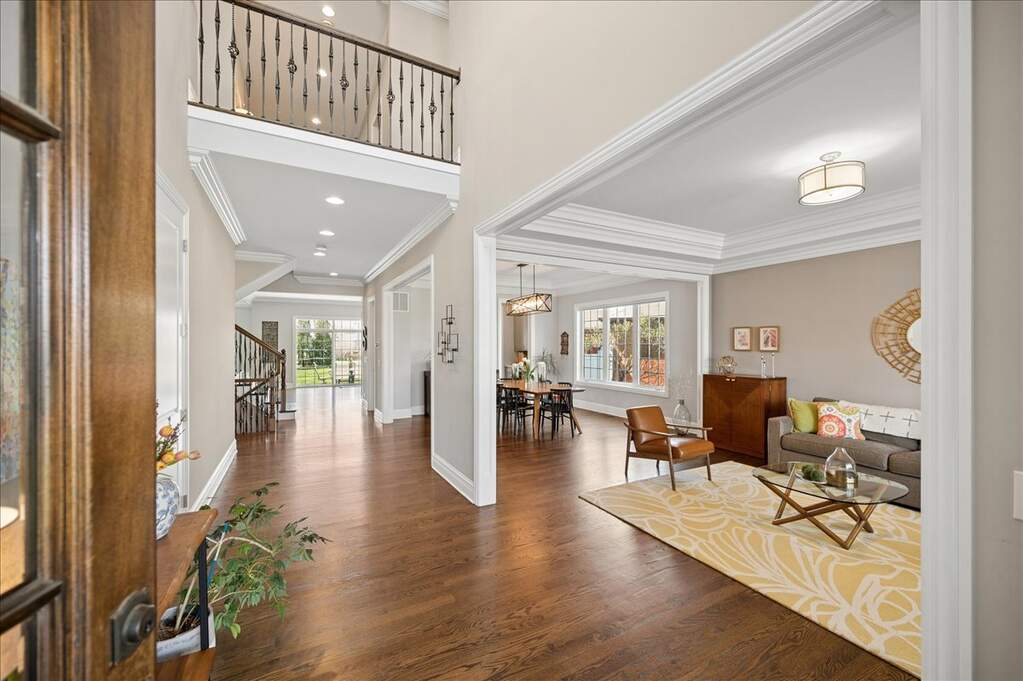 Beautifully appointed and thoughtfully designed, this exceptional 6-bedroom, 5.1-bath home built in 2016 offers an ideal blend of space, style, and functionality across all three levels. Hardwood flooring, high ceilings, abundant natural light, and custom millwork create a warm, polished feel throughout. The open-concept kitchen features quartz countertops, a large center island, stainless steel appliances, and a beverage/bar area, flowing seamlessly into the expansive family room with fireplace. Formal living and dining rooms provide additional space for everyday living and entertaining. A main-floor en-suite bedroom is ideal for guests, in-laws, or a private home office. Upstairs offers four bedrooms, including a spacious primary suite with walk-in closets and a spa-like bath, plus a large bonus room with potential for a fifth upstairs bedroom, playroom, or office. A well-designed Jack-and-Jill bathroom enhances functionality on the second level. The fully finished basement adds valuable living space with a custom bar, recreation areas, sixth bedroom, and full bath-perfect for entertaining, guests, or everyday living. Private, fully fenced backyard with paver patio and great outdoor space. Conveniently located near schools, parks, shopping, dining, forest preserve, and expressway access.