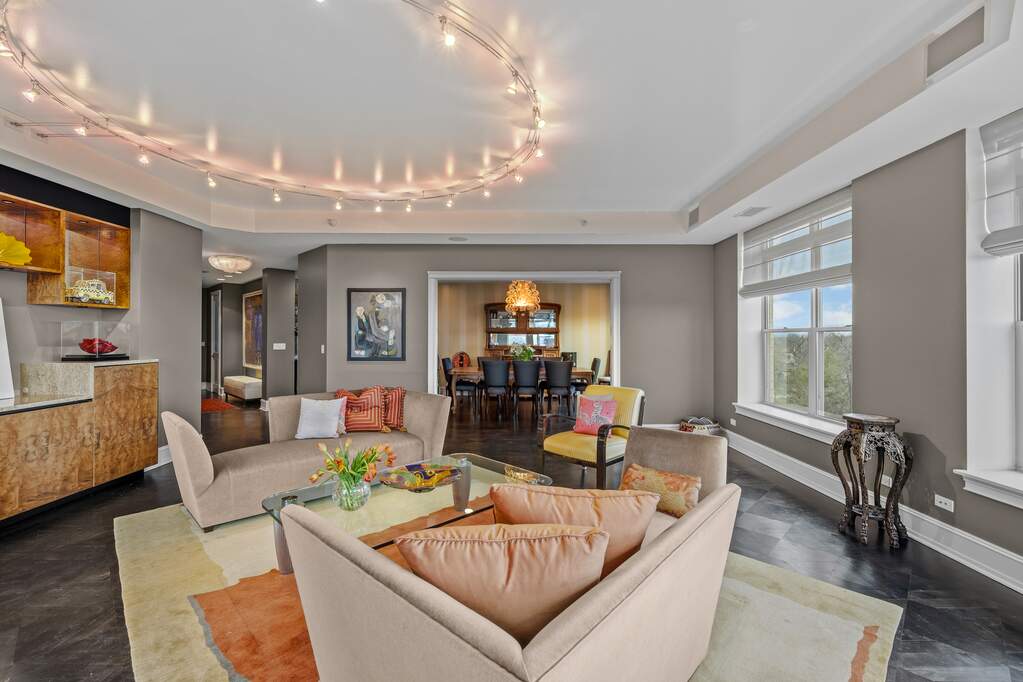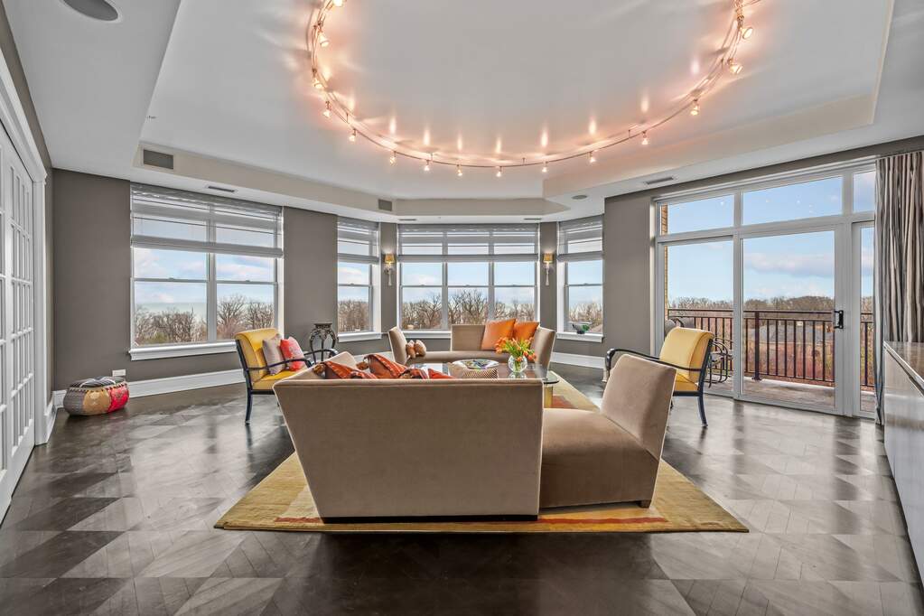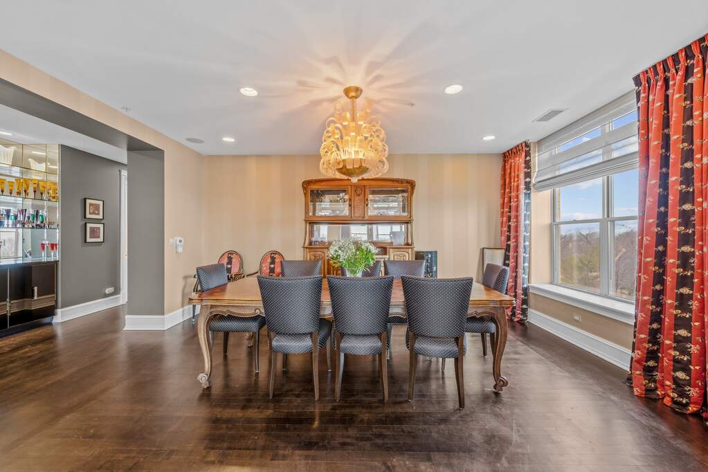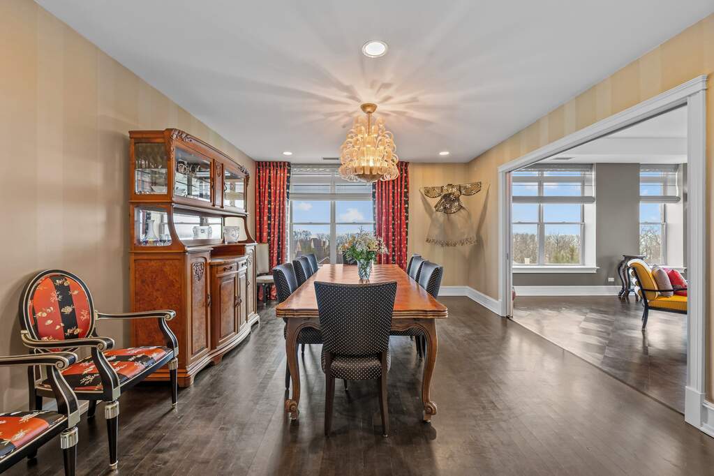 Dramatic 3-bedroom condo with breathtaking Lake Michigan views in sought-after Fort Sheridan! Enter through a gracious foyer and immediately take in the sweeping lake views-an unforgettable first impression. This beautifully appointed residence offers 3 bedrooms, 2.5 baths, and an abundance of closet space, along with two balconies and a private walk-in storage room conveniently located on the same floor. The spacious eat-in kitchen features a large island, high-end appliances, custom cabinetry, and picturesque views. A separate dining room provides the perfect setting for entertaining, complete with incredible views and elegant pocket doors. The serene primary suite includes a generous bath with dual vanities, a separate commode, walk-in shower, and soaking tub. The second and third bedrooms share a well-appointed shared full bath. Additional highlights include a stunning bar area, two parking spaces in a heated garage, and access to exceptional amenities, including a beautiful pool, party room, and fitness center. Enjoy all that Fort Sheridan has to offer-just steps to the beach, scenic walking trails, and the vibrant dining and nightlife of downtown Highwood.