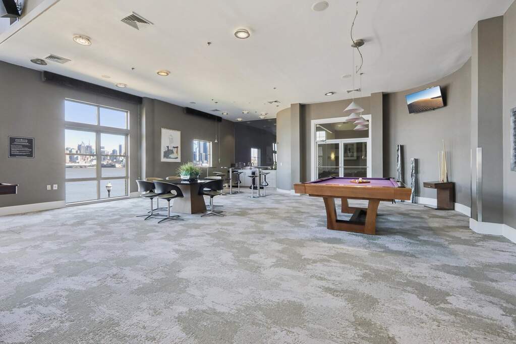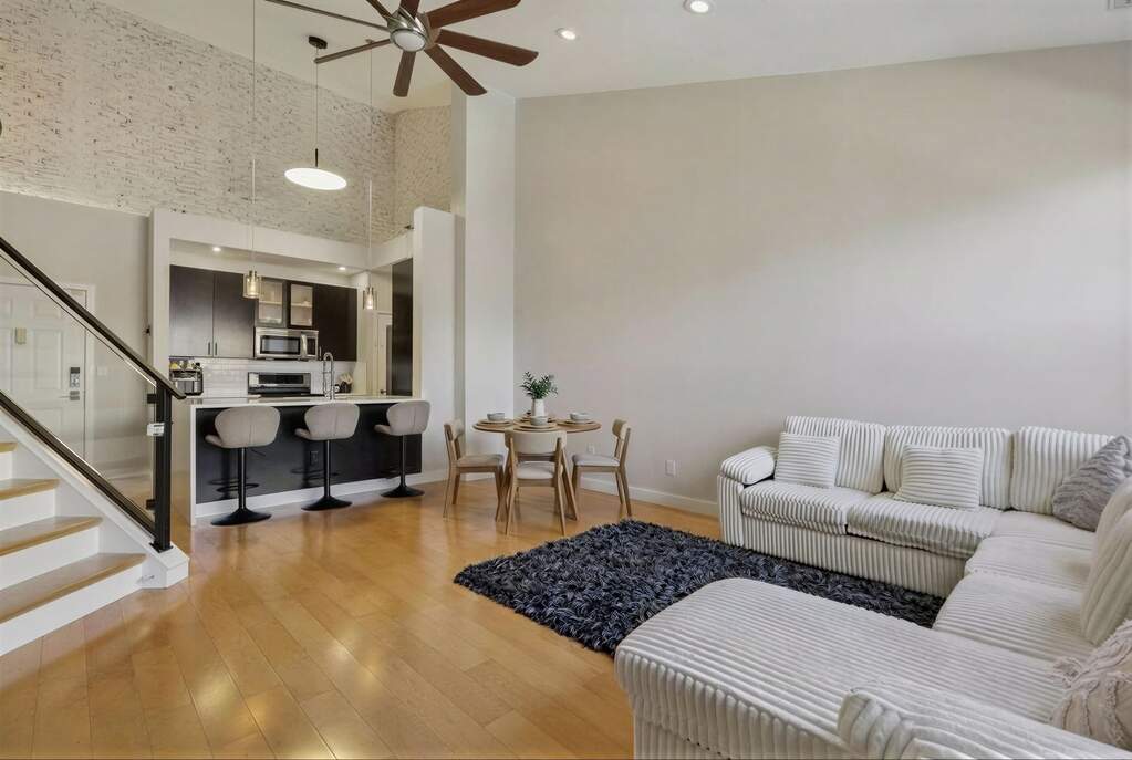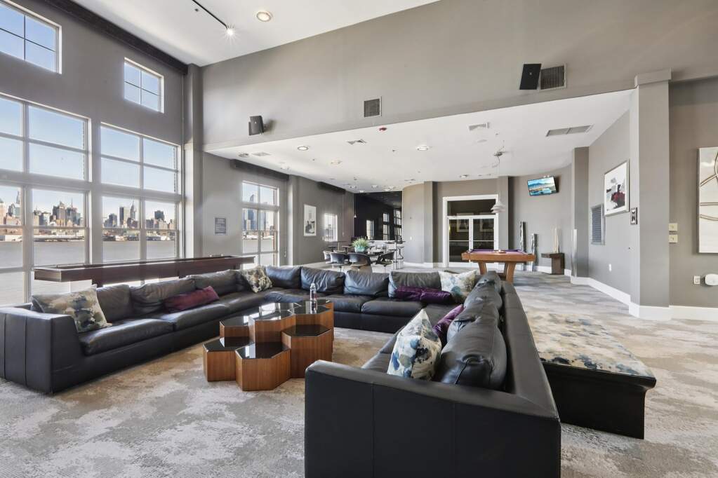 Experience the pinnacle of Gold Coast luxury in this rarely available, renovated penthouse duplex at Hudson Club. Perched along the Port Imperial waterfront, this exquisite 1,300+ sq. ft. residence features soaring double-height ceilings and sweeping, unobstructed NYC views from every room. Bathed in natural light, the open-concept floor plan showcases hardwood floors, industrial-inspired white-washed brick accents, and a chic designer kitchen with a breakfast bar that connects to a spacious living and dining area. The primary suite offers a spa-like renovated bath, while in-unit laundry, 2 walk-in closets, and a designated parking space add ultimate convenience. Residents enjoy a seamless, all-inclusive lifestyle, with maintenance covering access to clubhouse, pool, 1 parking, cable, water and garbage. Residents of Hudson Club enjoy an impressive array of resort-style amenities, including a concierge, outdoor pool with jacuzzi, fitness center, basketball court, cinema room, social lounge, business centers, fire pits, and more. An effortless NYC commute is guaranteed with the NY Waterway Ferry and NJ Transit just steps away, while ACME and Starbucks are right at your doorstep. Live above it all in West New York's most sought-after waterfront community.