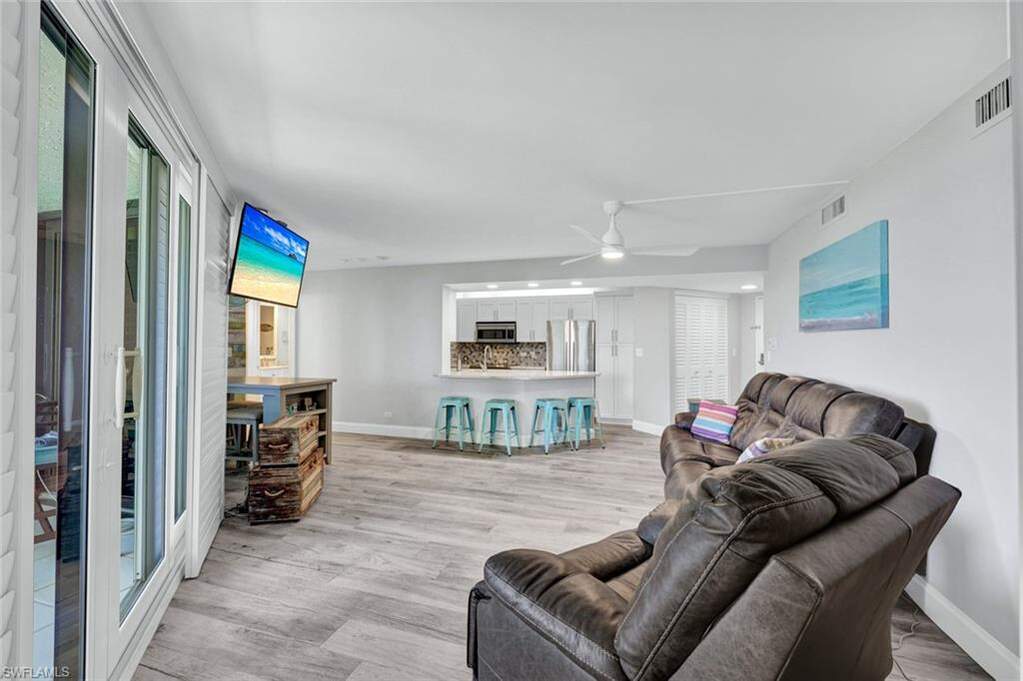 Welcome to Sandcastle II--an intimate beachfront enclave on the coveted south end of Marco Island--where effortless coastal living meets timeless appeal. This beautifully updated residence, remodeled in 2019, offers the rare convenience of first floor living with direct access to the pristine white sands of the Gulf of Mexico just steps away. Designed to capture the essence of island life, the open and airy floor plan is filled with natural light and showcases stunning Gulf views and unforgettable sunsets from every room. Expansive sliding glass doors create a seamless indoor-outdoor connection, inviting in tropical breezes and framing the serene coastal backdrop. Tile flooring runs throughout, complementing the clean, coastal aesthetic. The living and dining areas flow effortlessly, ideal for both relaxed everyday living and entertaining. The well-appointed kitchen offers ample cabinetry and workspace, while the primary suite serves as a peaceful retreat, featuring a spacious layout and a beautifully updated bath with a large walk-in shower. All windows and sliders are impact glass, with plantation shutters. Step outside to your private lanai, perfect for morning coffee or sunset cocktails, surrounded by lush landscaping that provides both privacy and tranquility. Sandcastle II is known for its meticulously maintained grounds and exceptional amenities, including private beach access, a large resort-style pool, tennis courts, fitness center, sauna, and a spacious social room with a fully equipped kitchen for gatherings. Additional features include assigned garage parking and a secure building. Ideally located near Marco Island's premier dining, shopping, and entertainment, this residence presents an exceptional opportunity as a full-time home, seasonal retreat, or investment property--offering the very best of beachfront living.