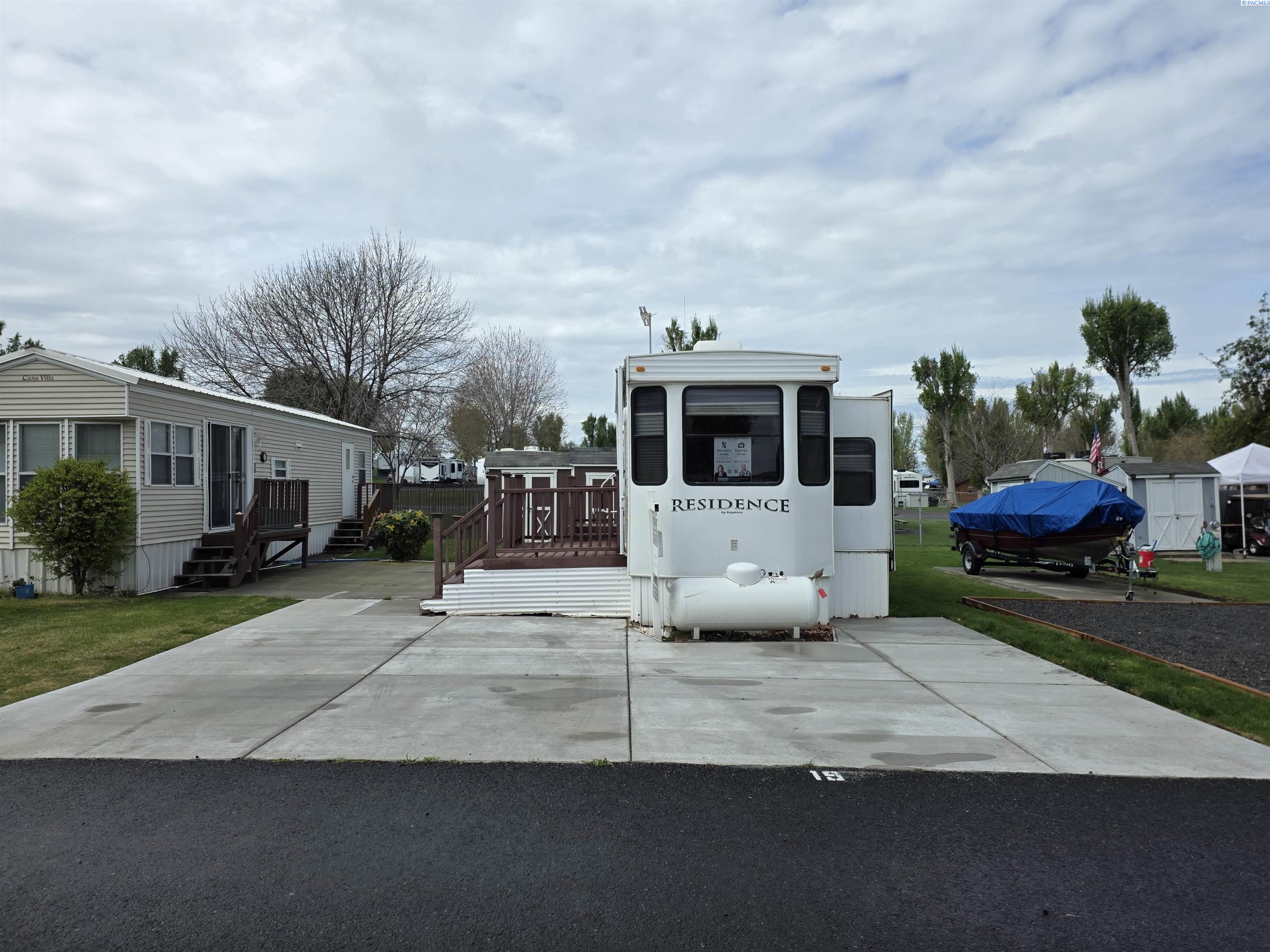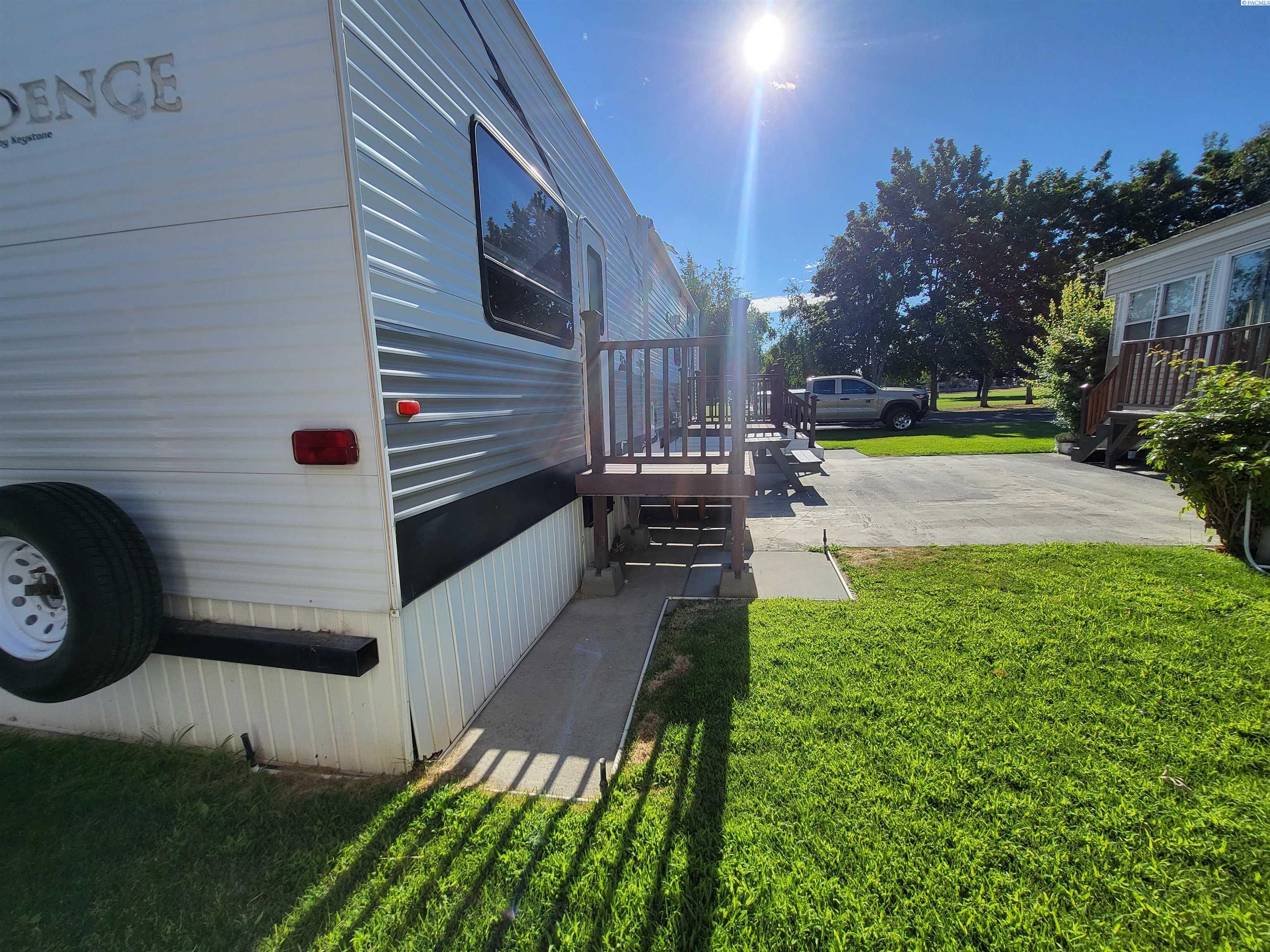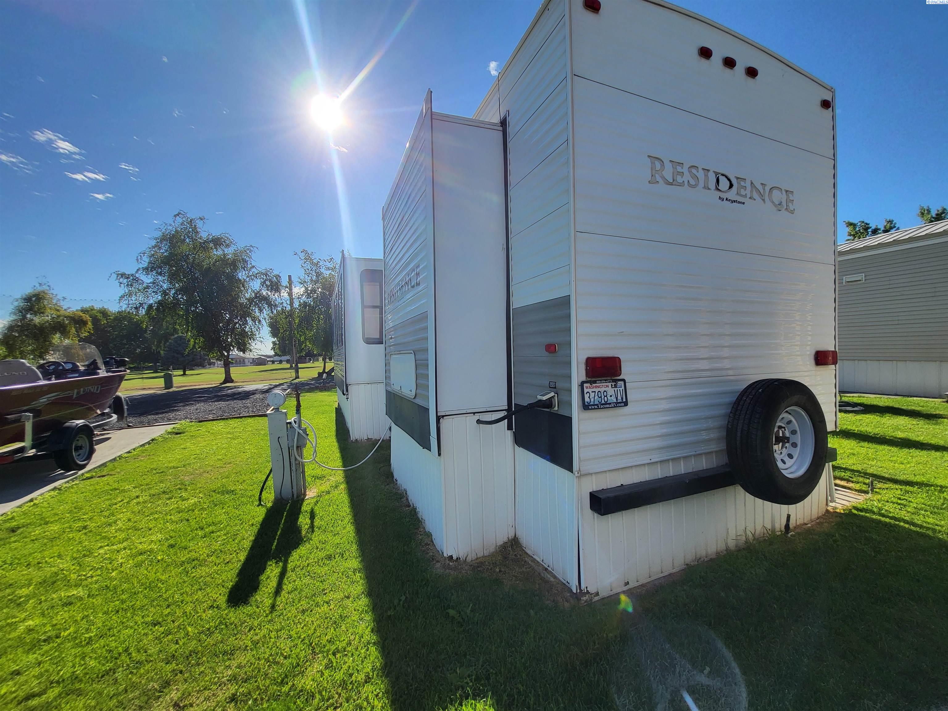 MLS 292025 Enjoy the ultimate recreational retreat or affordable full time living in the highly desirable Potholes Golf and Camping Condominium Community! Just a 2-minute walk to the community clubhouse and restaurant and ideally located right on the beautiful Legacy Golf Course, this well-kept lot and park model offers the perfect blend of relaxation, convenience, and outdoor adventure. Included is a meticulously maintained 2010 Keystone Residence 40 ft park model featuring high ceilings and two slide-outs for added space and comfort. Inside, you'll find a stackable washer and dryer, electric fireplace, propane furnace, and central vacuum system. Fiber optics internet, electric fireplace and gas/electric water heater ensures year-round enjoyment and comfort. Bedroom includes an incredibly comfortable king size bed and closet storage. Step outside to enjoy a low-maintenance Trex deck, a covered awning, a cozy patio area, and three storage sheds, plenty of room for gear, golf clubs, and lake toys. With full utilities, including water, sewer, and garbage covered by a low $500/year HOA fee, and electricity billed quarterly by the HOA, this lot is ready for year-round or seasonal enjoyment at a VERY low cost. Situated just 1 minute from Potholes State Park and boat launch, you'll have easy access to fishing, boating, and lakeside recreation. Whether you're a snowbird, weekend warrior, golf lover, traveler who needs a hub, or tired of high cost living, this slice of paradise is just for you! Seller will NOT lease or rent unit.