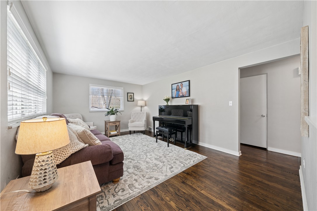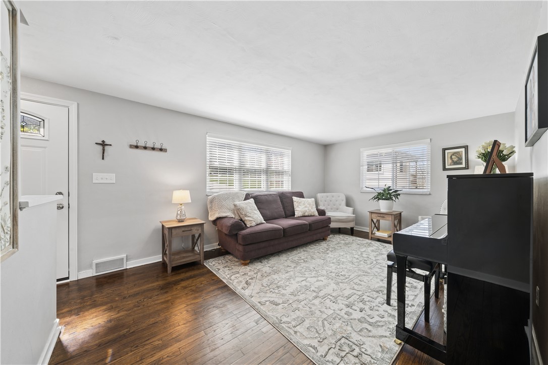 Welcome to this charming brick cape cod home, featuring adorable curb appeal and a prime location in the heart of Shaler Township that backs to woods for ultimate privacy. The property is conveniently situated just a few yards to Burchfield primary school. Step inside to discover elegant hardwood floors in the first-floor bedroom as well as the living and dining rooms. The updated kitchen is a chef's delight, boasting white cabinetry, a stylish backsplash, and granite countertops. The main living area is significantly enhanced by a large great room addition, perfect for entertaining or relaxing. The functional layout offers great flexibility, with one bedroom and a full bath located on the first floor, ideal for guests or a private primary suite. The second-floor features two additional bedrooms and a full bath. The bathrooms are beautifully updated with ceramic tile flooring, subway tile & beautiful vanities. Practical amenities include a three-car integral garage and a delightful side porch that is partially covered and can be accessed through the kitchen and great room , offering a perfect outdoor retreat. This three-bedroom, two-full-bath home blends classic style with modern convenience. This brick beauty offers style, convenience, functionality and updates that will steal your heart!