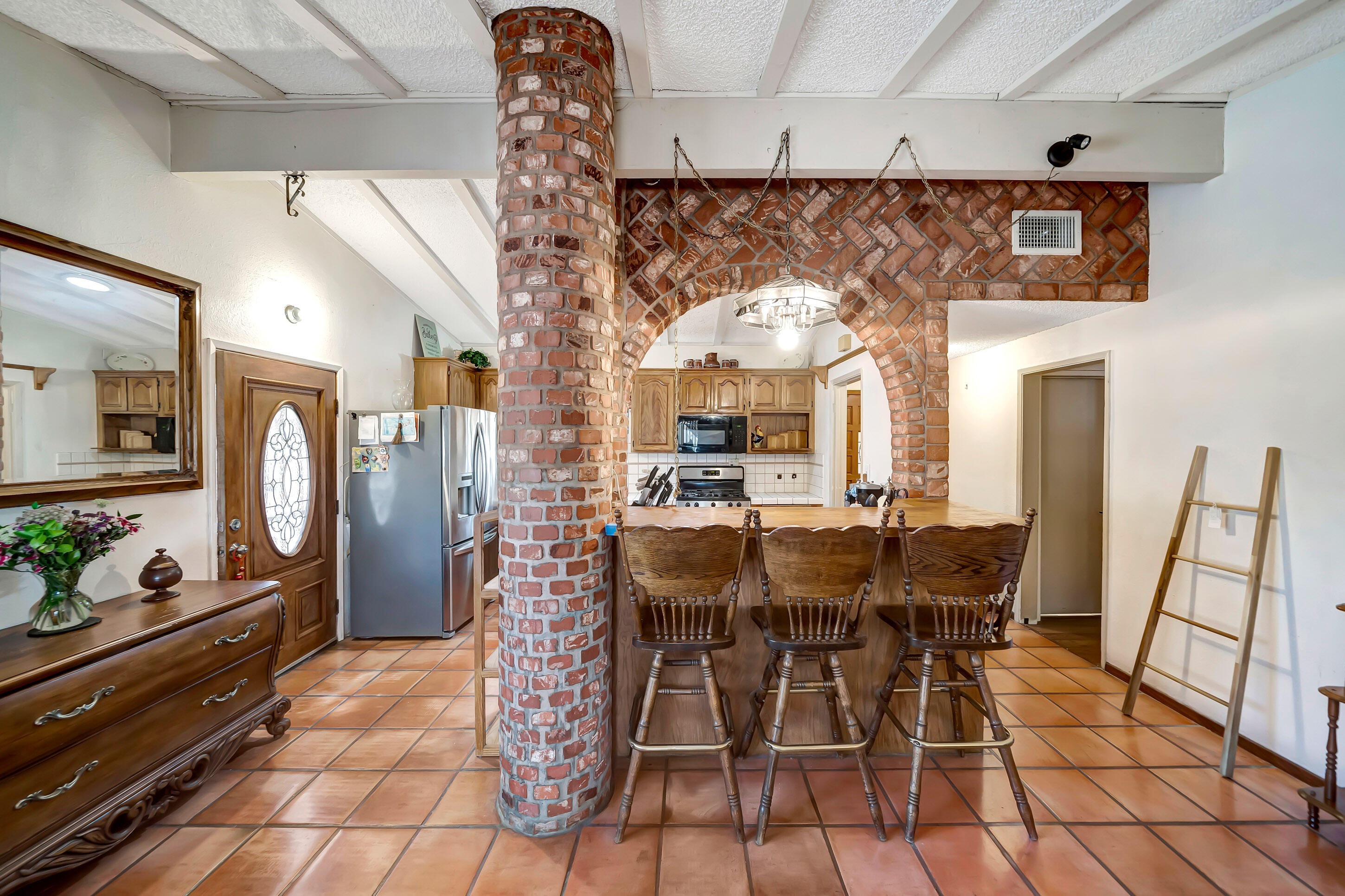 Charming Home Located in a Desirable Neighborhood in West Palmdale Situated on a Large Lot. This Home Features Three Bedrooms & Two Bathrooms, Built in 1955 & an Open Floor Plan. Kitchen Features Stainless Steel Appliances, Tile Countertops, Beautiful Custom Brick Arch Over the Breakfast Bar & Custom Spanish Floor Tiles. Family Room, & Dining Area Open to the Kitchen. Three Spacious Bedrooms with Mirror Closet Doors & a Guest Bathroom. The Master Bathroom needs TLC Features a Shower & Washing Machine Area in the Bathroom. Oversized Backyard Offers a Covered Patio, Detached 2 Car Garage, & Gated RV Access,