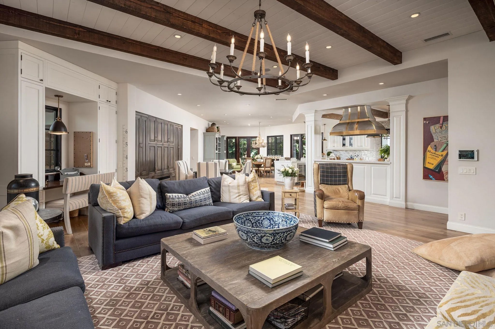 Situated on one of the most coveted addresses in The Covenant directly across from the Rancho Santa Fe Golf Course, this is a unique and truly generational estate. Fully gated on nearly three pristine, usable acres, the property unfolds as a private compound of uncommon scale, land, and serenity. A long, gracious entry driveway sets the tone before the residence comes into view, quietly revealing a stunning, sprawling residence. The single-level main house is designed for effortless, refined living and thoughtfully laid out for natural flow between beautifully appointed interiors and the extraordinary grounds beyond. A separate two-story guest house with its own private access and full amenities adds a dimension of flexibility, with options to be configured as a private retreat within the estate, a multigenerational residence, a full fitness and recreation facility, or extended-stay accommodations for family and guests. The grounds themselves are extraordinary, curated with the intention and execution of a private resort. Lush tropical landscaping, a sparkling pool and spa, outdoor kitchen and fireplace, and an abundance of patios and gathering spaces set the scene for both intimate evenings and grand-scale entertaining, while two golf practice ranges, multiple putting greens, a sports court, a turf volleyball court and an expansive flat lawn area speak to a lifestyle of leisure and play. A greenhouse, raised garden planters and a chicken coop also provide the pleasure of living off the land. This home truly must be seen to experience all it has to offer!