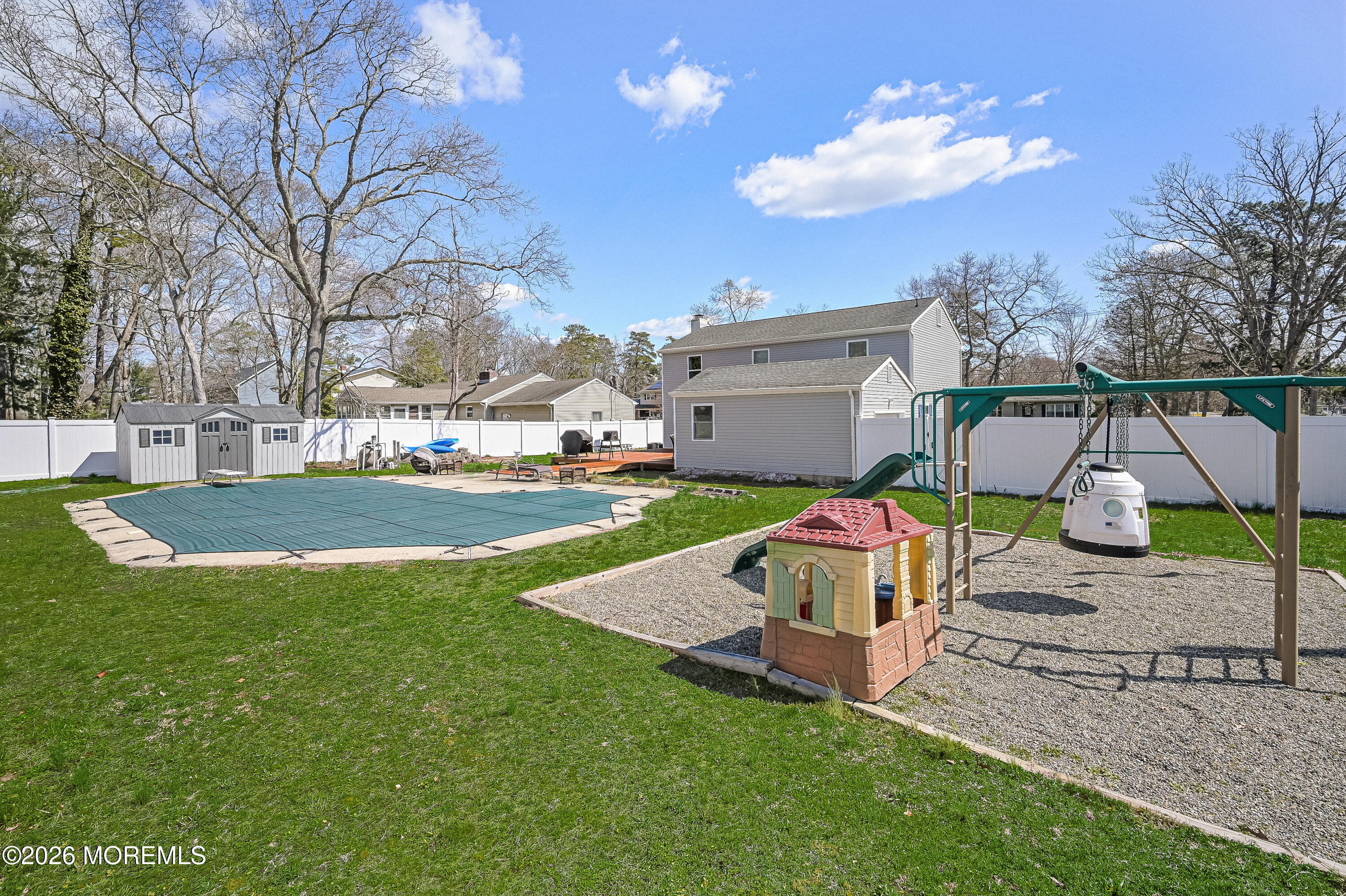 Welcome to this beautiful, Colonial home in the desirable Pinewald section of Bayville, situated on a large corner lot! Located just 1 mile from the bay, near top-rated schools, Veterans' Park, with easy access to the Garden State Parkway and the Jersey Shore. Trenton Ave N is set in a peaceful neighborhood with wide streets, where every home has its own charm. This one truly has it all! An eat-in kitchen built for family gathering, 4 bedrms, 2.5-baths, and over 2,100 sq ft of comfortable living space. Step outside through the French doors onto the wide deck and soak it in! Your private badckyard oasis awaits! Featuring an inground pool, fenced-in yard, and fun play area for the kiddos. Major updates include new siding (2024), water heater (2022), pool liner (2023), and fence (2025)
