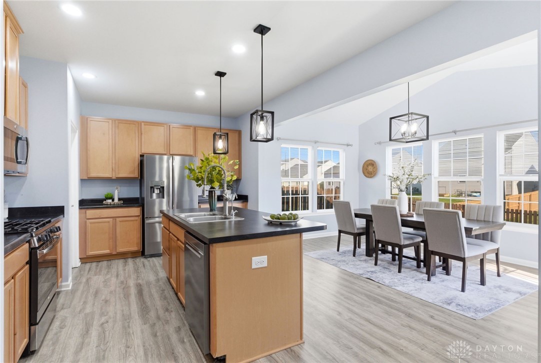 Picture-perfect Florence model in Waterford Landing offering 3 bedrooms PLUS loft, 3.5 baths, a fenced yard, and a full finished basement! From the moment you step inside, you'll feel right at home with a flexible floor plan designed for the way people live today. The front room offers endless possibilities-perfect for a home office, cozy sitting area, or playroom. Just beyond, a conveniently located half bath leads into the heart of the home. The back of the home opens to a spacious family room, eat-in kitchen, and bright breakfast area, creating a natural gathering space for everyday living and entertaining. Newer luxury vinyl flooring flows throughout, adding both style and durability. The kitchen features stainless steel appliances, a center island perfect for hosting, and views of the backyard so you can stay connected to it all. The laundry room is thoughtfully tucked just off the entry from the 2-car garage for everyday convenience. Upstairs, the open loft provides even more flexible living space-ideal for a second living area, workspace, or game room. Two additional bedrooms share a full bath, while the spacious primary suite offers a true retreat with a walk-in closet and private ensuite featuring dual sinks. The full finished basement takes this home to the next level, offering a full bathroom and incredible additional living space that is perfect for movie nights, game days, a home gym, or guest space. Step outside and unwind in the fully fenced backyard with a patio made for relaxing evenings, morning coffee, or weekend cookouts. Located just minutes from dining, shopping, major interstates, and Wright-Patterson Air Force Base, this home offers the space, layout, and location buyers are looking for.