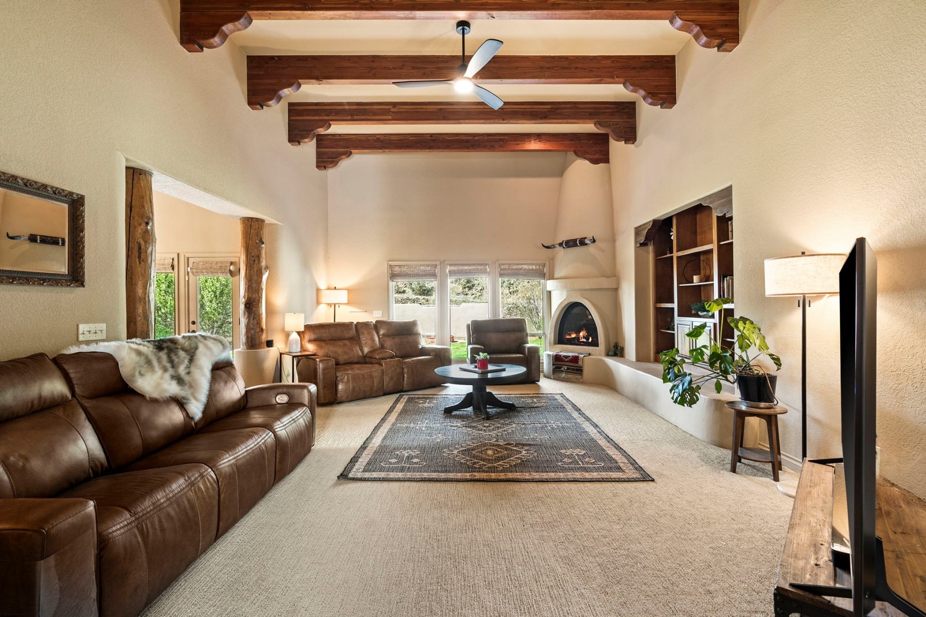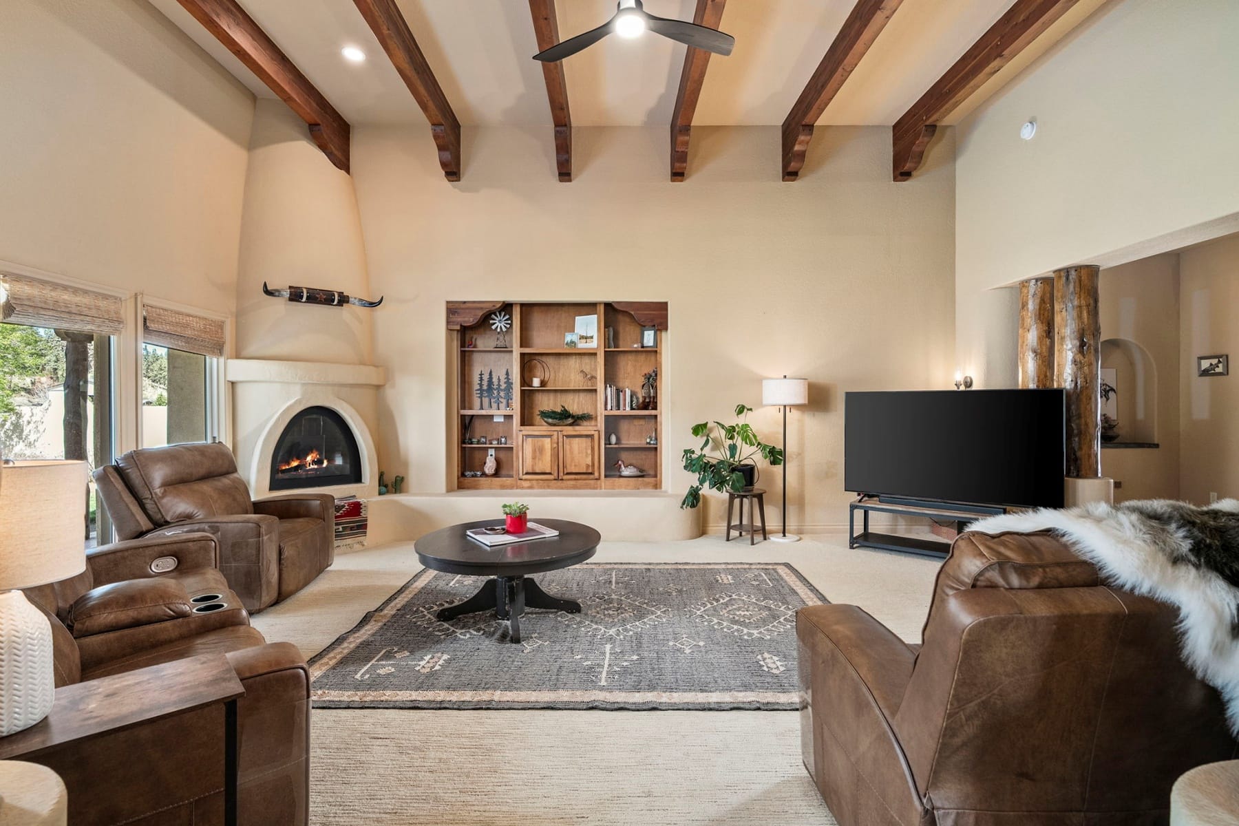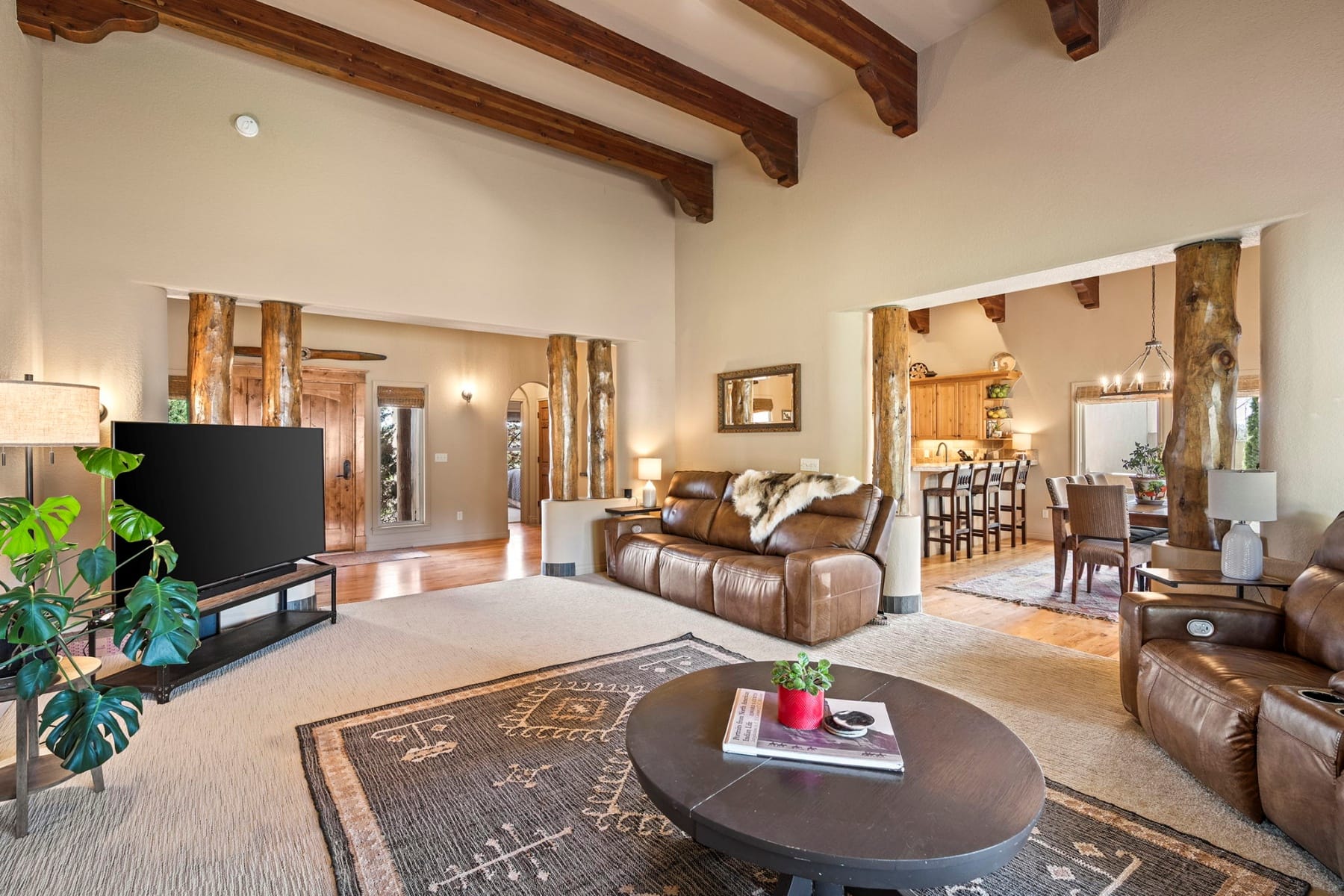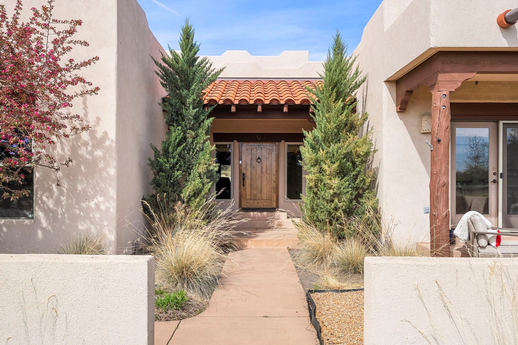 Stunning single-level Southwestern-style home in Harris Estates, ideally positioned adjacent to Smith Rock State Park, w/ breathtaking views of Smith Rock & the Cascade Mountains. This one-of-a-kind property features a private 732 SF attached casita w/ proven Airbnb income, offering excellent flexibility for guests or investment potential. The whole home showcases soaring ceilings, exposed wood beam detail, solid wood doors & trim, travertine floors & counters, wood floors & generous storage. Thoughtful floor plan provides excellent bdrm separation (all en-suites) & comfortable living spaces. Enjoy multiple covered & enclosed patios designed to take full advantage of the incredible Central Oregon scenery. Situated on 5.18 acres w/ over 4 acres of irrigation, fenced & ideal for horses, livestock, or hobby farming, w/ detached shop/barn. Recent updates incl new roof, stucco, & fencing. Rare opportunity to own a truly special property in an unbeatable location near world-class recreation.