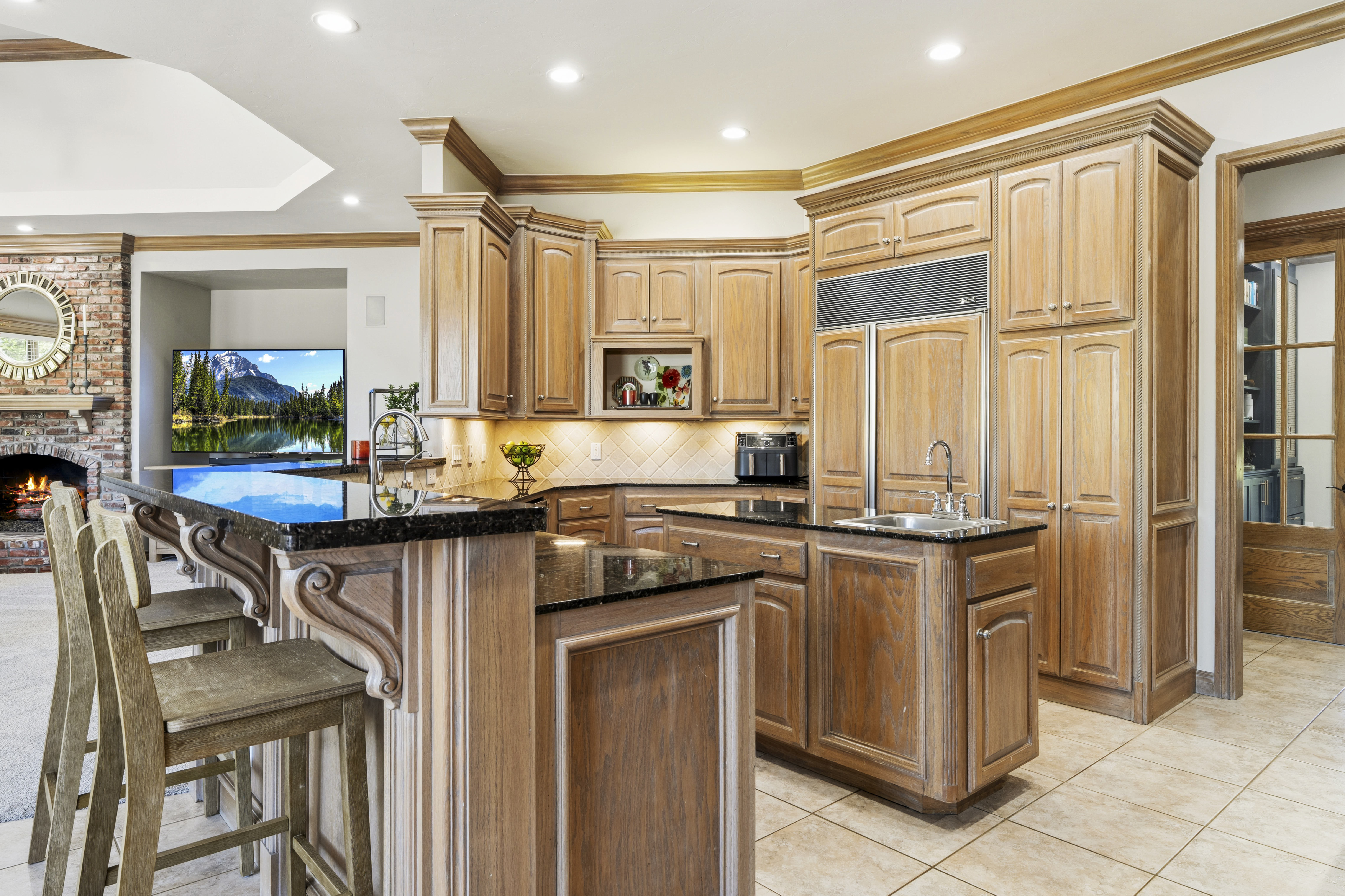 Welcome to 18632 Wolf Creek, a timeless design paired with modern livability in this truly exceptional residence. Positioned on a prominent corner lot spanning over half an acre within the highly sought-after, security gated community of Mulholland. The layout is designed for both daily living and effortless entertaining, with a spacious central family room that connects seamlessly to the kitchen and breakfast nook. The gourmet kitchen is thoughtfully appointed with updated appliances, double ovens, expansive counter space, sub zero refrigerator, and abundant storage equally suited for intimate meals or larger gatherings. A front room off the entry offers flexibility as a formal living or dining space, while a stunning dedicated study with built-in bookcases and storage provides a functional work or library setting. The recently reimagined primary suite serves as a private retreat, highlighted by a designer-crafted built-in with refined cabinetry and tailored storage. A downstairs guest suite with ensuite bath provides comfort and privacy for visitors, while three additional upstairs bedrooms include one with a private ensuite and two connected by a Jack-and-Jill bath. A spacious bonus room adds flexibility for recreation or relaxation. This home is equipped with a full suite of smart technology, including a whole-house generator, Starlink Wi-Fi, app-controlled exterior lighting and sprinkler system, Google Nest cameras, and MyQ garage access. Outdoors, mature trees line the back of the property, creating a private and serene setting. The pool provides a strong foundation for a future outdoor retreat, with both the pool and landscaping supported by well water offering efficiency without compromise. Additional features include a 375 sq ft (MOL) heated and cooled storage space, accessible from the fifth bedroom or via a walk-up staircase from the garage suited for storage, hobbies, or workspace. This is truly one you won’t want to miss, schedule your showing today!