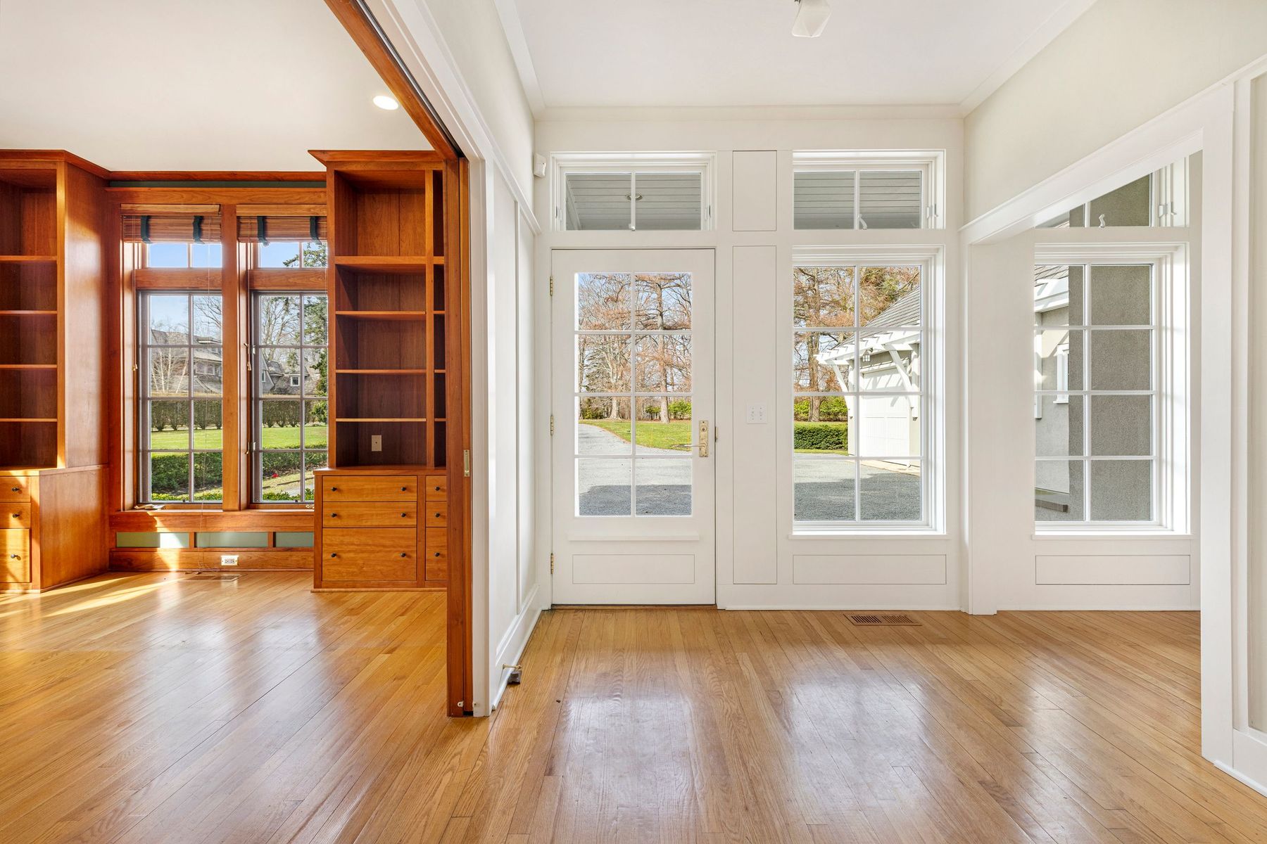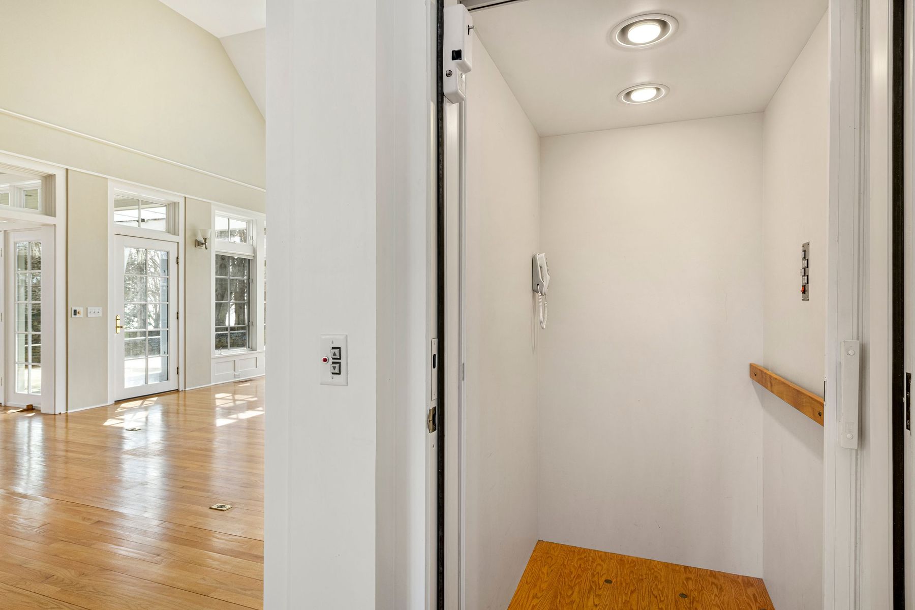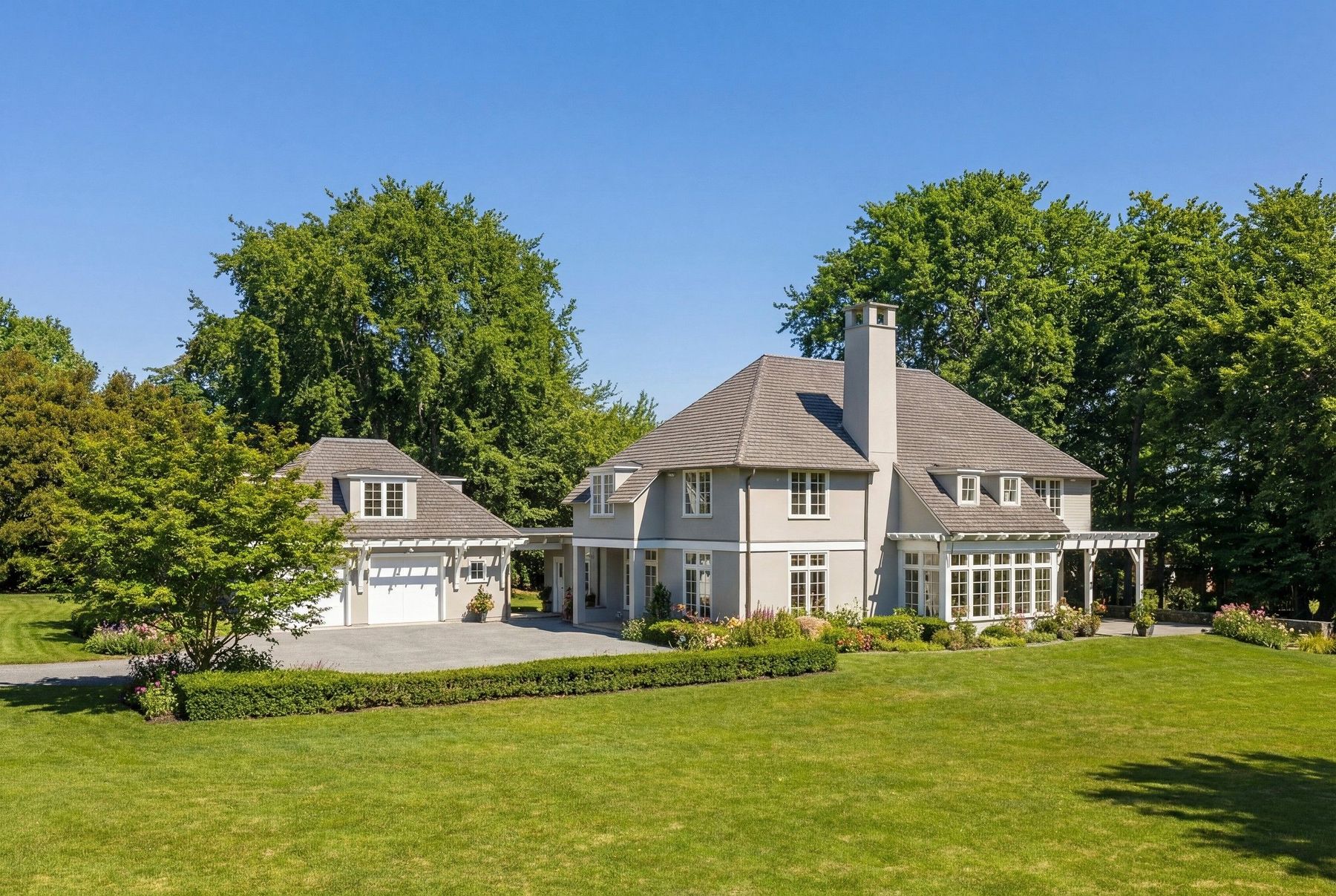 Designed by renowned architect James Estes, this wonderful residence is steps from the Historic Cliff Walk, in one of the only gated neighborhoods in Newport "Ocean Lawn". The lovely stucco house is set back from the private lane on over 2 1/2 acres of verdant grounds bordered by stone walls and an Allee of mature beech trees. The main floor has 9 foot ceilings with a cathedral ceiling and fireplace in the living room and a fireplace in the study/library. Walls of windows flood the house with light from morning until night. The kitchen overlooks an informal dining area with French doors opening to a stone patio. An elevator provides access to the second floor bedroom level. Two guest bedrooms share a bath. A balcony overlooking the main level living area leads to the Primary bedroom which has a spacious ensuite bath and walk-in closet. A two car detached garage has living a studio/living space above with a full bath and kitchenette, the total living square footage includes the studio space.. Amenities include central air and a whole house generator. The desirable location between the Cliff Walk and Bellevue Avenue is ideal for walking to town and and enjoy all that Newport has to offer.