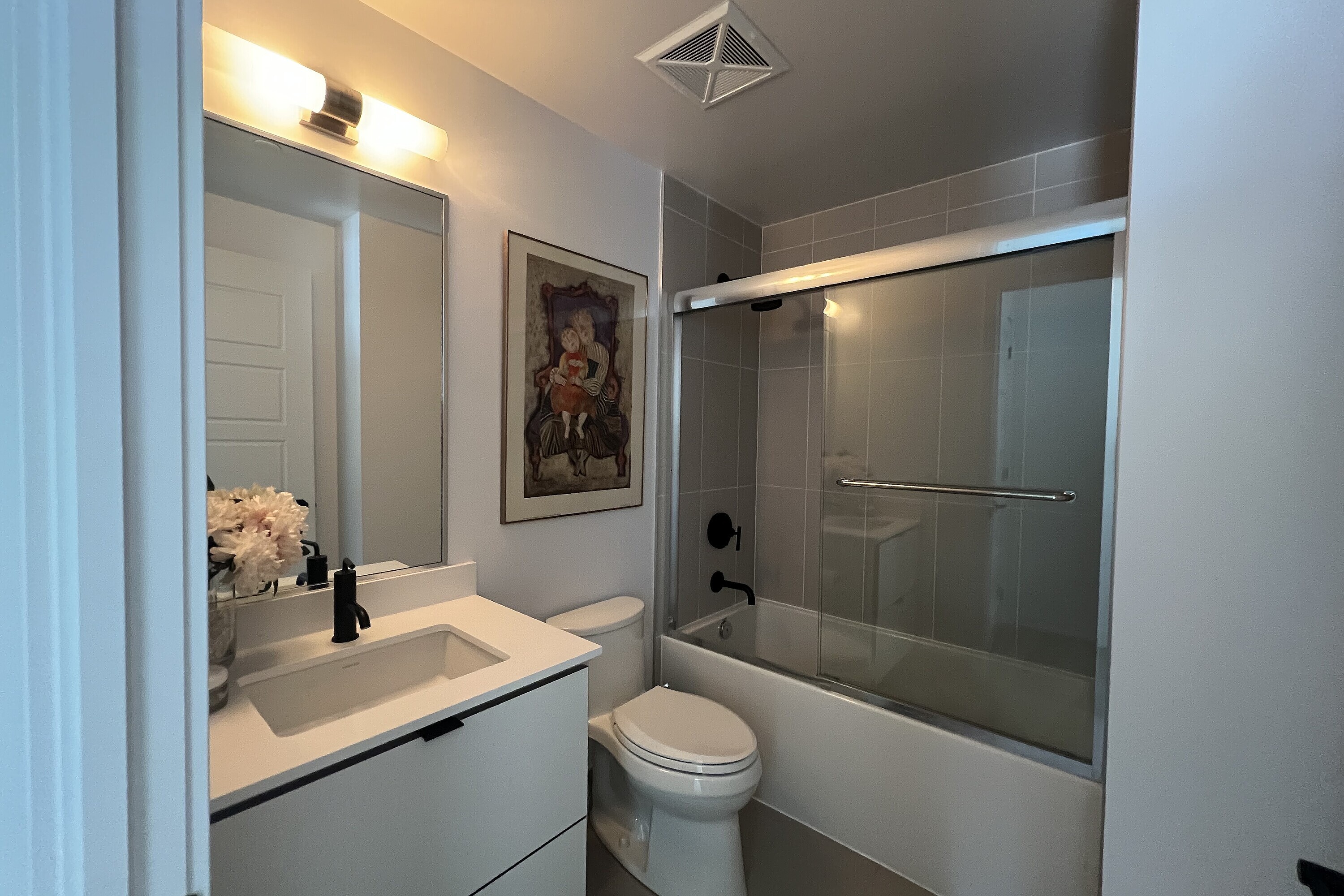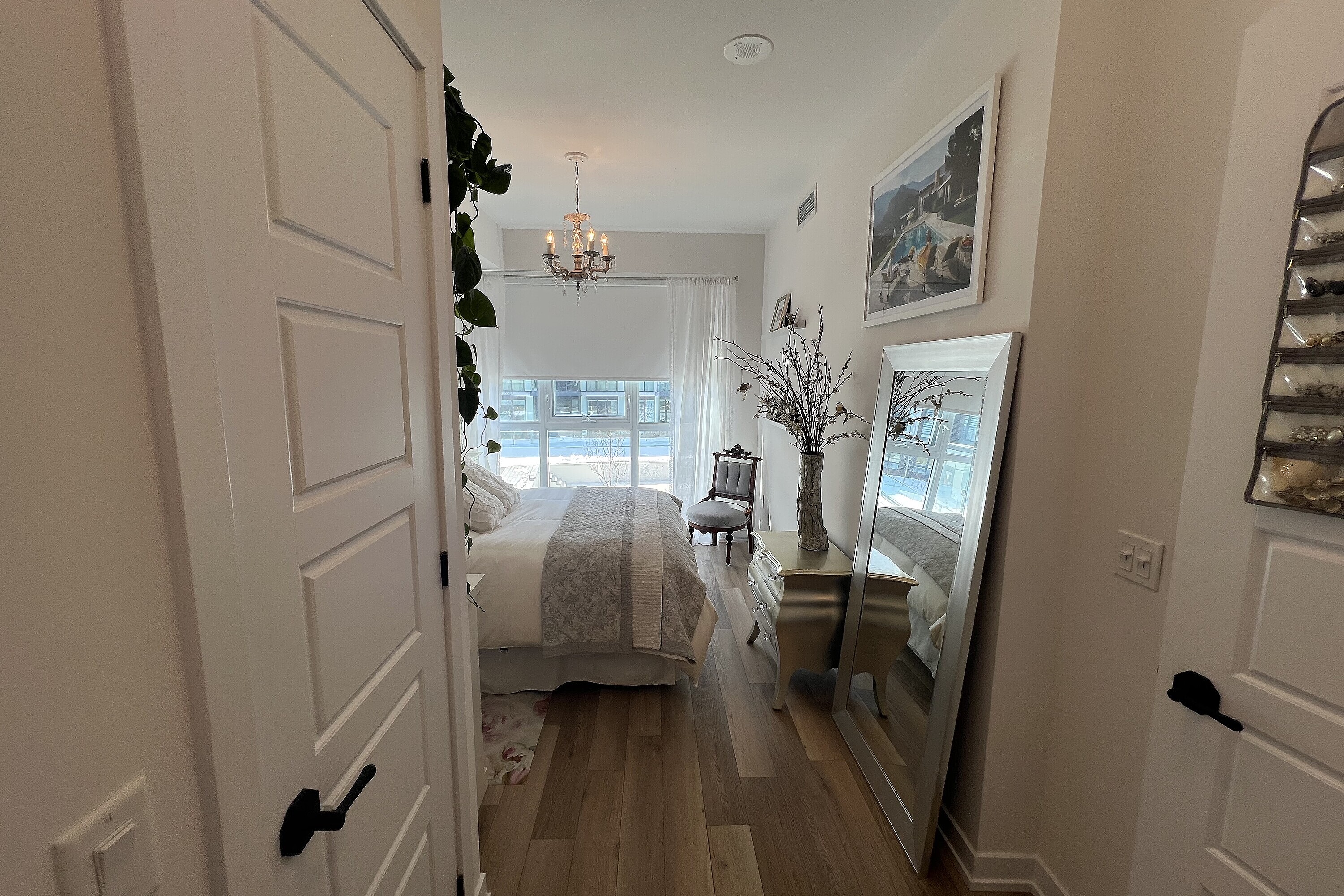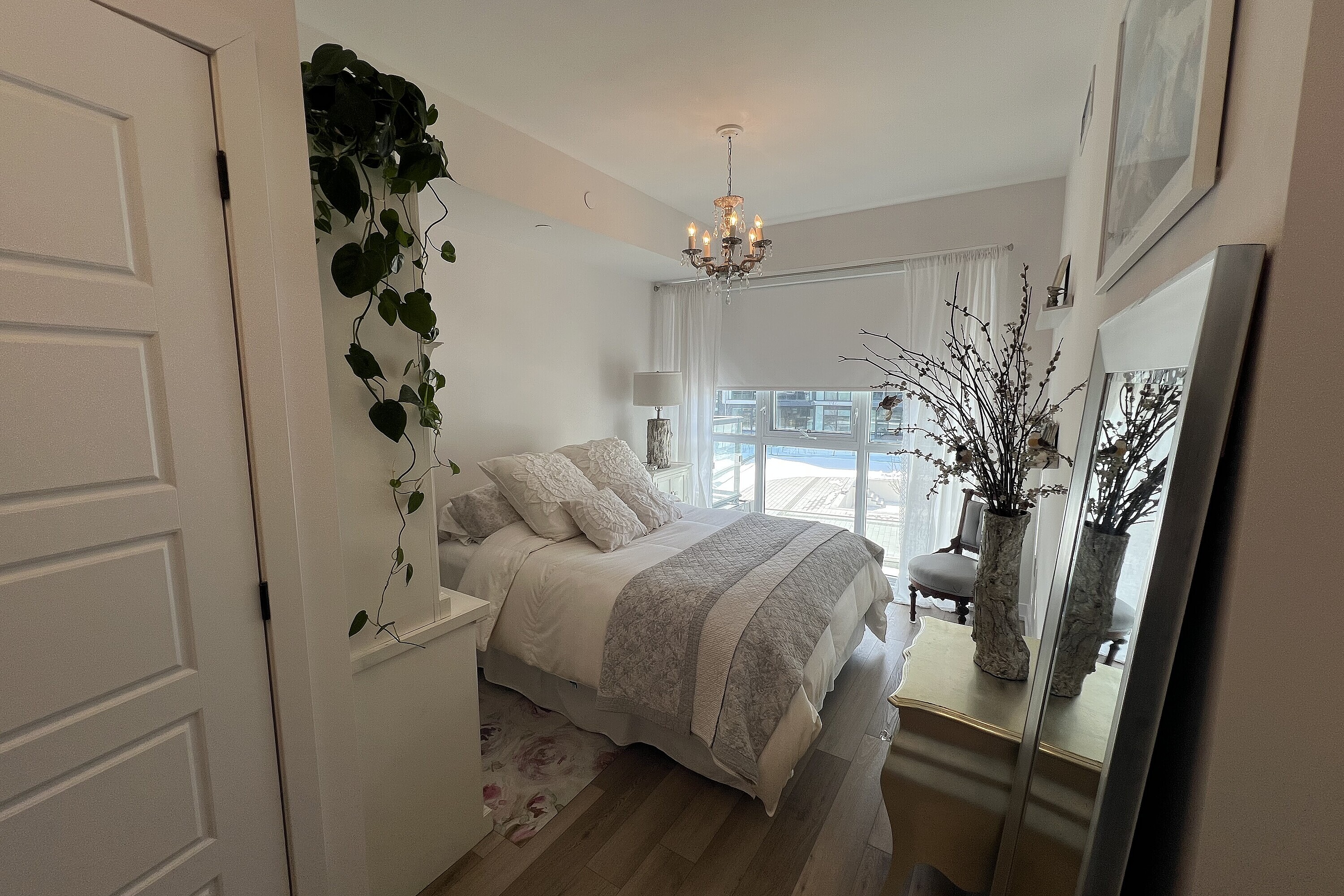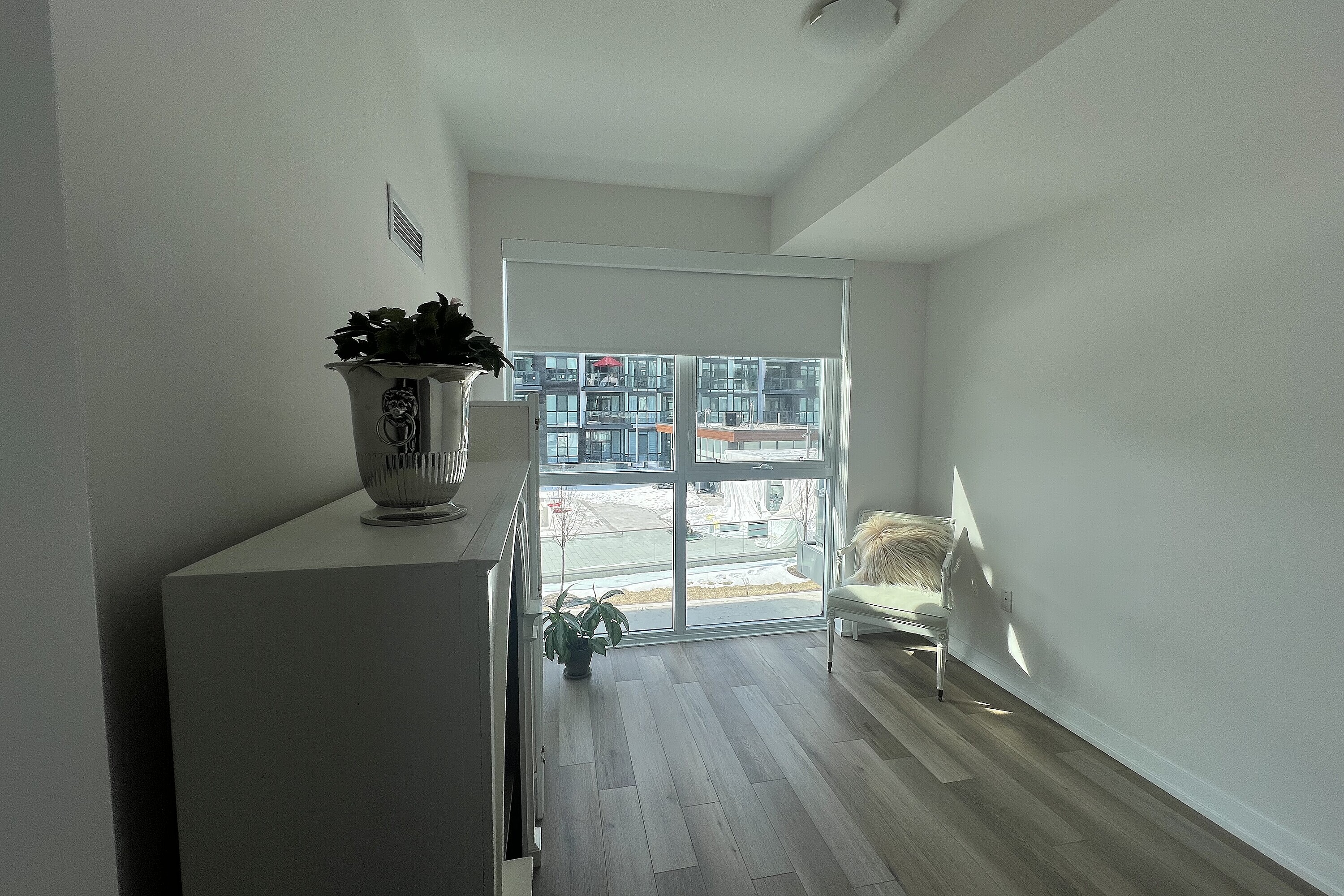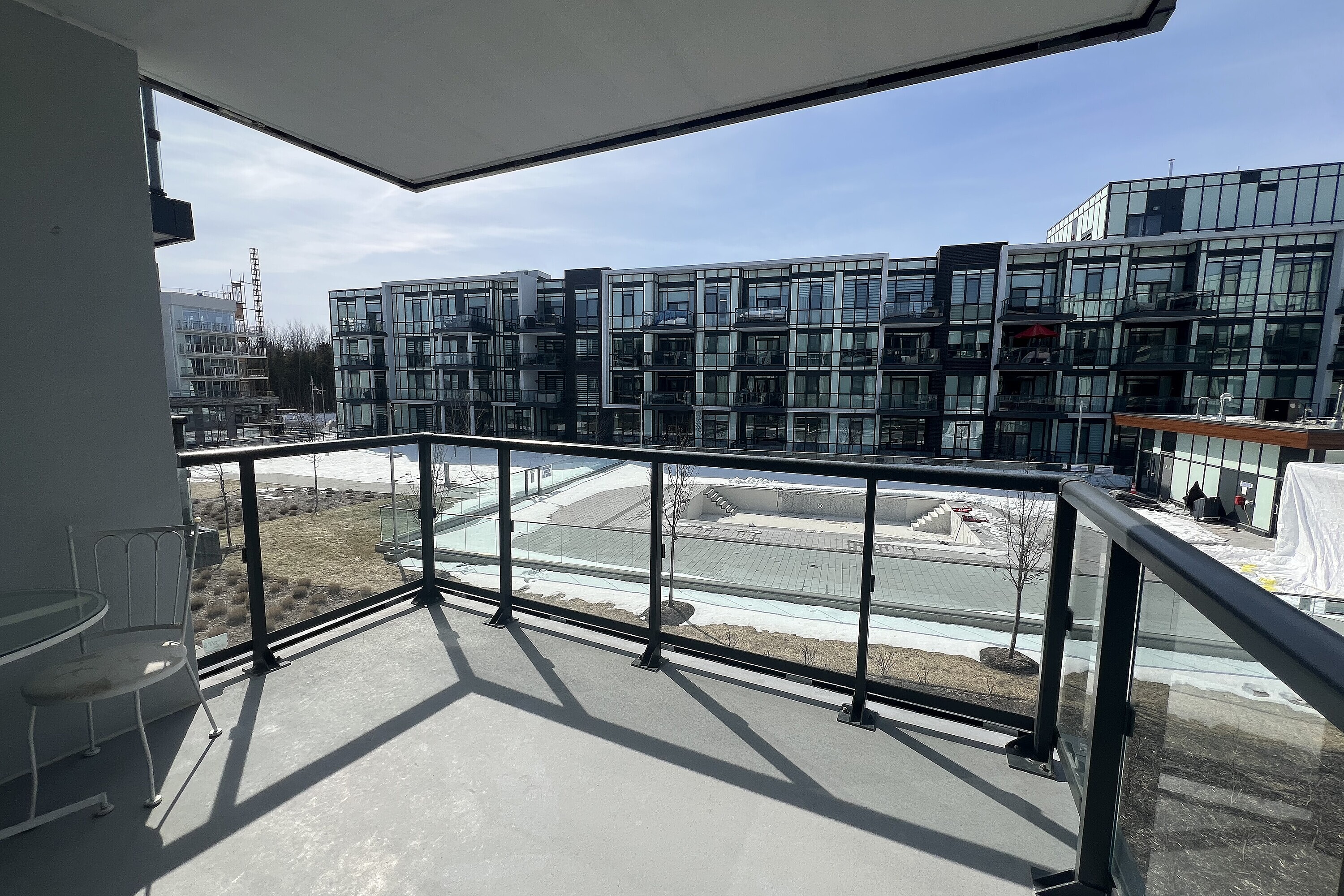 Friday Harbour: Two bedroom condo for rent in Innisfil! Two bedroom with two baths condo unit, furnished. The unit is approximately 800 square feet and features a very functional split layout. Bright and modern finishes throughout: warm engineered hardwood, floor-to-ceiling windows, lots of storage, window blinds and much more. Two full bathrooms. Ensuite laundry. Large open balcony overlooking interior courtyard and resort style amenities. Parking and locker are included. Friday Harbour facility fee of $350 annually, per occupant. One year lease min. Long term stay. Available starting first week of May 2026. Resort Amenities include access to Friday Harbour Lake Club: Fitness centre, private dining room, outdoor pool, hot tub, theatre room, outdoor patio, dining, games room. Tenant pays for Hydro/Electricity, Heat & AC, Thermal Water viaInn Power, Cable, Phone, Internet, Content & Liability Insurance