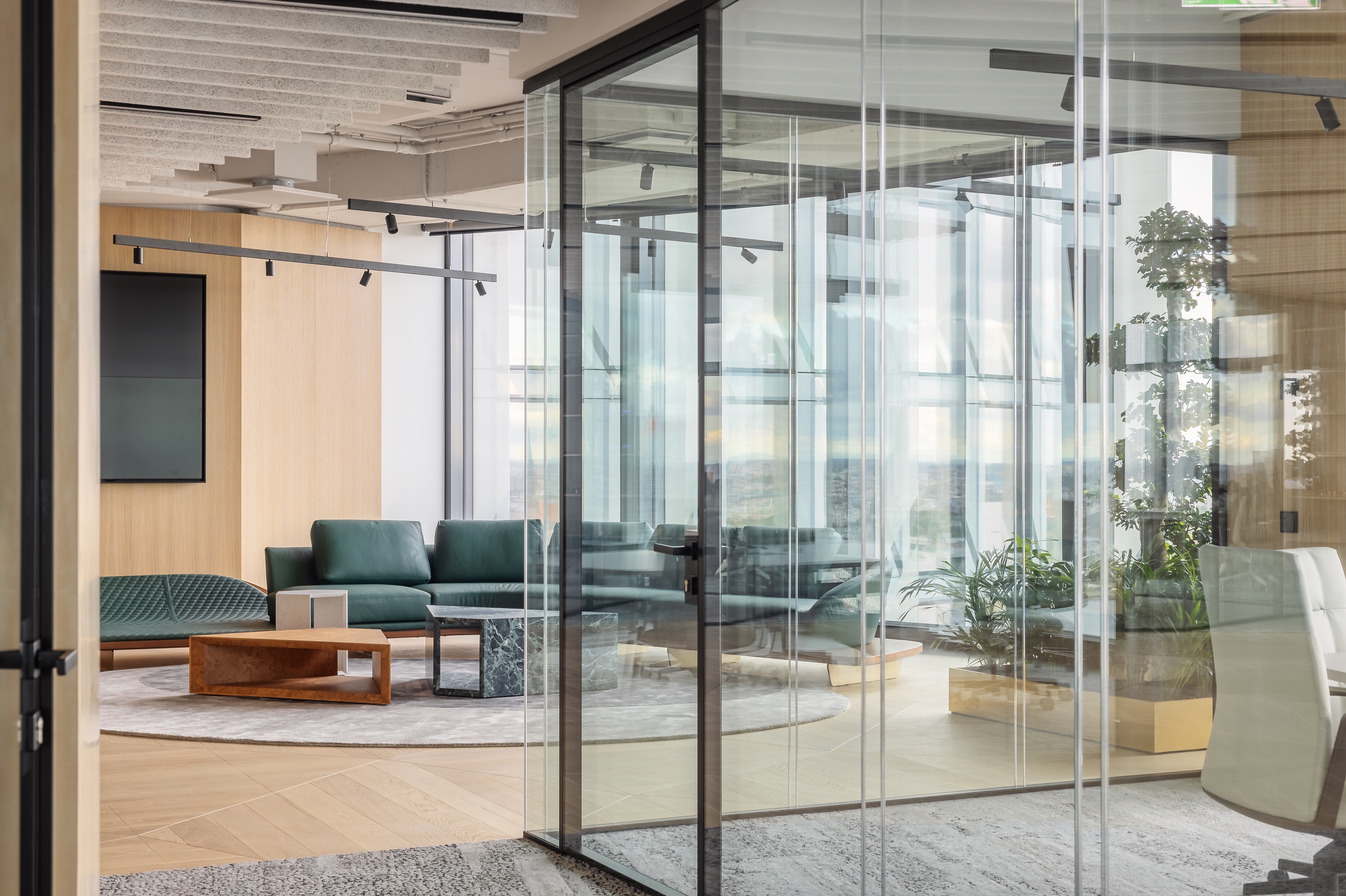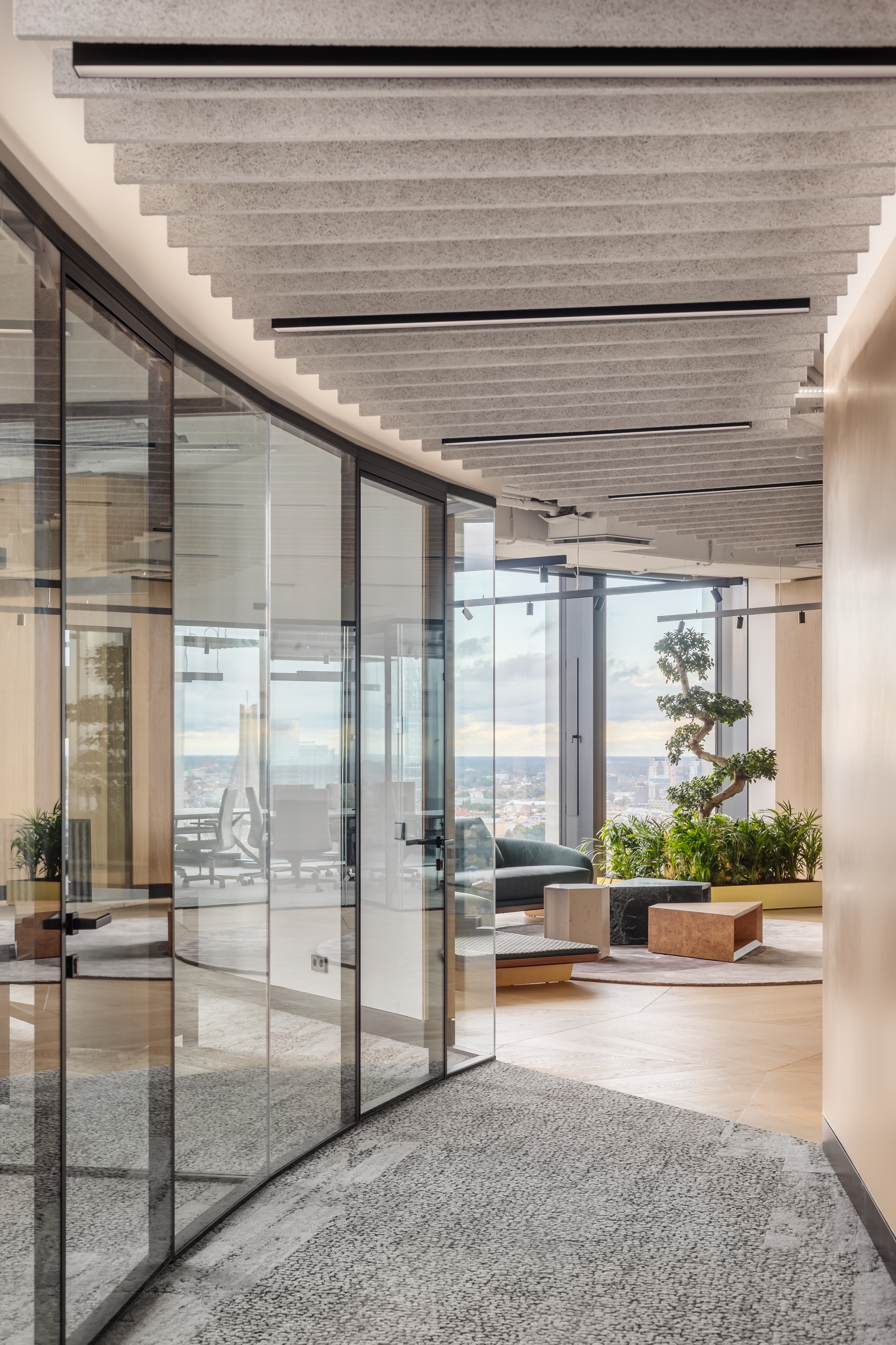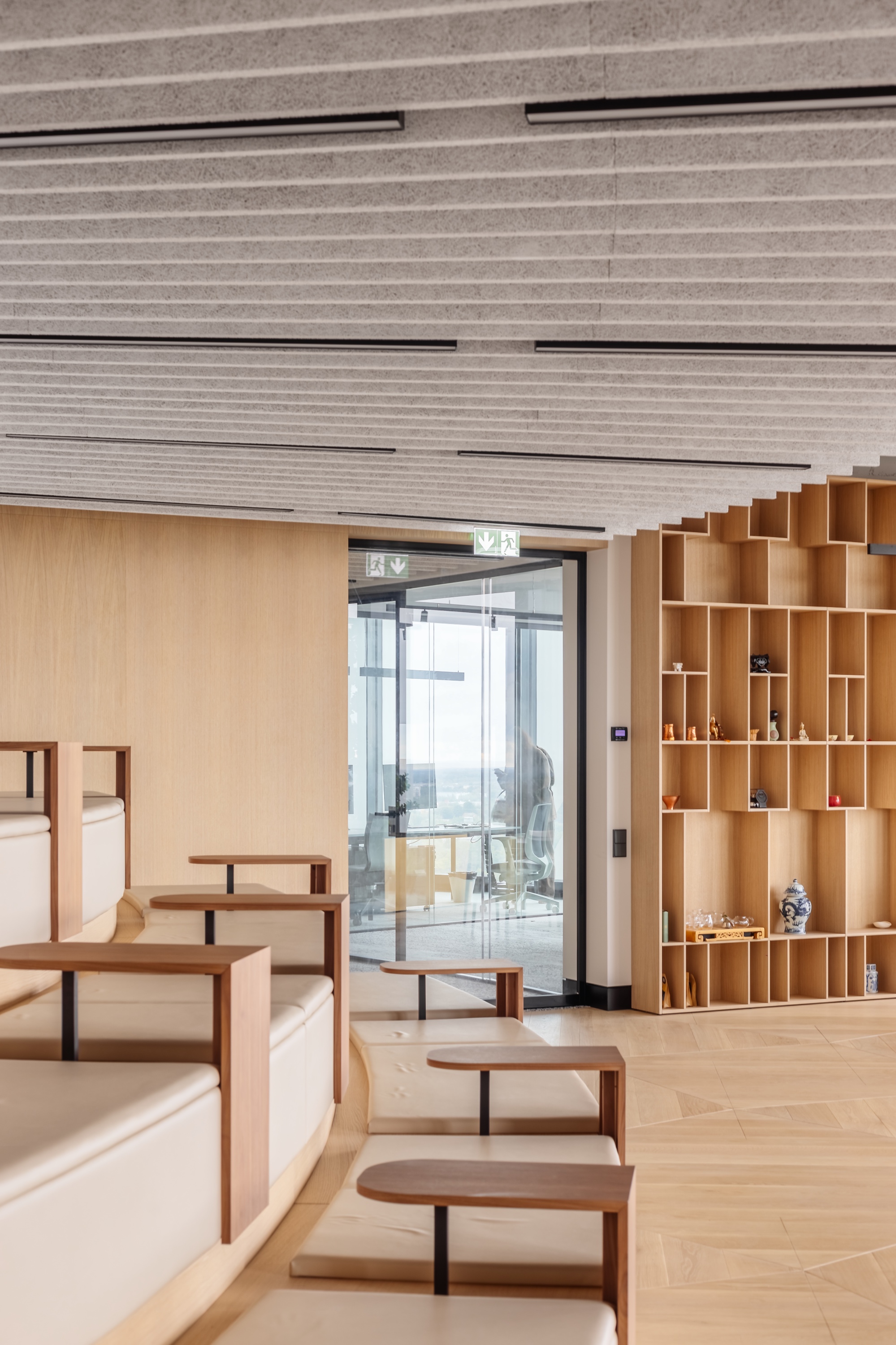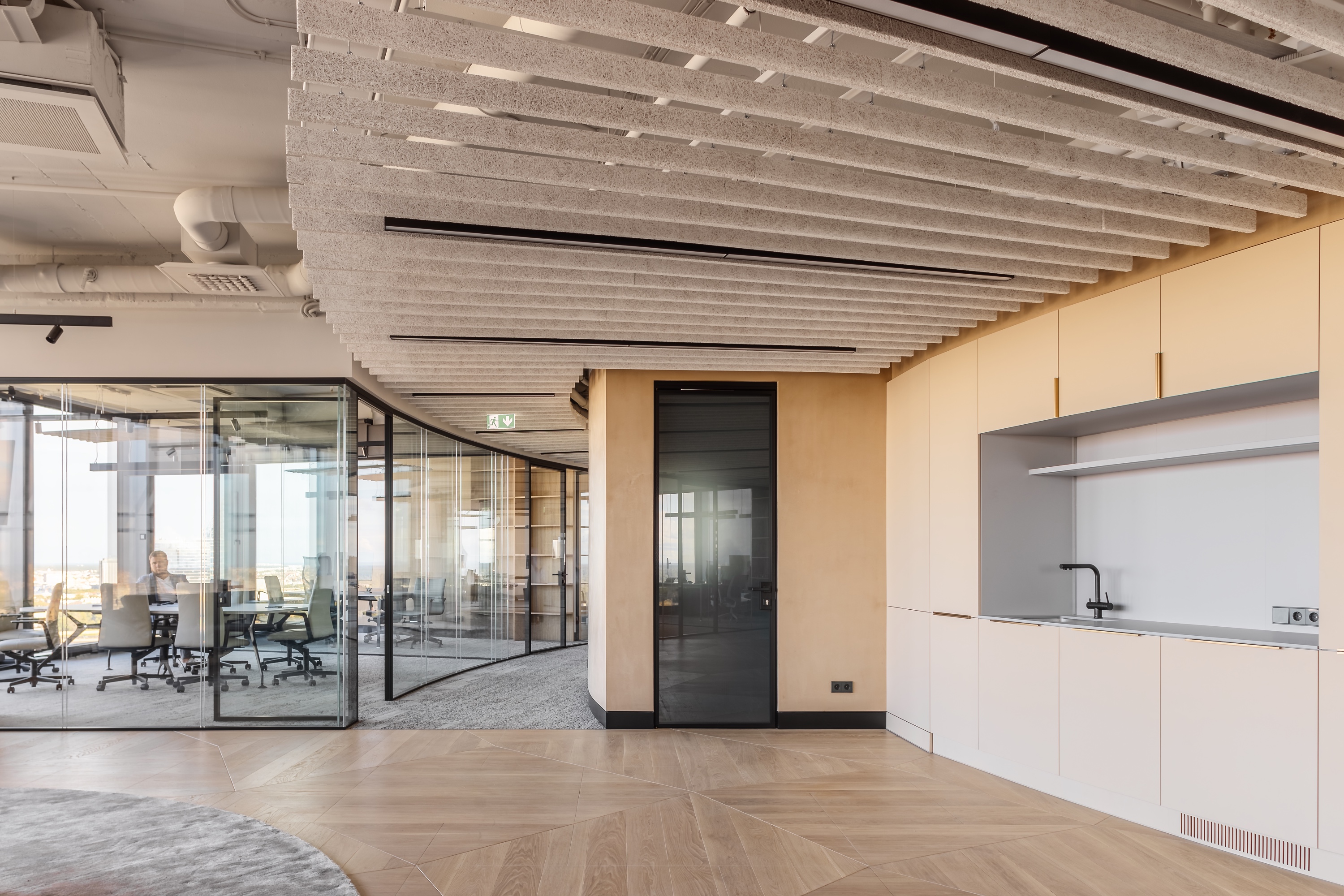 We offer fully fitted office premises for lease in the Zunda Towers project! One of the tallest building complexes in the Baltics and the first multifunctional development in Latvia, Zunda Towers comprises residential apartments, office spaces, a Podium leisure area, venues for social events and conferences, as well as a four-level underground parking facility. The complex was designed by renowned architect Andis Sīlis. Zunda Towers is located in Riga, on the left bank of the Daugava River — where the dynamic energy of a 21st-century metropolis meets the history and traditions of an 800-year-old European capital. The office space, with a total area of 796.7 sqm, is situated on the 20th floor and occupies the entire level, ensuring maximum privacy, a prestigious working environment, and impressive panoramic views over the Daugava River, Old Town, Āgenskalns, and the city center. The premises are fully equipped and ready for immediate occupancy. The interior features high-quality furniture and design elements from brands such as Herman Miller, Andreu World, Walter Knoll, Pininfarina for Reflex, and de Sede, along with bespoke-made furniture, ensuring both comfort and refined aesthetics. The office layout is thoughtfully designed, offering a variety of workspaces — from quiet private offices to open collaboration and lounge areas, as well as a custom-built amphitheatre for presentations and team events. Excellent sound insulation is ensured throughout, while floor-to-ceiling windows provide a sense of openness and abundant natural light. Tenants benefit from all advantages of the Zunda Towers complex, including a prestigious environment, modern infrastructure, 24/7 security, on-site restaurants, and underground parking with electric vehicle charging stations. The office is suitable for a wide range of businesses, including IT, finance, creative industries, and international companies that value quality, comfort, and a representative setting. Design team: Zane Tetere-Sulce, Kristaps Sulcs, Linda Balode, Girts Kula, Olga Ponomarjova, Maria Gembitskaya Photos: Alvis Rozenbergs