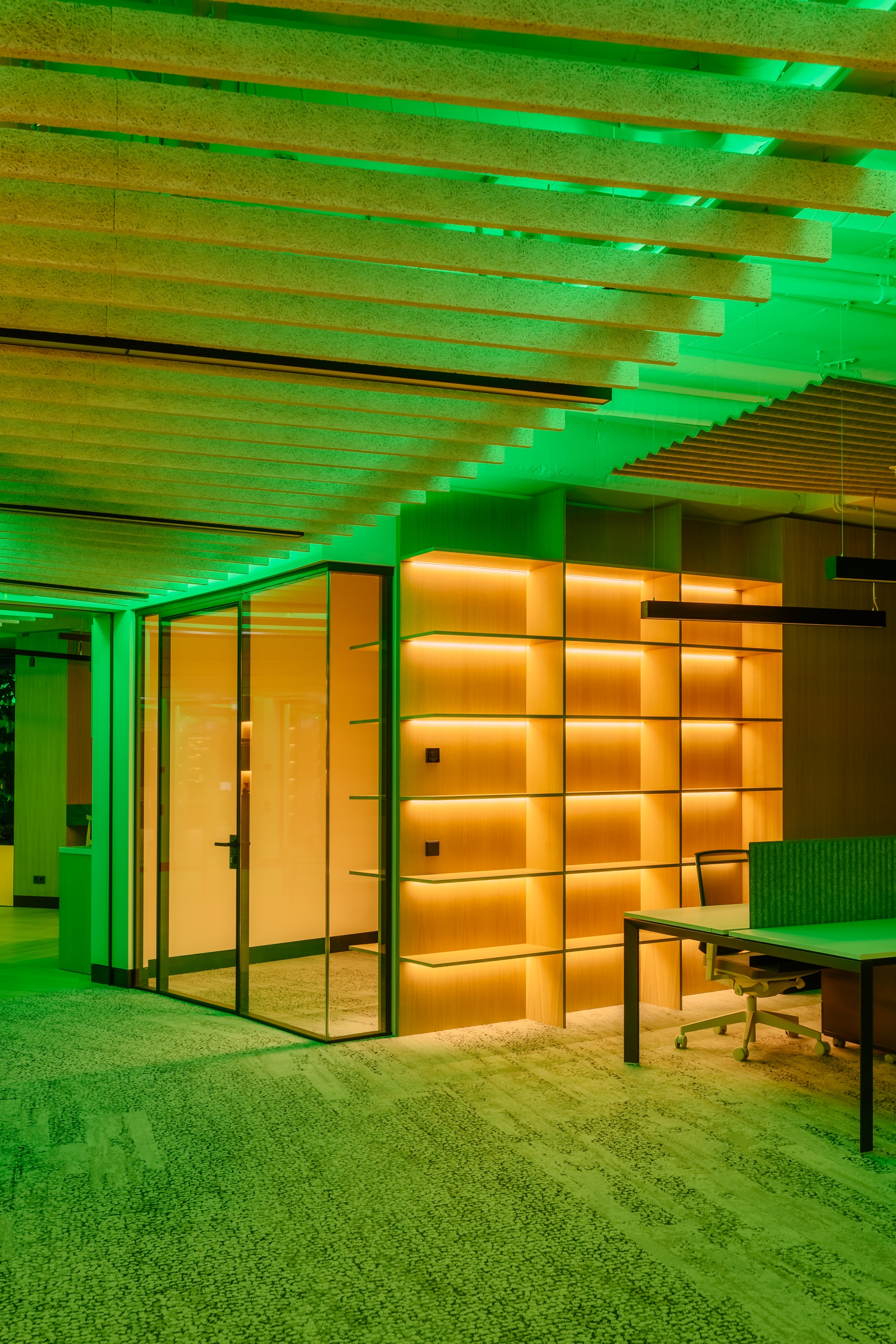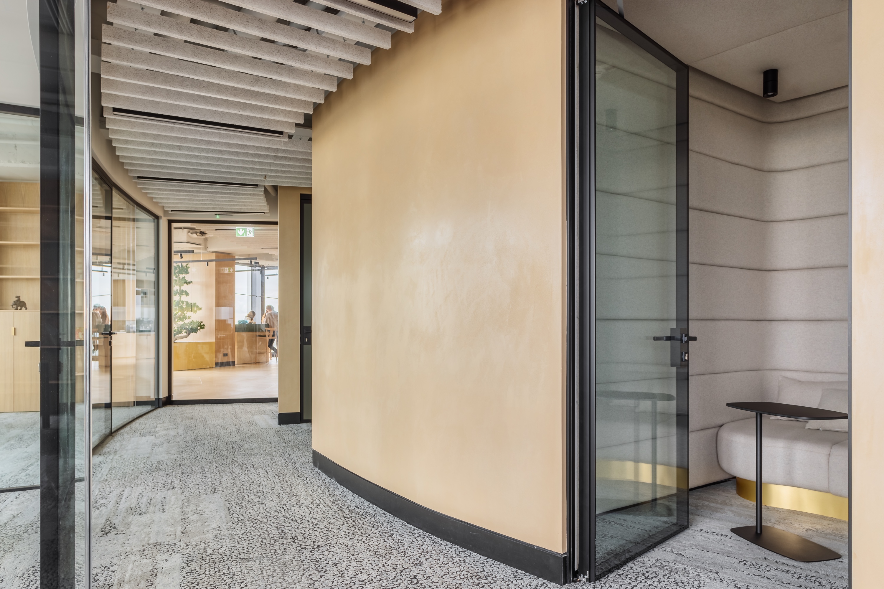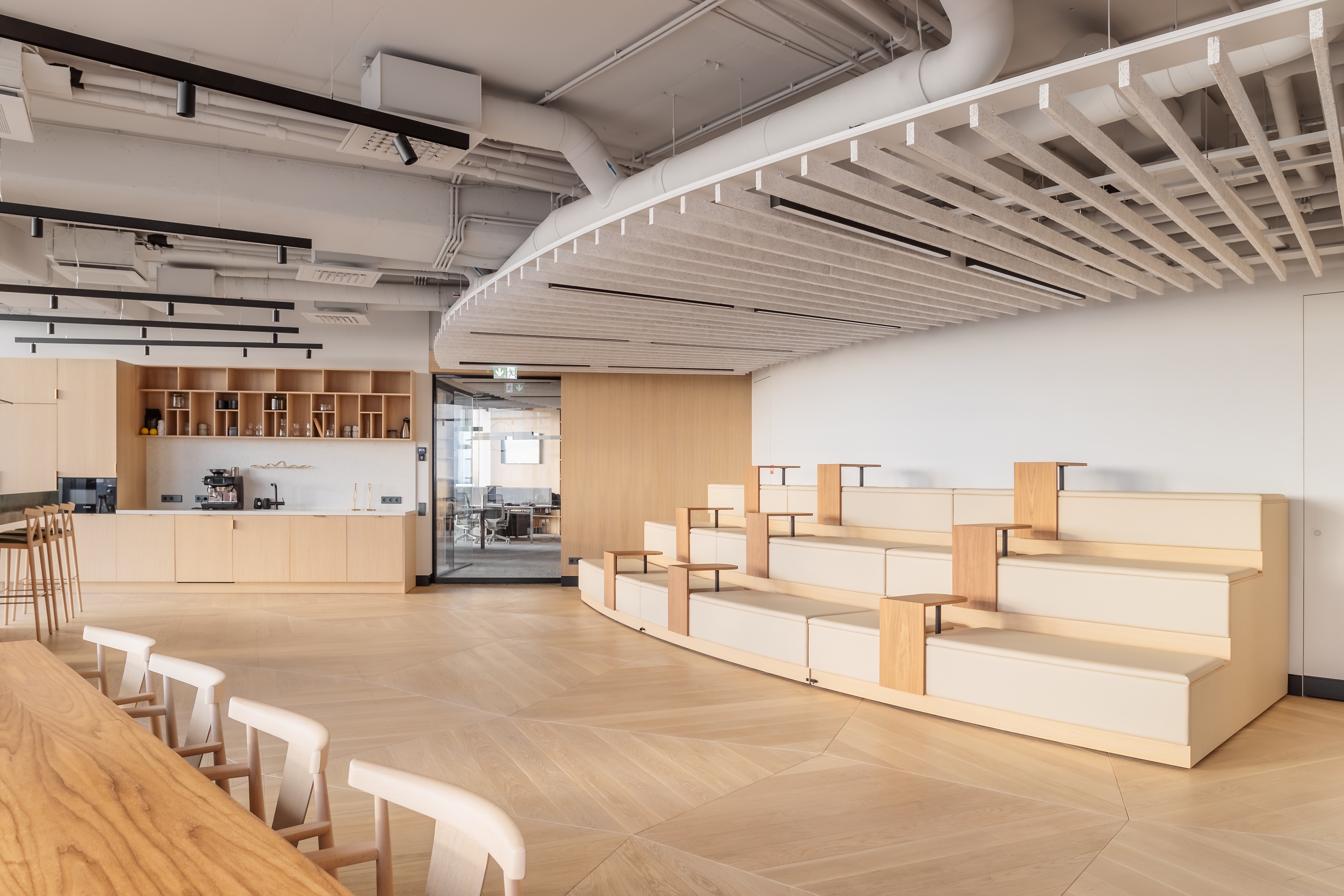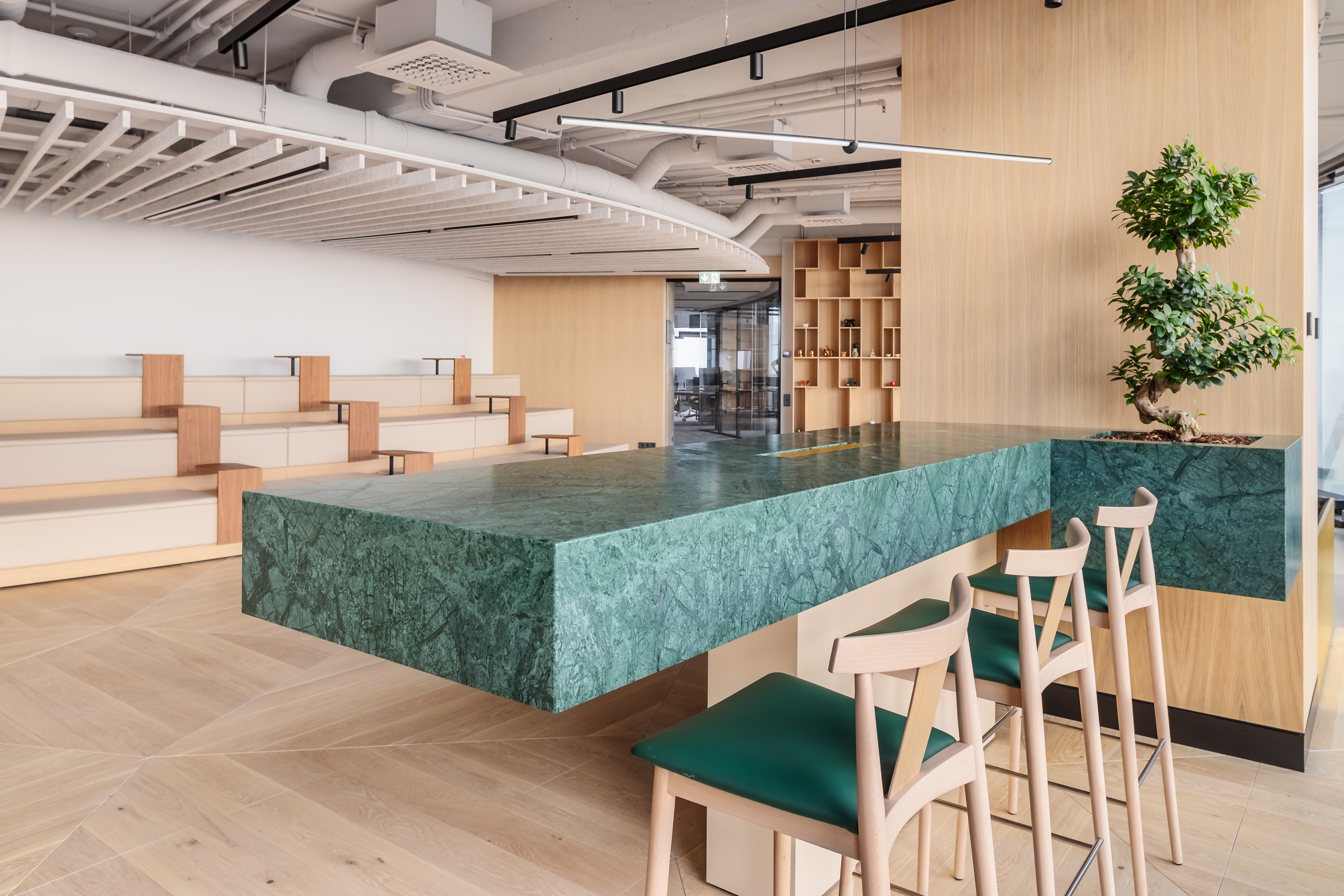 We offer fully fitted office premises for lease in the Zunda Towers project! One of the tallest building complexes in the Baltics and the first multifunctional development in Latvia, Zunda Towers comprises residential apartments, office spaces, a Podium leisure area, venues for social events and conferences, as well as a four-level underground parking facility. The complex was designed by renowned architect Andis Sīlis. Zunda Towers is located in Riga, on the left bank of the Daugava River — where the dynamic energy of a 21st-century metropolis meets the history and traditions of an 800-year-old European capital. The office space, with a total area of 796.7 sqm, is situated on the 20th floor and occupies the entire level, ensuring maximum privacy, a prestigious working environment, and impressive panoramic views over the Daugava River, Old Town, Āgenskalns, and the city center. The premises are fully equipped and ready for immediate occupancy. The interior features high-quality furniture and design elements from brands such as Herman Miller, Andreu World, Walter Knoll, Pininfarina for Reflex, and de Sede, along with bespoke-made furniture, ensuring both comfort and refined aesthetics. The office layout is thoughtfully designed, offering a variety of workspaces — from quiet private offices to open collaboration and lounge areas, as well as a custom-built amphitheatre for presentations and team events. Excellent sound insulation is ensured throughout, while floor-to-ceiling windows provide a sense of openness and abundant natural light. Tenants benefit from all advantages of the Zunda Towers complex, including a prestigious environment, modern infrastructure, 24/7 security, on-site restaurants, and underground parking with electric vehicle charging stations. The office is suitable for a wide range of businesses, including IT, finance, creative industries, and international companies that value quality, comfort, and a representative setting. Design team: Zane Tetere-Sulce, Kristaps Sulcs, Linda Balode, Girts Kula, Olga Ponomarjova, Maria Gembitskaya Photos: Alvis Rozenbergs