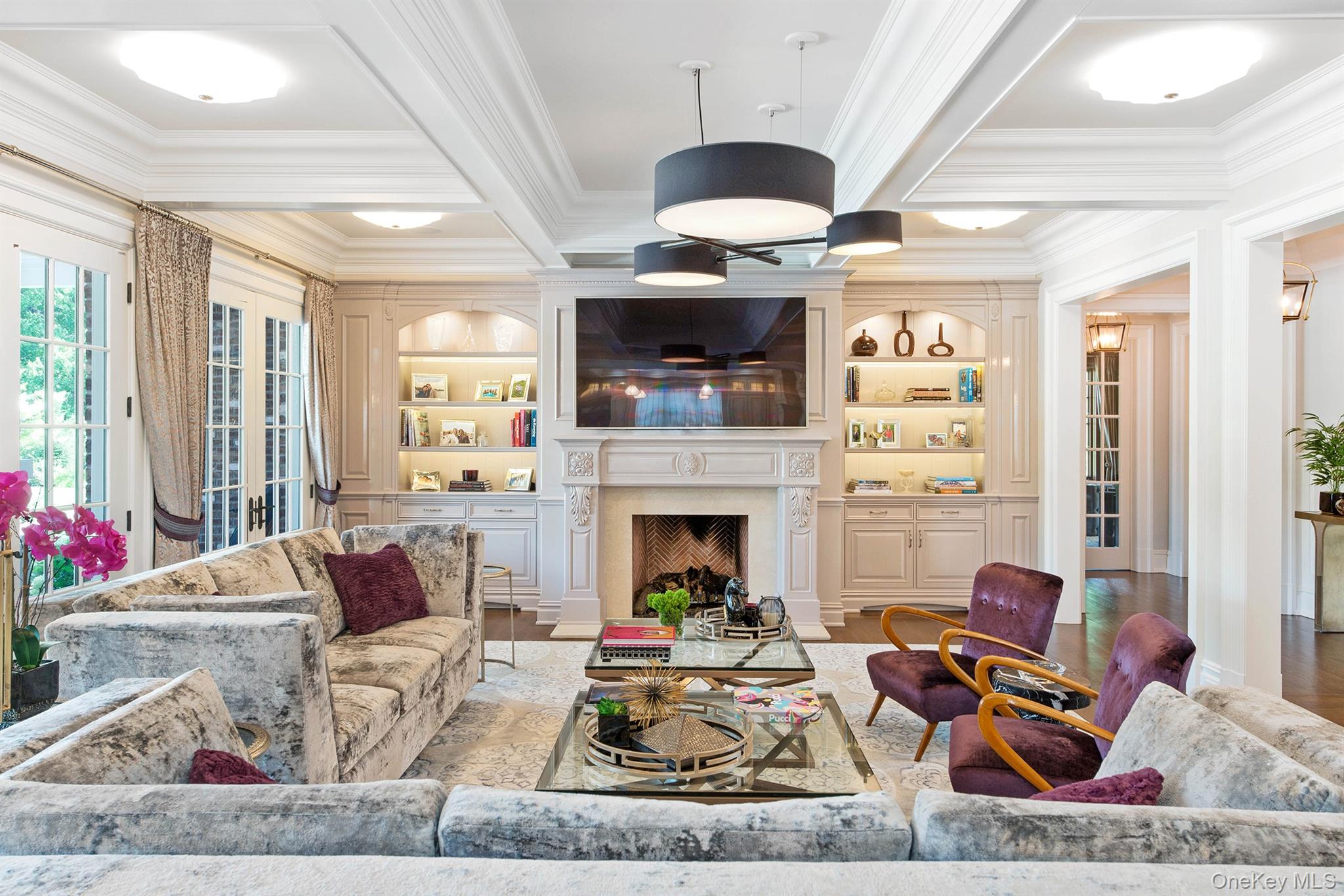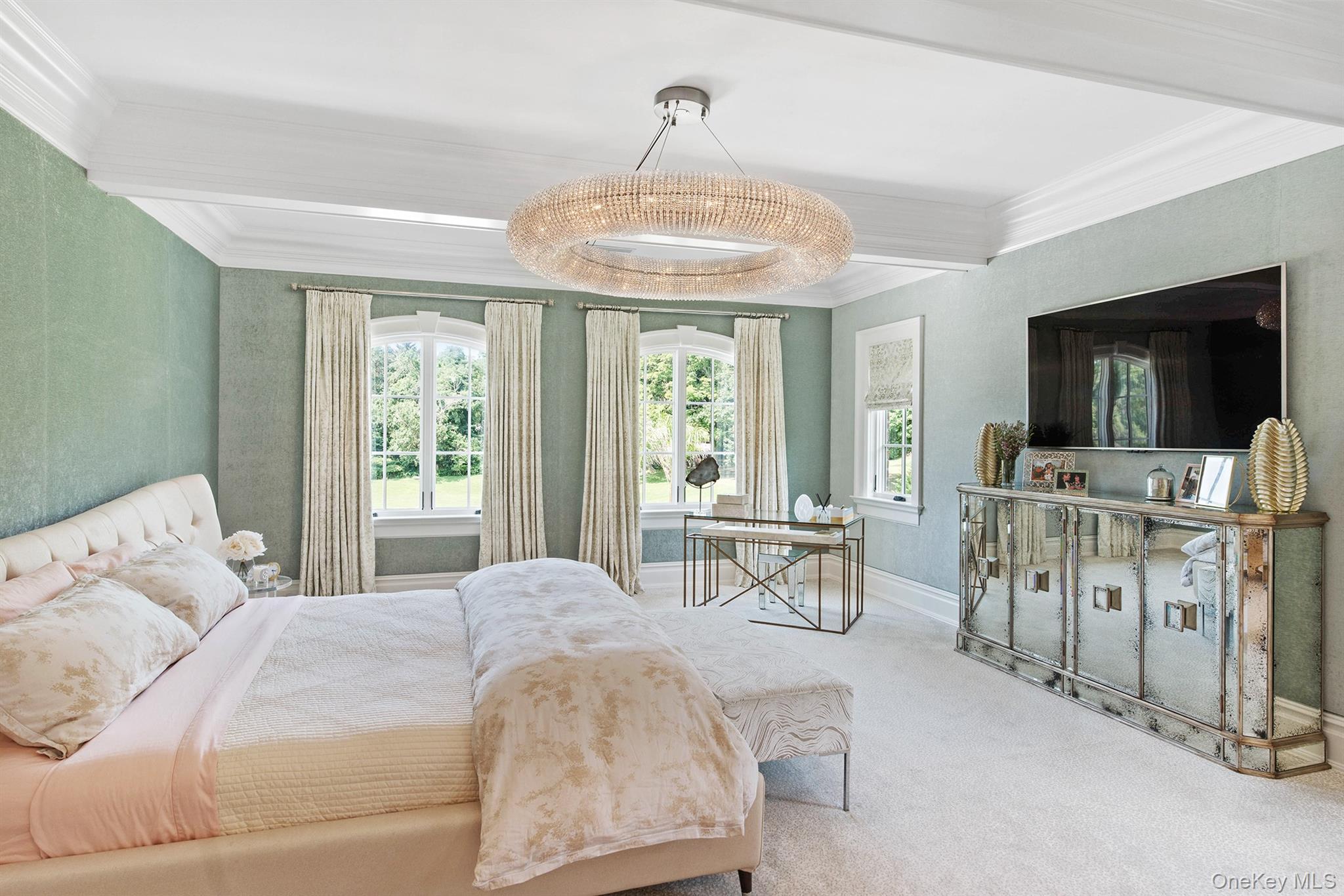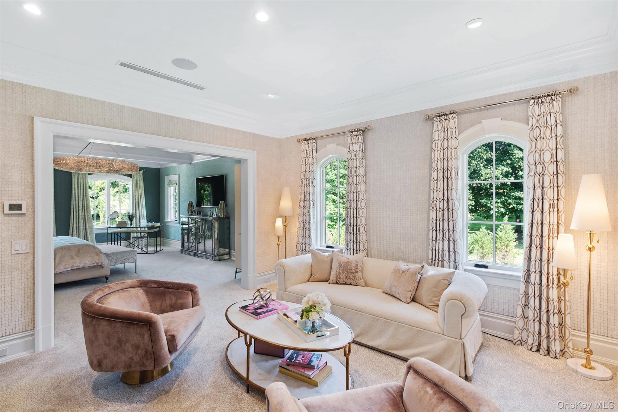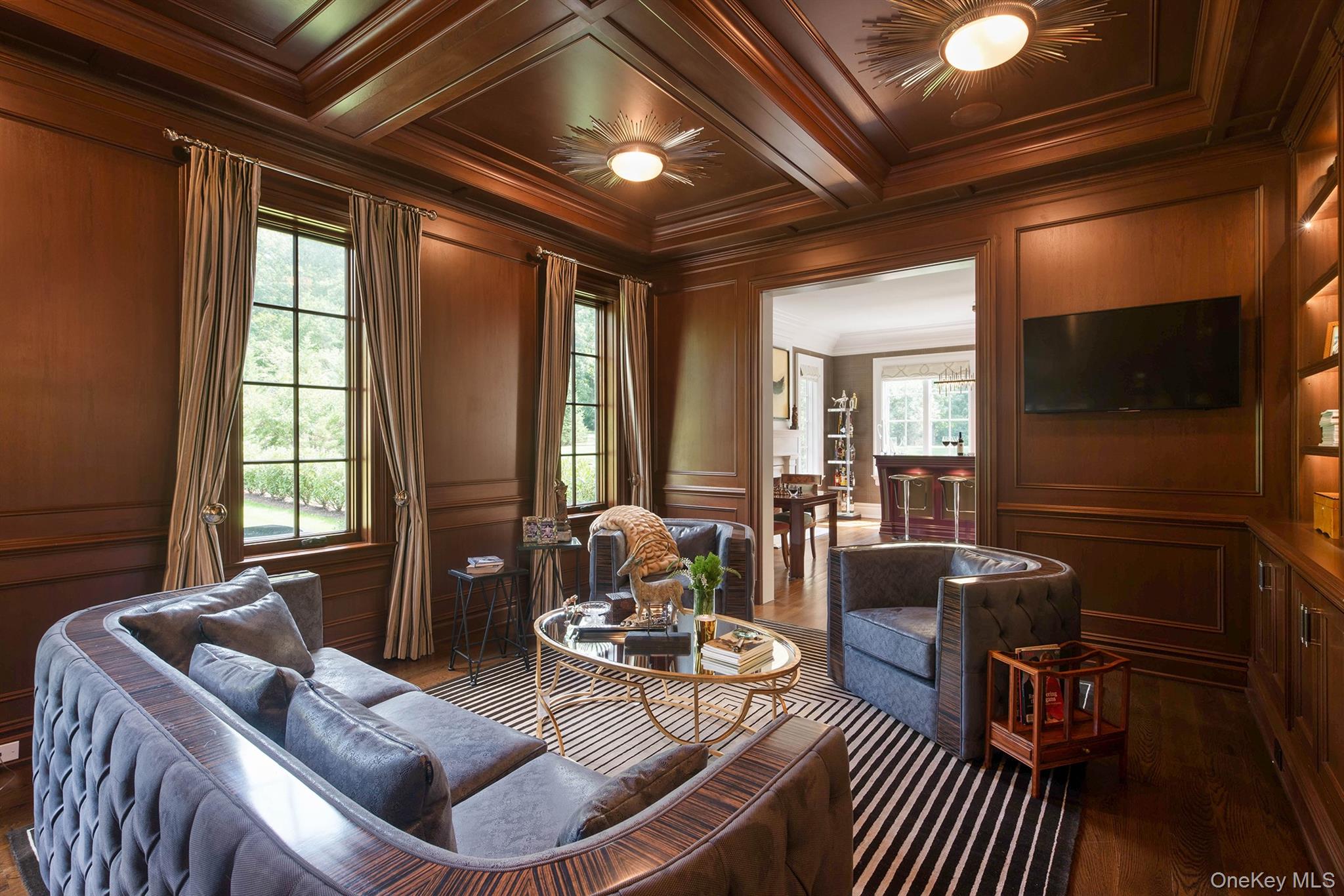 Welcome to this exceptional 7-bedroom center hall Colonial estate, masterfully designed by Harrison Design Architecture and set on 4 breathtaking, park-like acres. A grand arrival is marked by a sweeping circular driveway leading to a stately façade, setting the tone for the elegance found within.A dramatic double-height entry hall with sweeping architectural staircase and elegant proportions creates an unforgettable first impression and offers potential for a future elevator. Just off the entry, a chic bar provides a stylish and inviting place to gather with guests before dining. The home's thoughtfully designed layout blends classic sophistication with modern livability, highlighted by a fabulous open floor plan and an abundance of natural light throughout-truly the ultimate entertaining house.The formal dining room is both elegant and inviting, featuring a fireplace and seamless access to the chef's eat-in kitchen. Designed for both everyday living and entertaining, the kitchen is outfitted with top-of-the-line appliances, custom cabinetry, and premium finishes, and flows effortlessly into a warm and inviting den with a fireplace. A gracious formal living room, also with fireplace, provides an additional refined space for gathering. Custom, bespoke millwork is showcased throughout the home, elevating every room with timeless craftsmanship and detail. A first floor en-suite bedroom offers flexility for guests or extended familyThe luxurious primary suite is a true private retreat, complete with a spacious sitting room, and dual spa-inspired bathrooms, offering both comfort and indulgence. Additional bedrooms are generously proportioned, each thoughtfully designed.The home is flooded with natural light, enhanced by oversized windows and beautiful architectural lines, creating a bright and airy ambiance in every space.Recently added is a full finished basement offering billiard room, spacious family room, gym and a gorgeous sleek movie theatre. A lovely playroom and bedroom en-suite make this level ideal for recreation, guests, and extended stays.Outdoors, the property is nothing short of extraordinary. The spectacular pool and spa are surrounded by elegant Egyptian marble, complemented by expansive patios and beautifully manicured grounds. A fully equipped outdoor kitchen, covered patio with fireplace, and multiple entertaining areas create a true resort-like setting of total privacy and tranquility. A rare offering combining architectural pedigree, luxurious amenities, and an unparalleled setting-this is truly a distinguished estate for the most discerning buyer.
